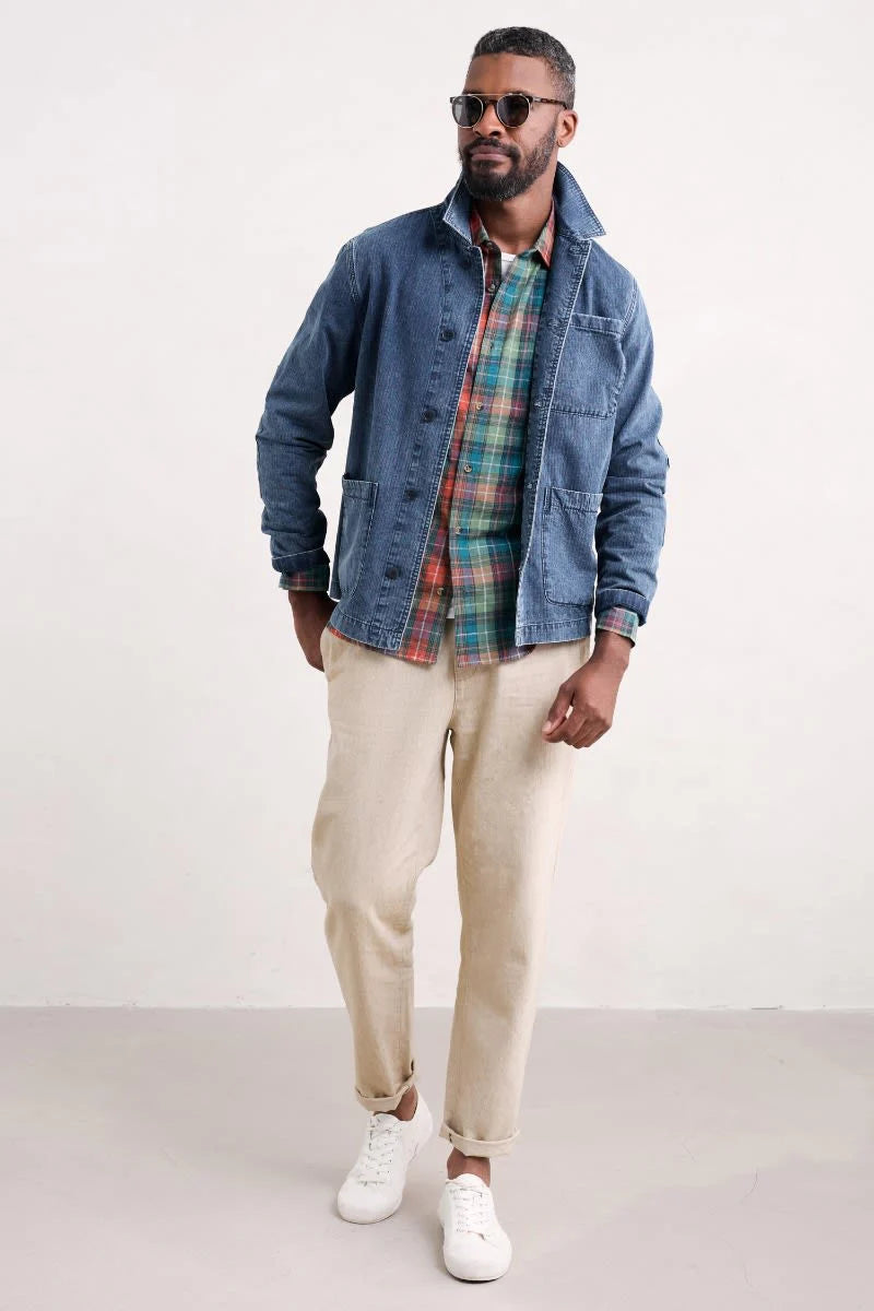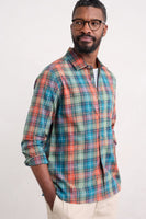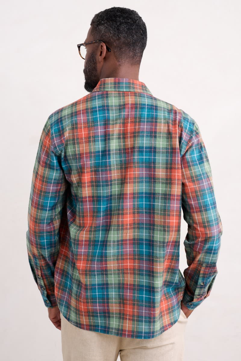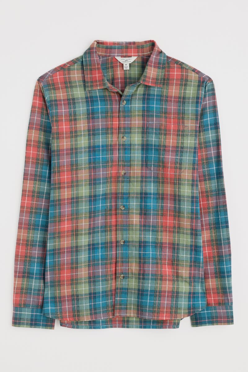 Easy button down shirt woven from breathable organic cotton, with a yarn-dyed check. Splits at the sides complement the easy fit, perfect for wearing untucked over jeans, over a T-shirt or under a jacket. Cuffs are fastened by buttons, and can be rolled up for a more casual look.