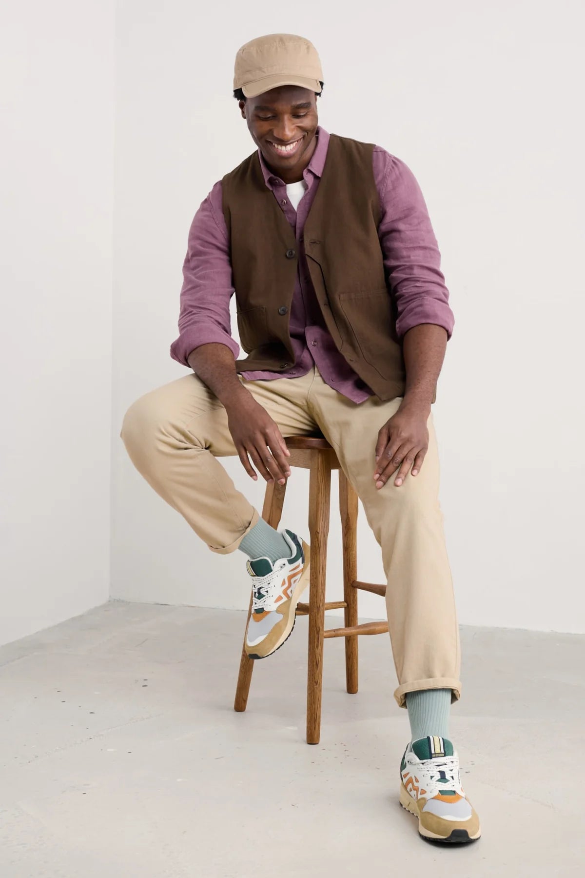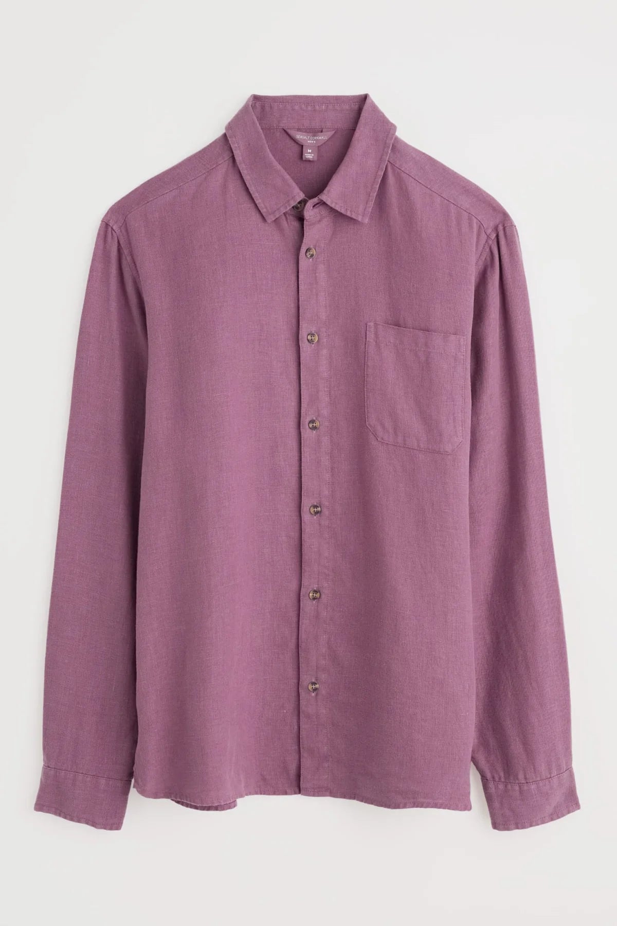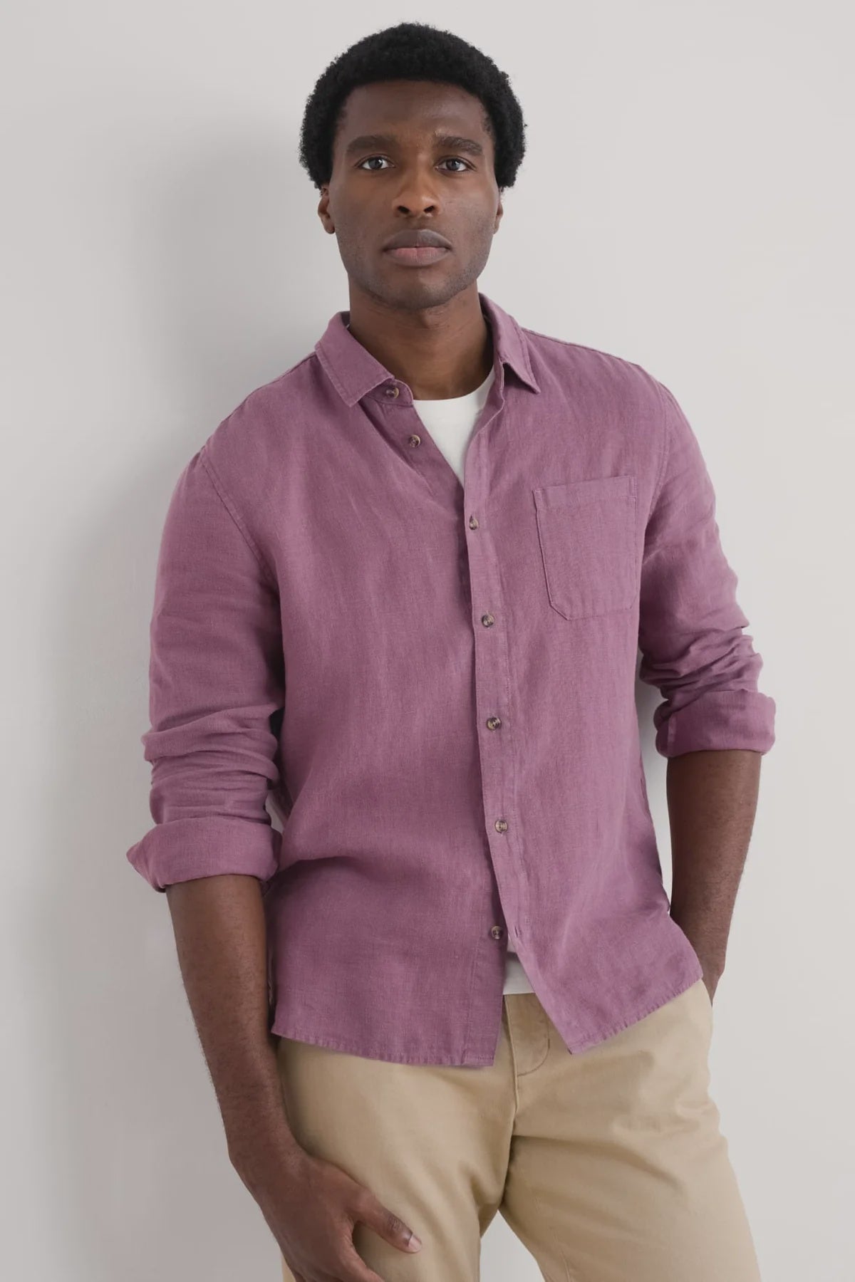 An easy-fitting shirt made from breathable linen, with long sleeves that are easy to roll up for casual weekends. The curved hem is slightly stepped so it looks great untucked, or worn unbuttoned over a T-shirt. Garment-dyed for soft and characterful colour.