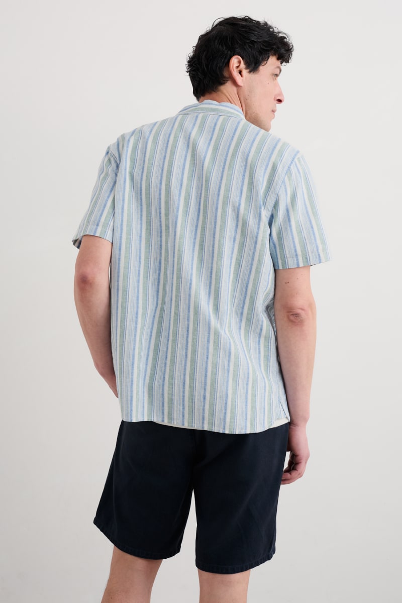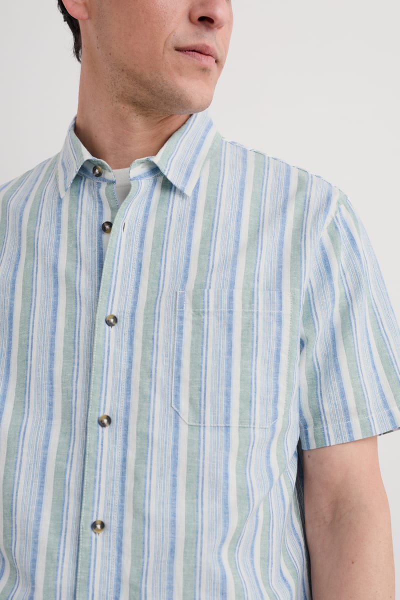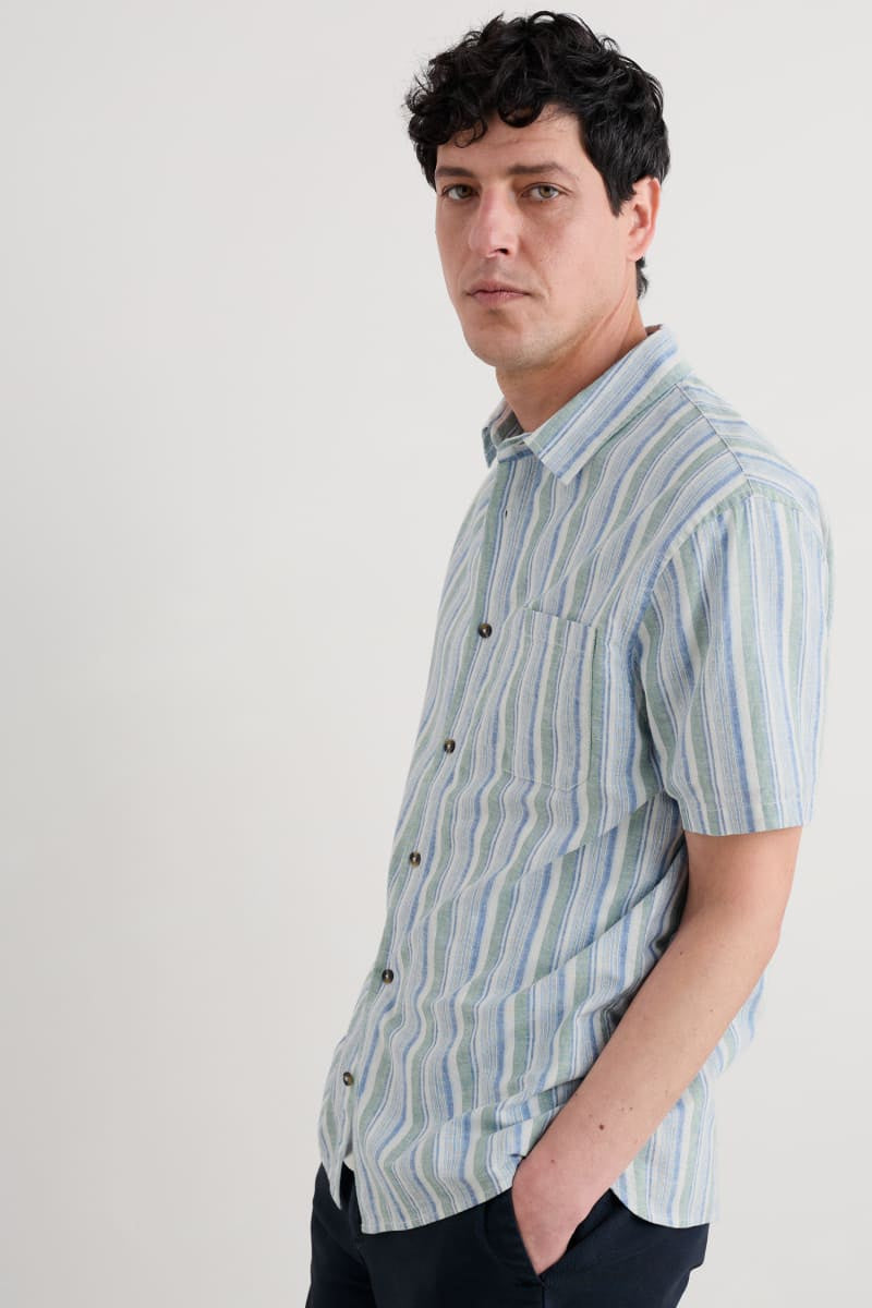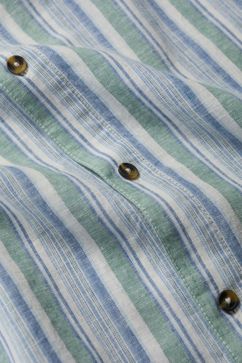 Made from a cool linen-cotton blend and with an easy, relaxed fit, our Dopper Shirt is perfect for warmer days. The mixed stripes are yarn-dyed to enhance their vibrant coastal colours, and we've added smart-casual touches like a neat collar and chest pocket. A versatile piece for the summer.