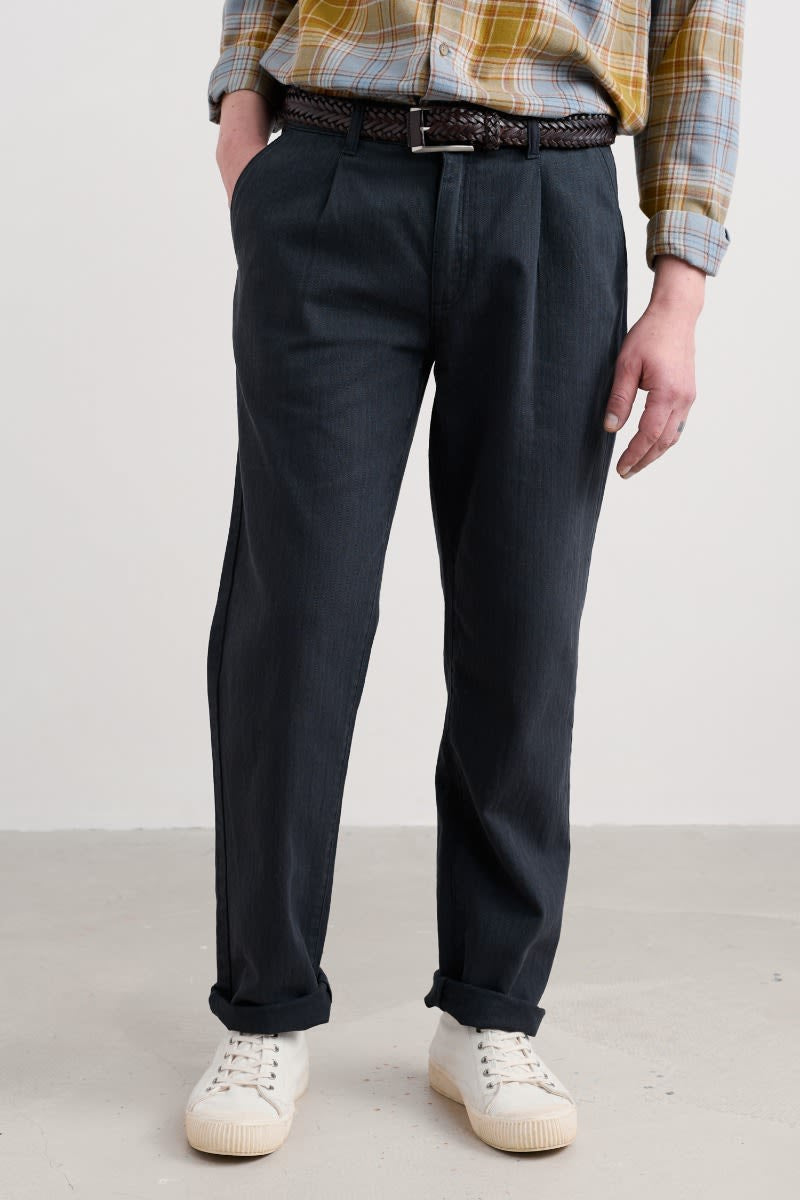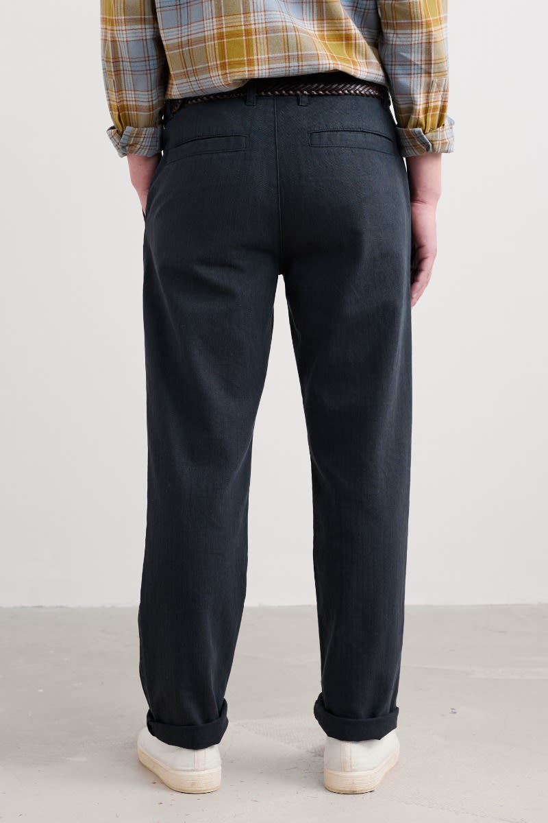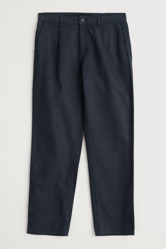 Woven from a breathable blend of organic cotton and linen, our men's Helmsman Trousers have a relaxed tapered fit and pleat front, making them the perfect choice for days when comfort and style are key.