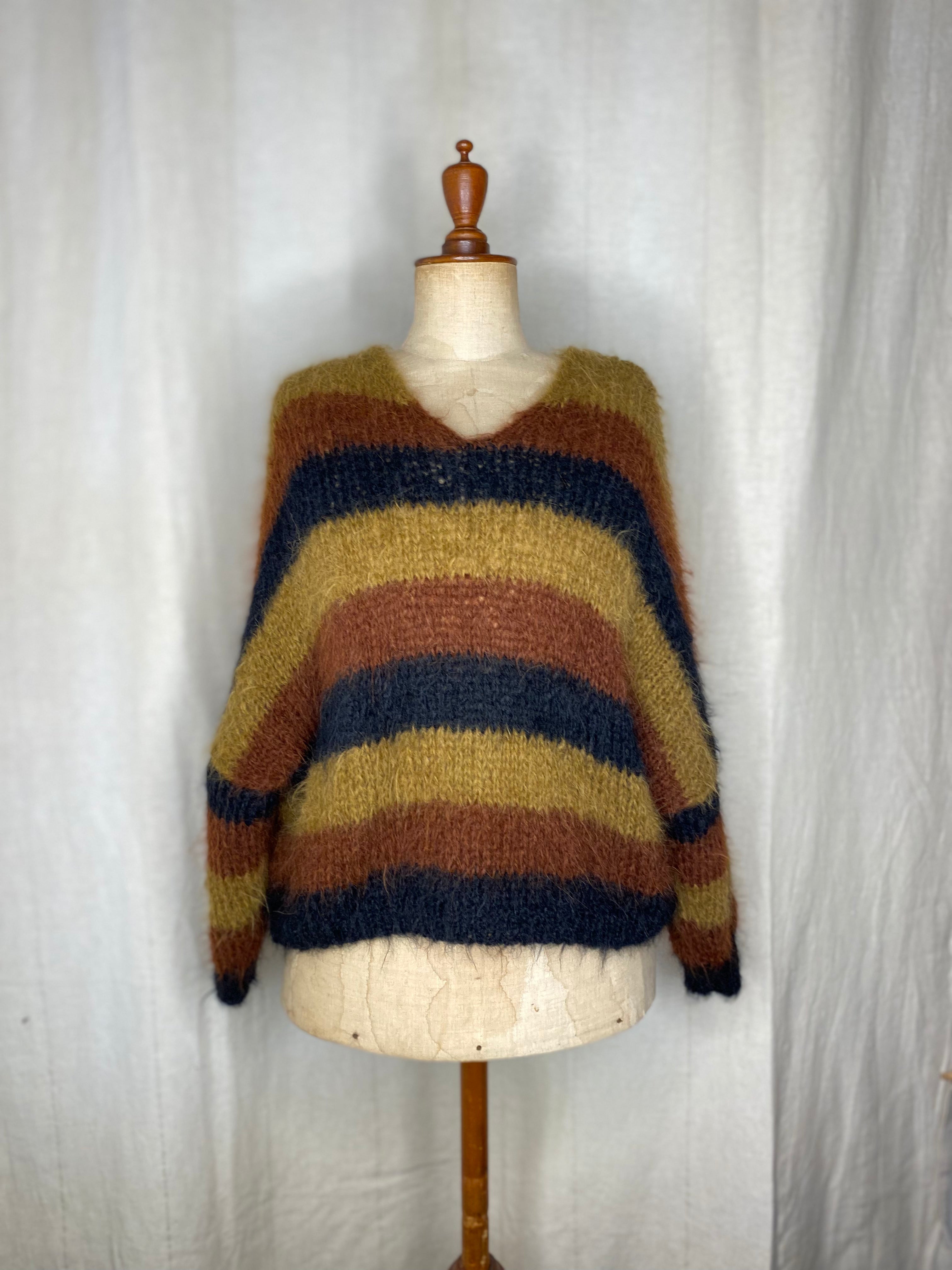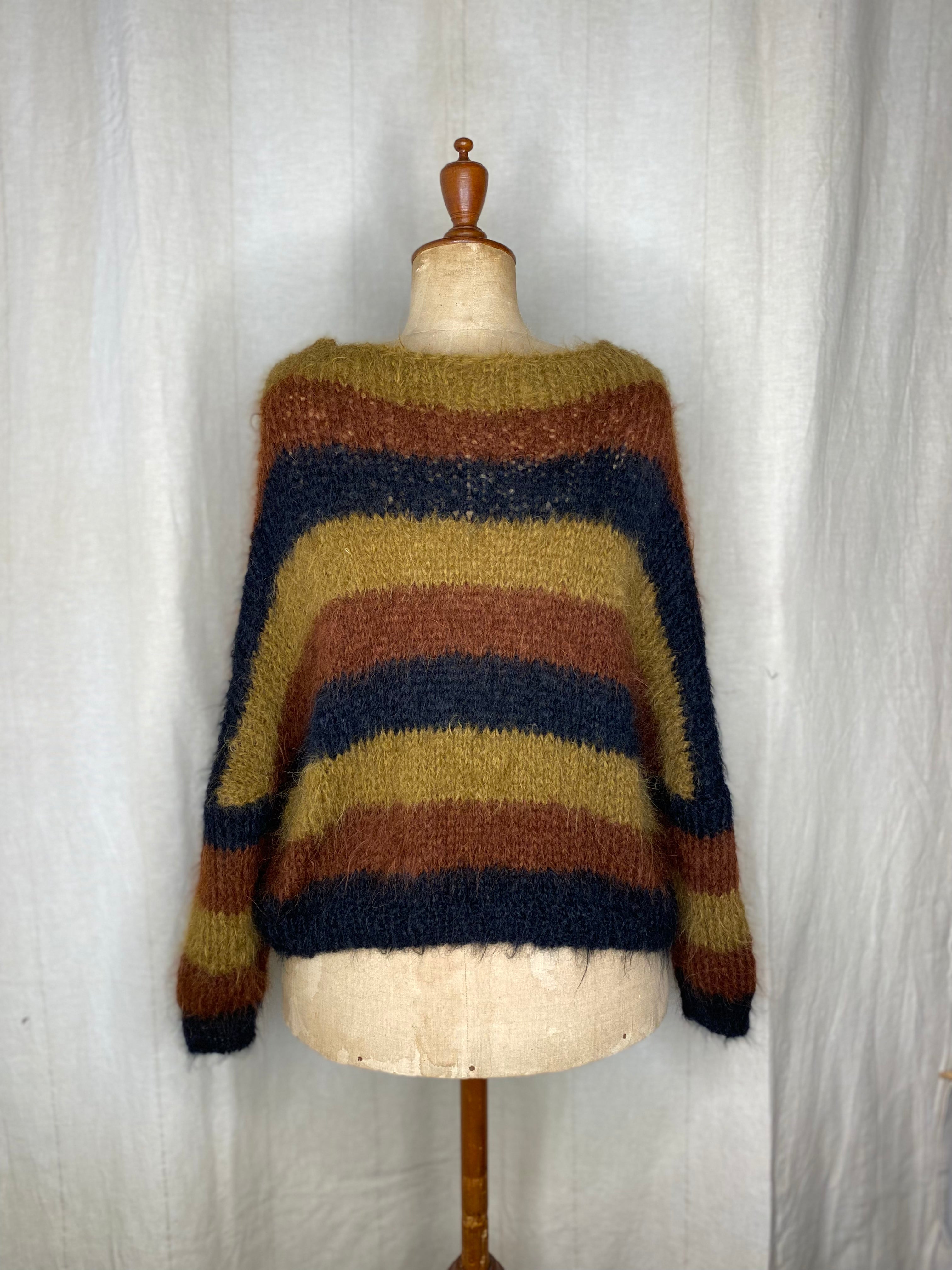 Alpaca Striped Batwing Hand Knit Jumper - Suri
