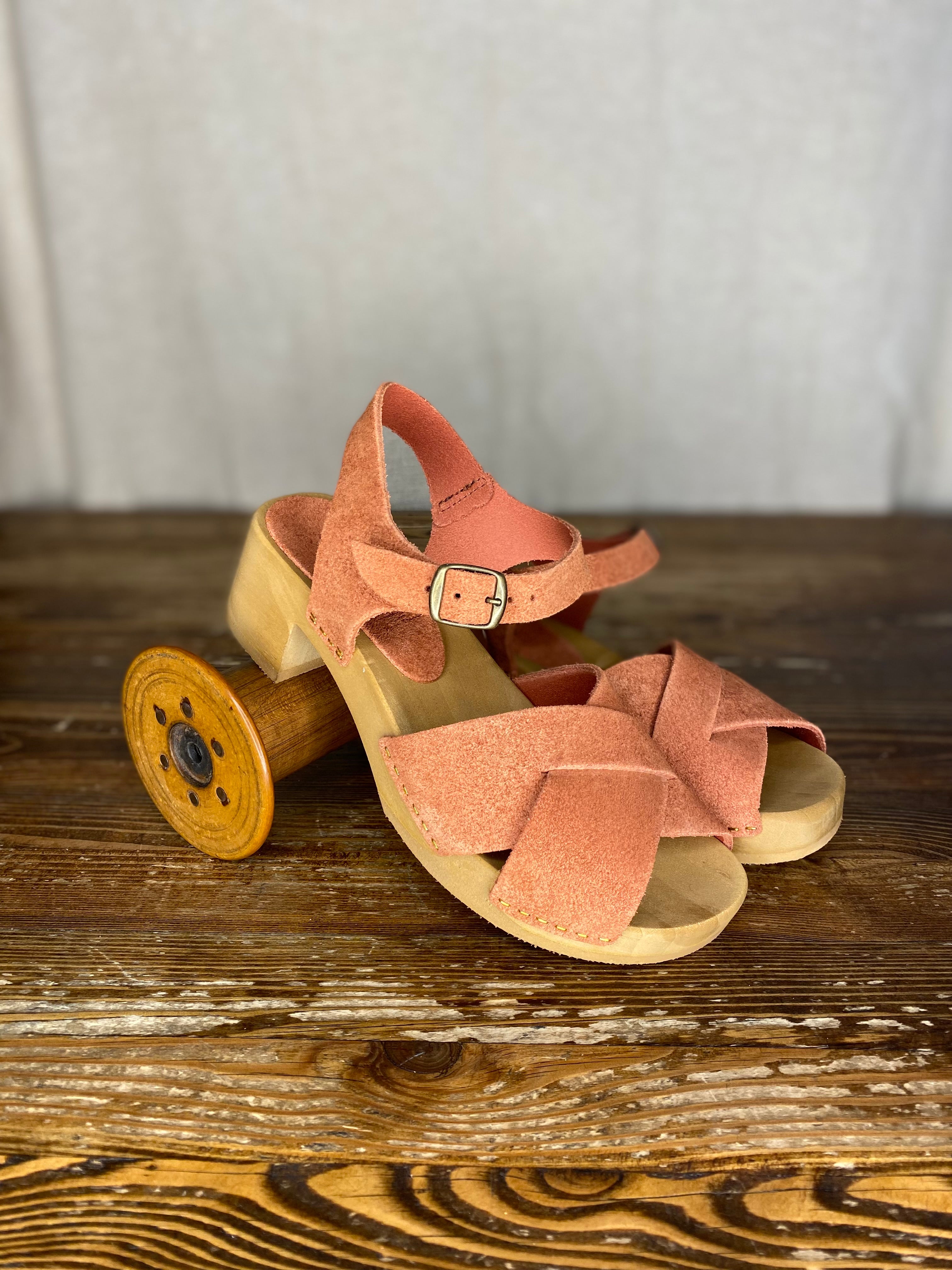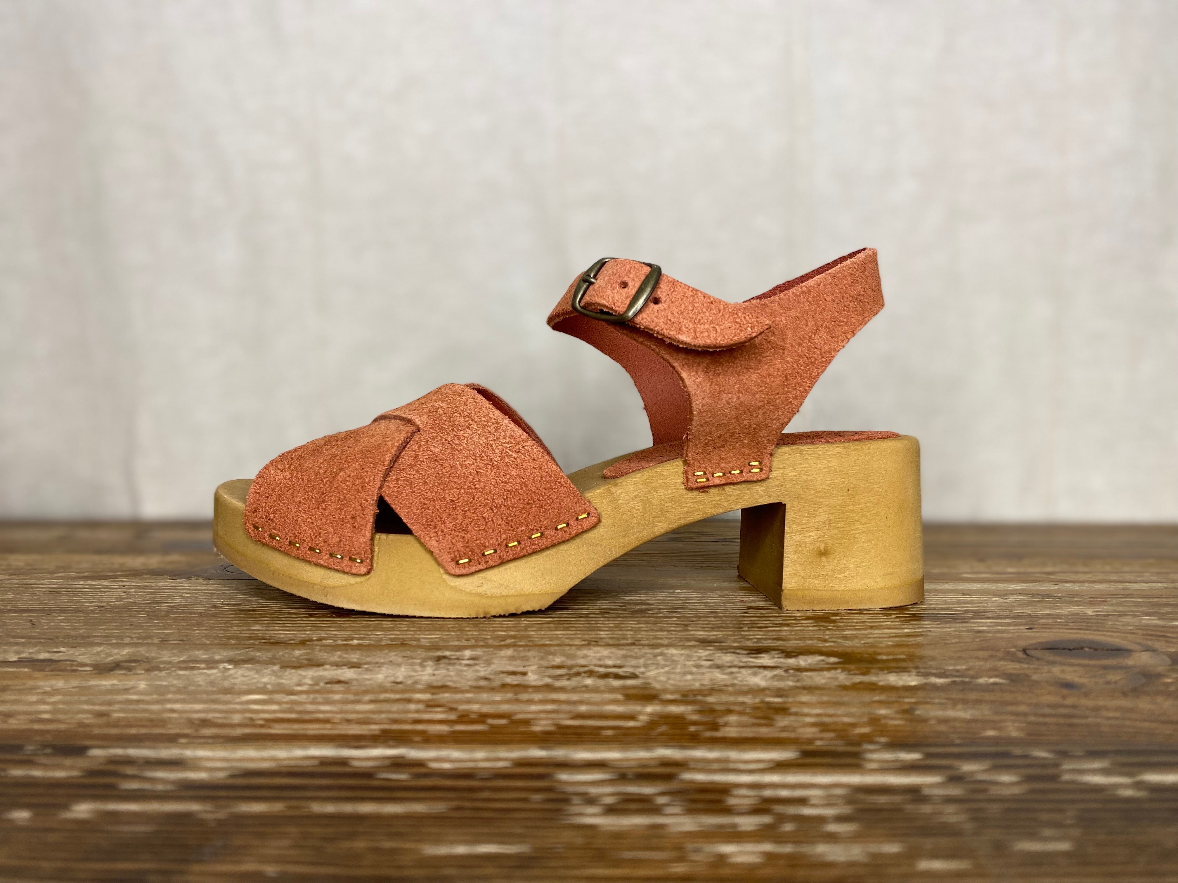 Featuring a mid height heel, multi strapped front, open toe and ankle strap. The main shoe is made from vegetable tanned suede and these comfortable sandals have been made to order, just for From Dust.