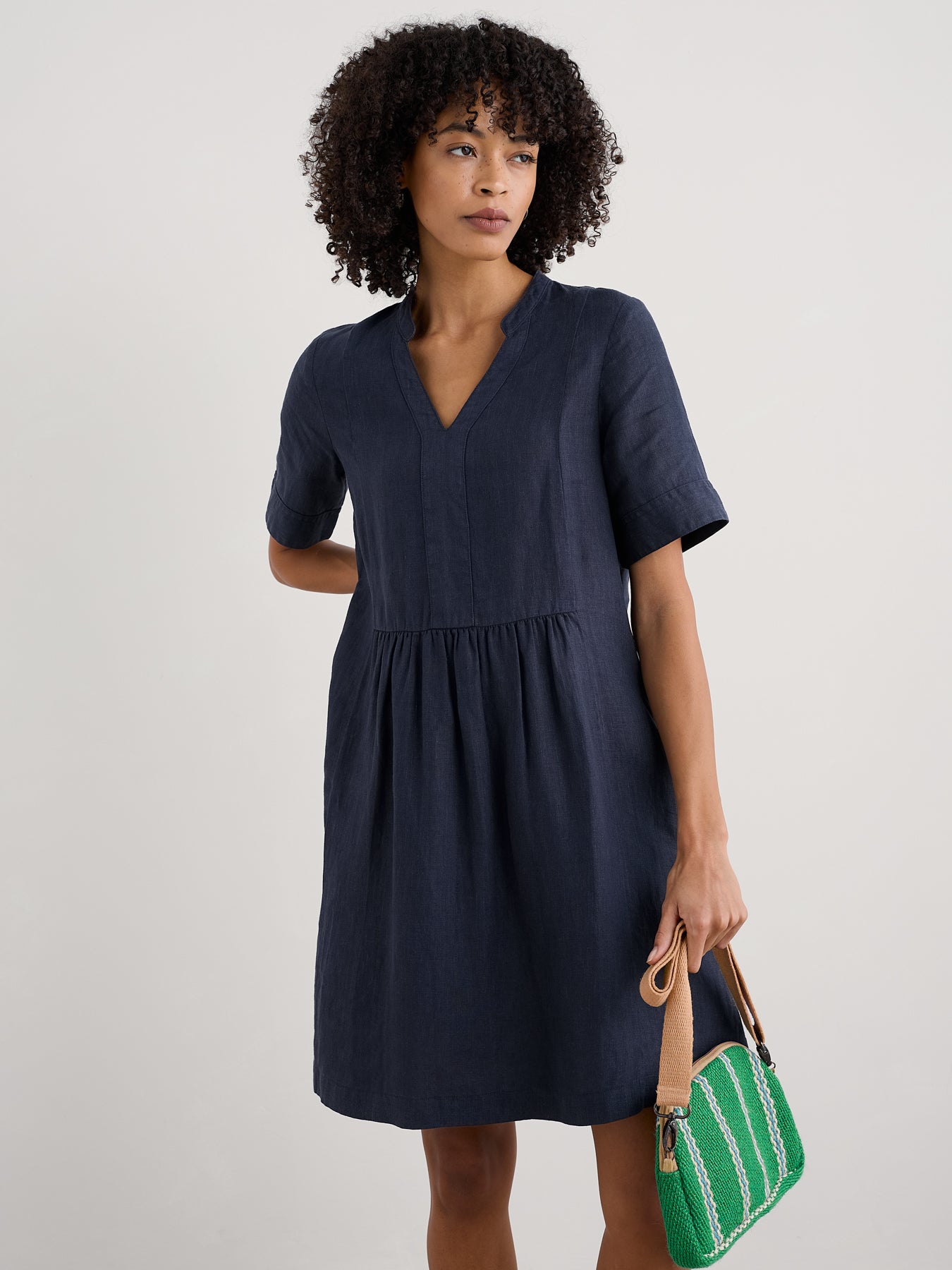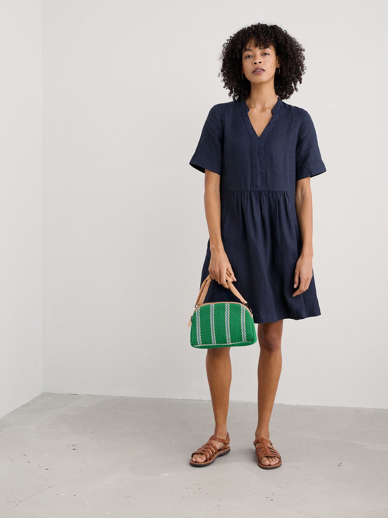 A light and airy linen dress for warm summer days. The Draw Kiln Dress has a relaxed flared silhouette that falls just above the knee. We’ve given it a notch neckline, short sleeves and hidden pockets. Pair with sunglasses and sandals to float through your day with ease.