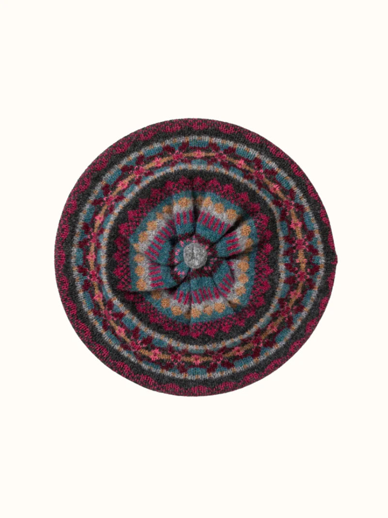 A stylish, easy to wear beret with beautiful ERIBÉ Fairisle patterning