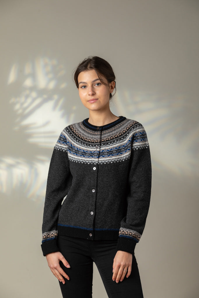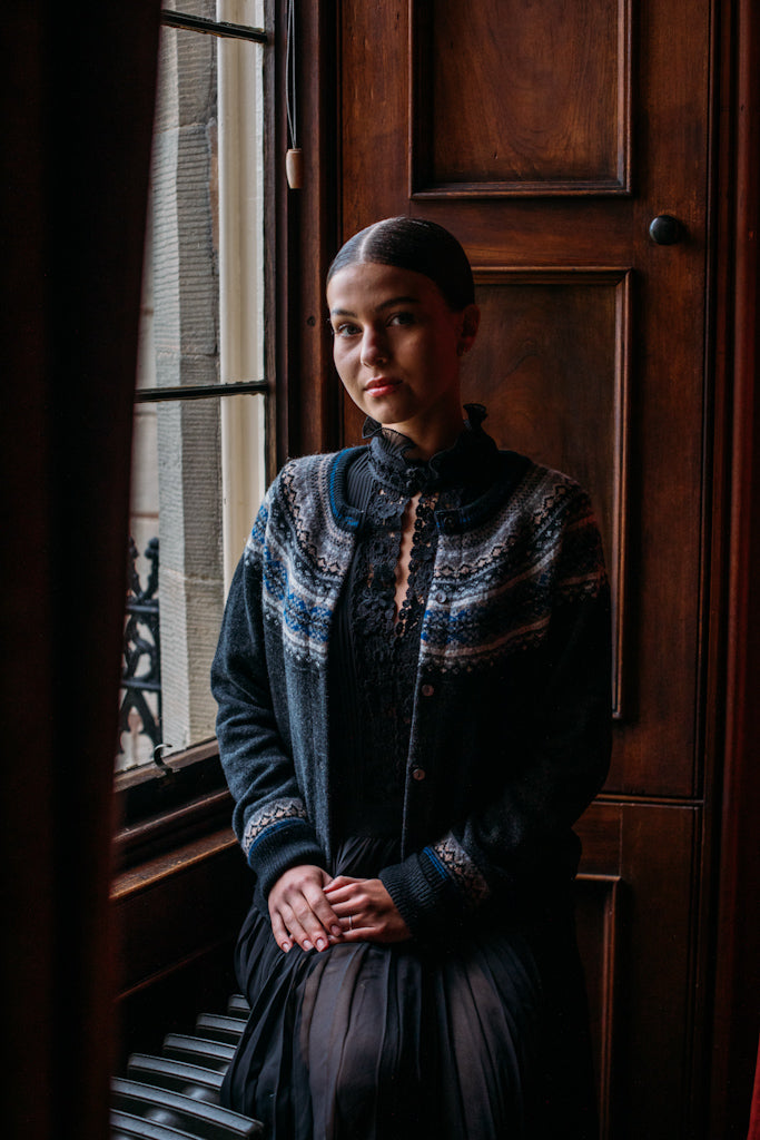 Unlike the longer 'Alpine' styles, this Short Cardigan does not feature angora yarn in the Fairisle pattern.