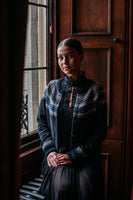 This short cardigan sits below your hip bone and has regular sleeves and armhole sizing. Fairisle pattern detail on shoulder only, hip length with extra long cuff and shell buttons. Designed to sit with high waisted trousers, skirts and dresses.