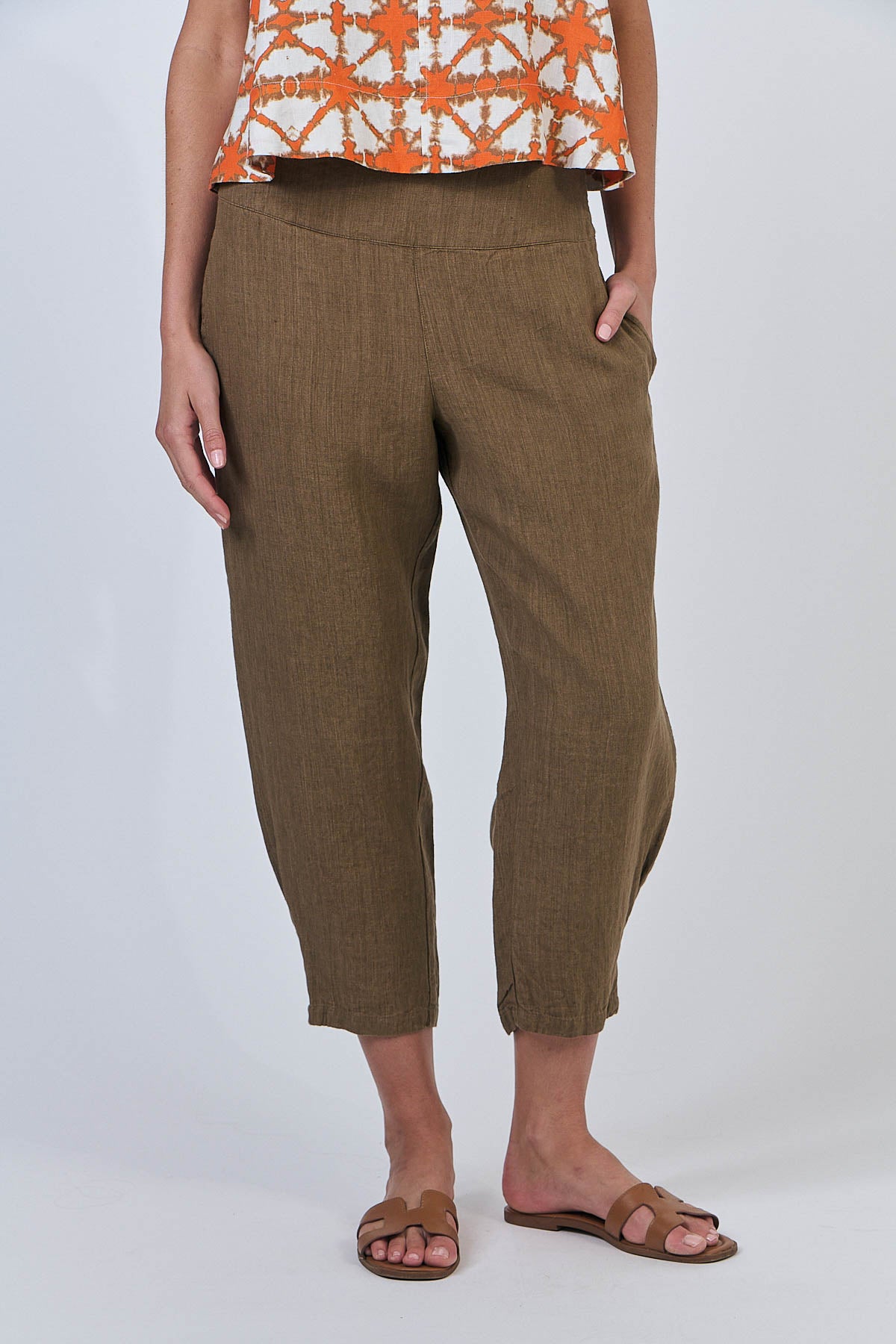 Crafted from 100% linen, the Andy Flat Front Pants features a wide, stretch-smocked waistband that sits flat against the body. The relaxed leg silhouette tapers slightly towards the ankle and includes practical side pockets, making these versatile trousers the perfect foundation for countless outfits — from casual weekends to polished workwear.