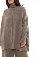 A classic oversized style in a Cashmere Wool-mix fabric. This Pullover features long sleeves, a stand up neckline and ribbed hemline and cuffs.