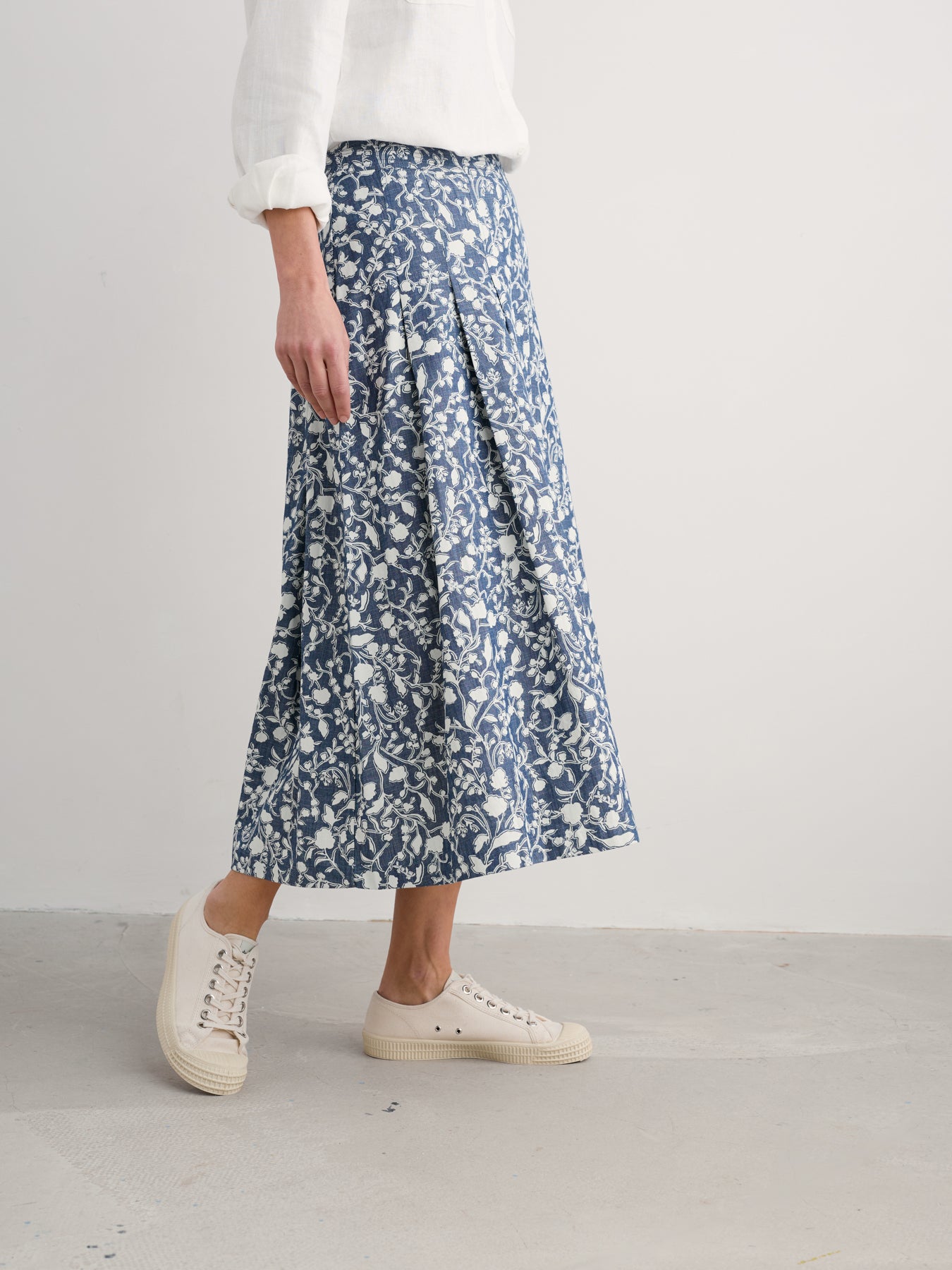 Woven from soft cotton chambray, our Jamboree Skirt feels silky and cool against the skin. We’ve given this midi length style soft pleats for plenty of movement, so it’s full and floaty with a flattering waistband and concealed side zip. We like it best with a simple organic cotton top.