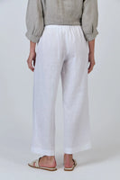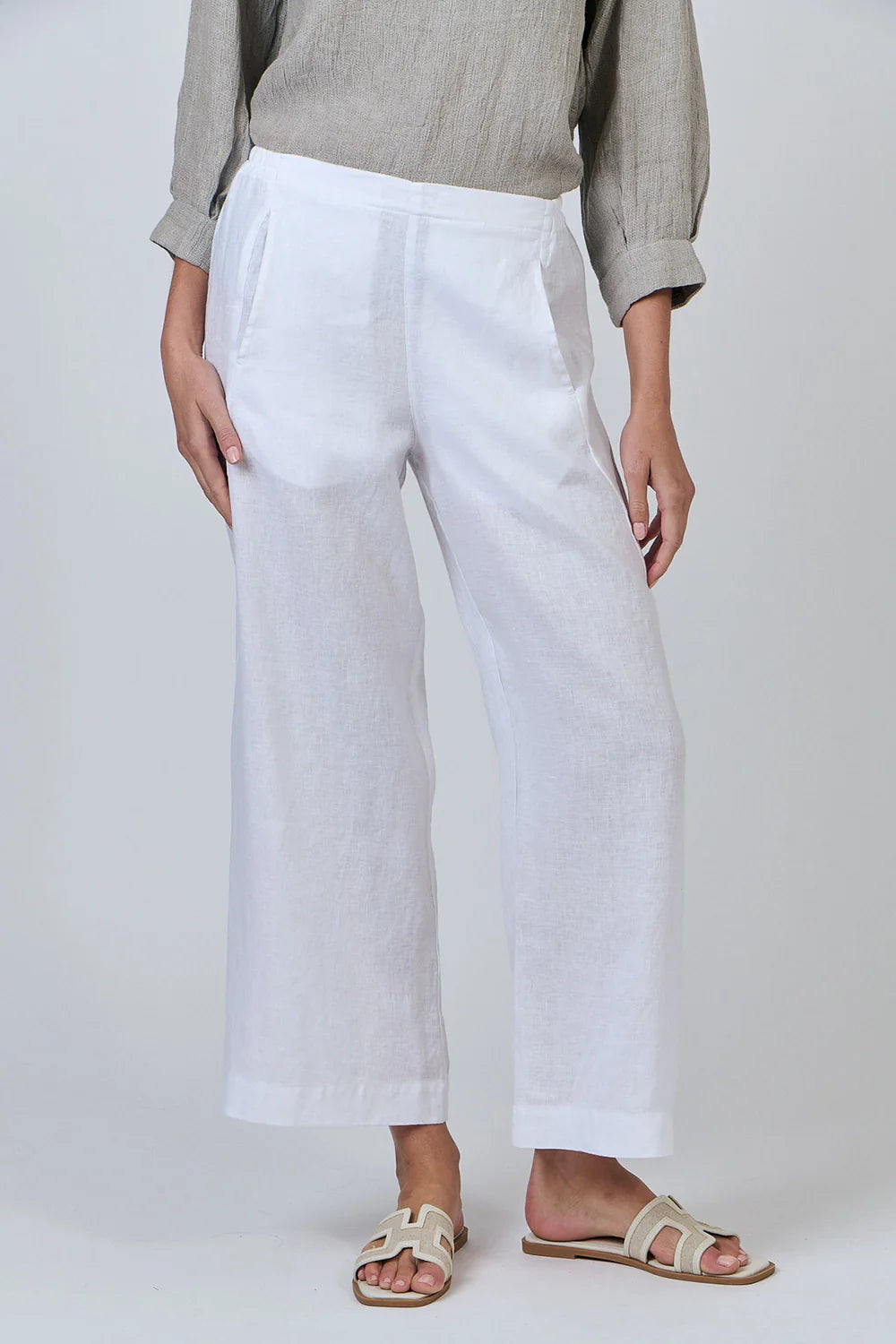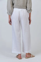 A wide-leg pant featuring pleated detailing at the waistband and two front pockets.