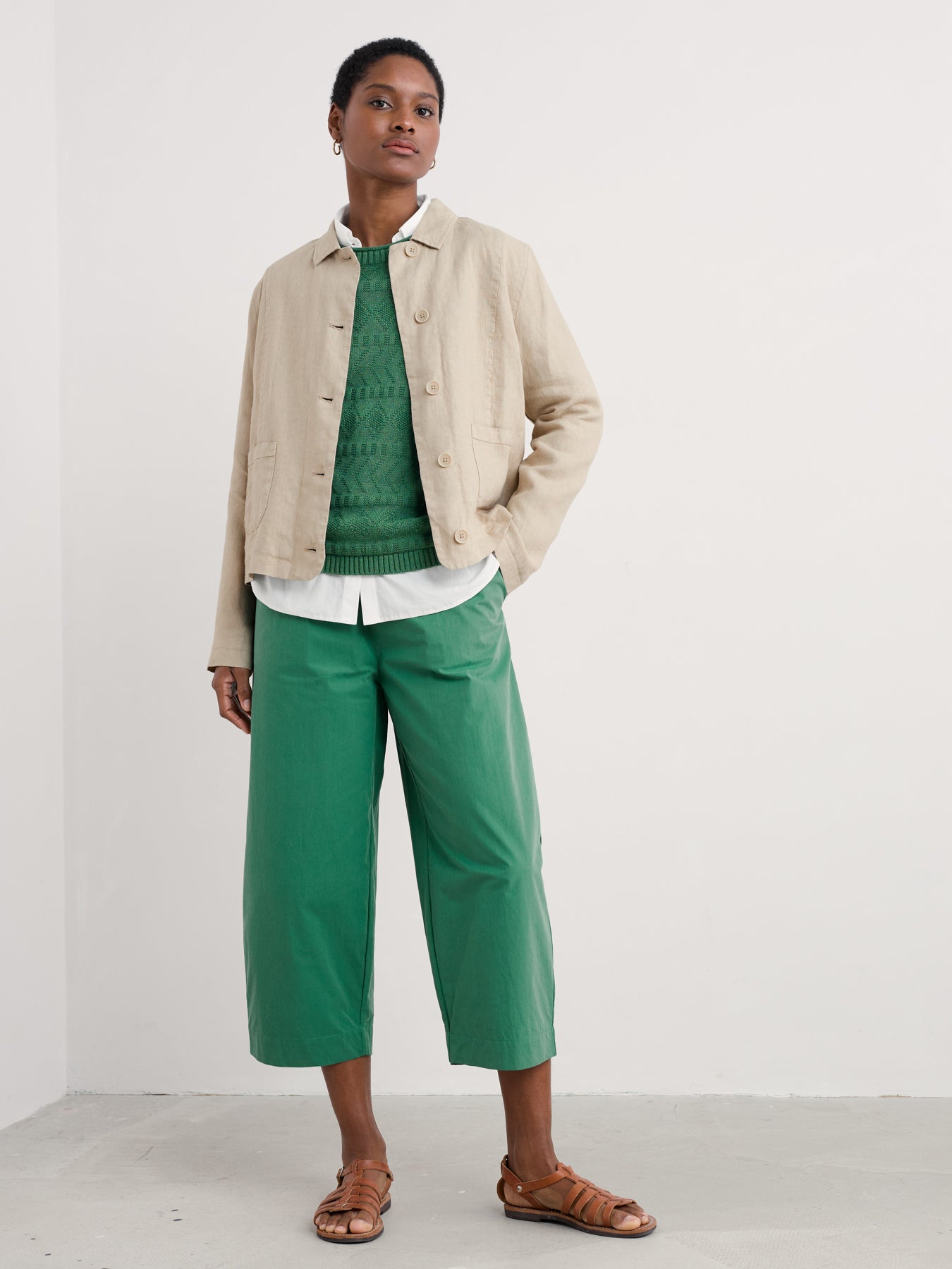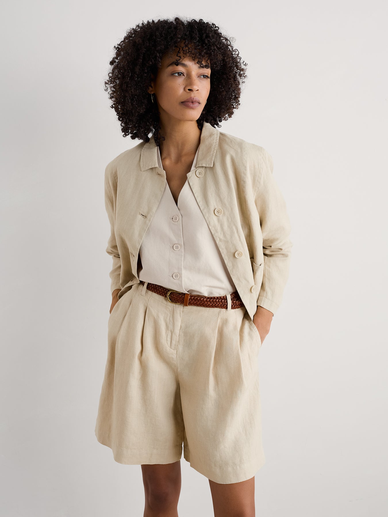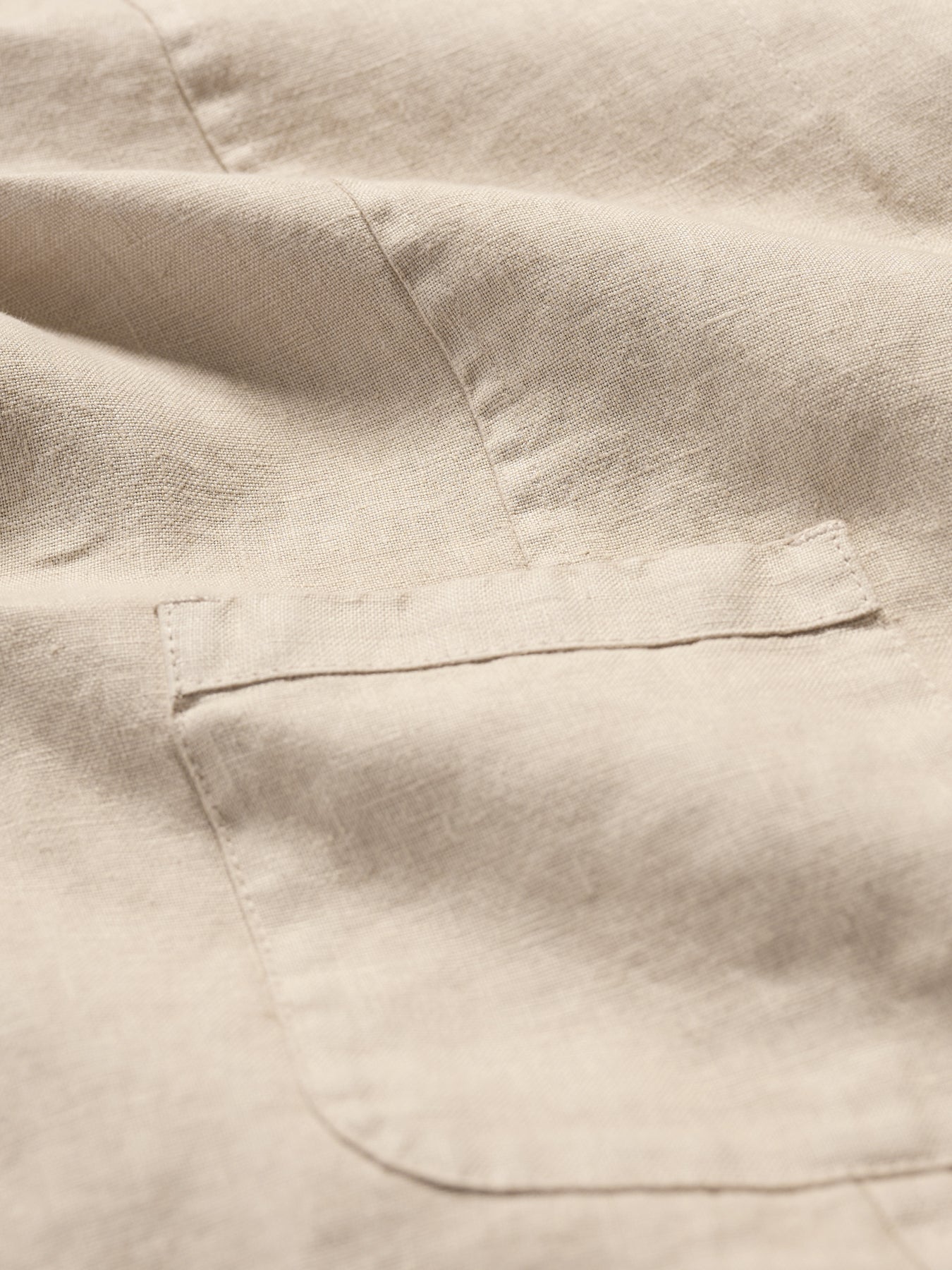 A classic garment-dyed linen jacket with an easy, relaxed structure that's influenced by Cornish workwear. Throw over jumpers and jeans, or wear loose over flowing dresses. Our linen will grow softer and smoother with each summer of wear, developing a characterful pattern of highs and lows that is completely unique.