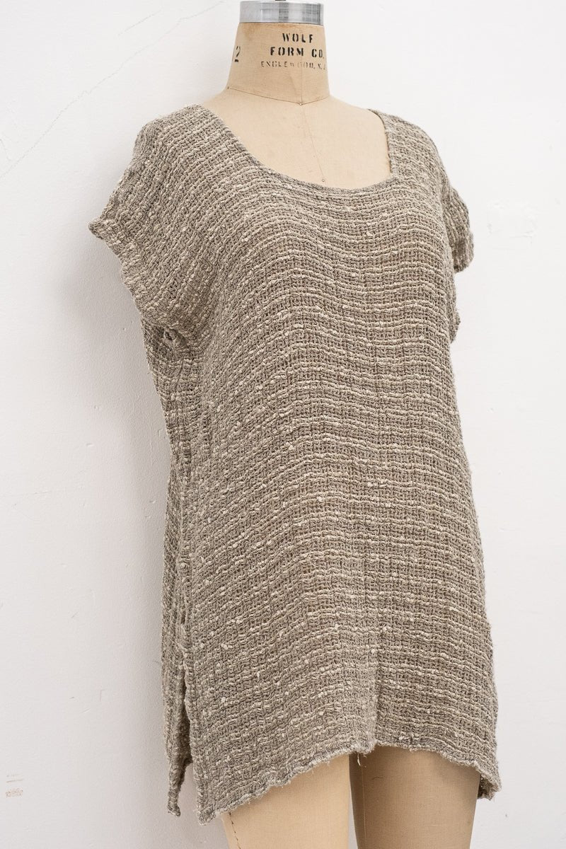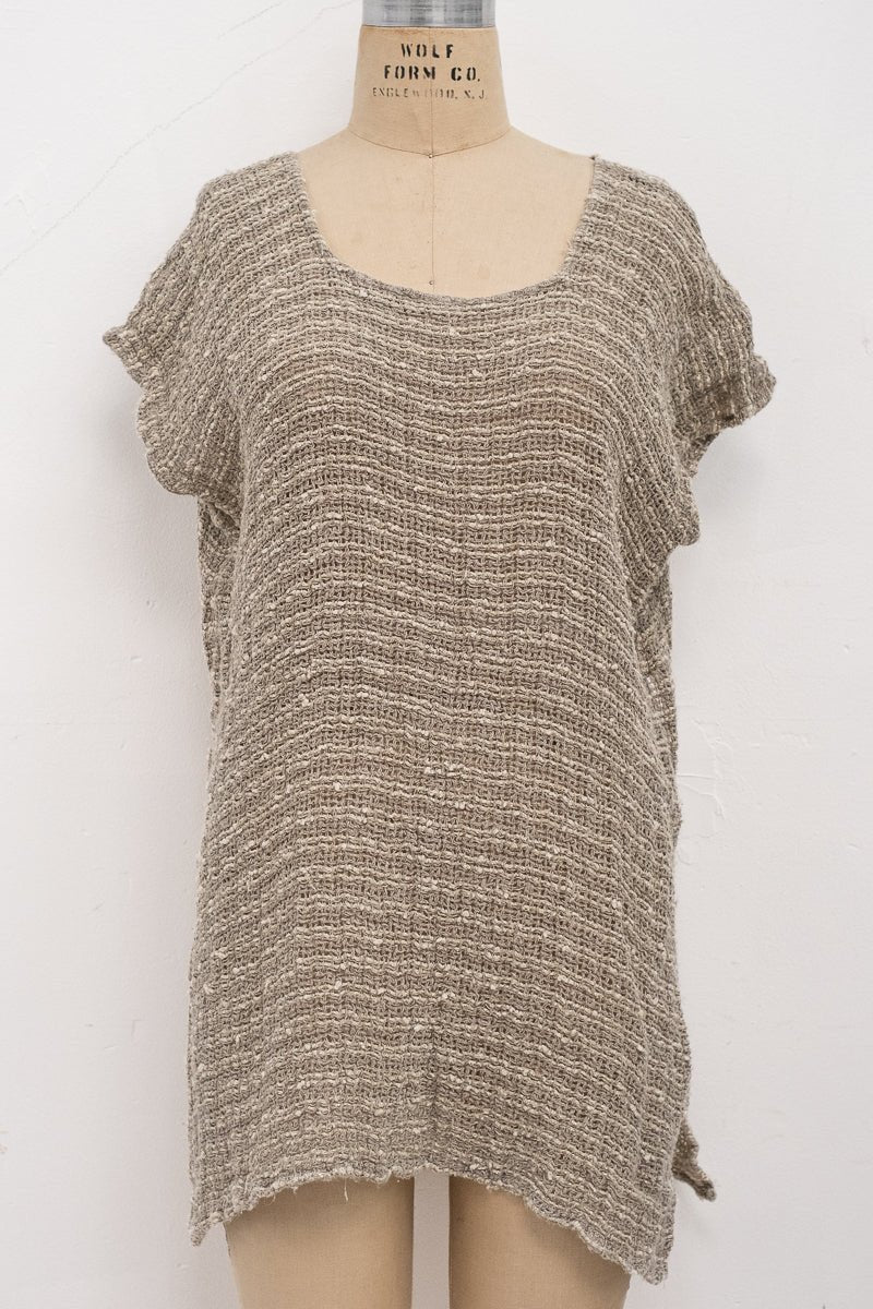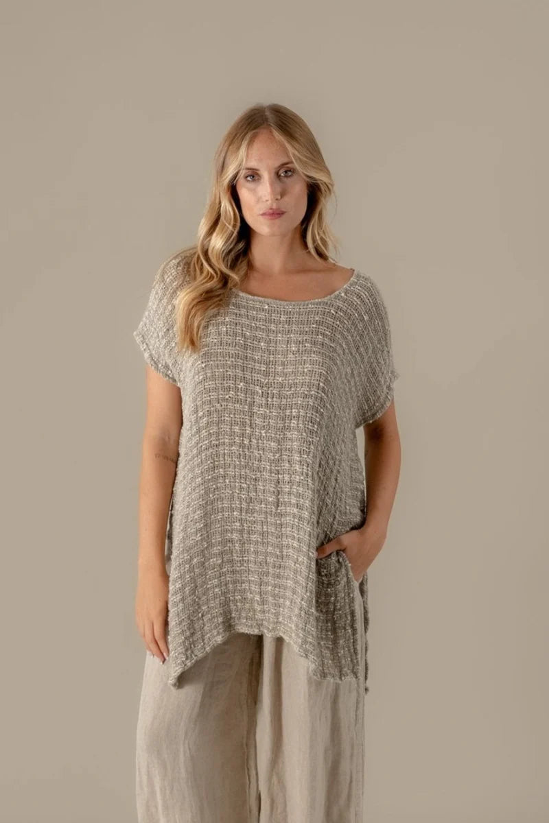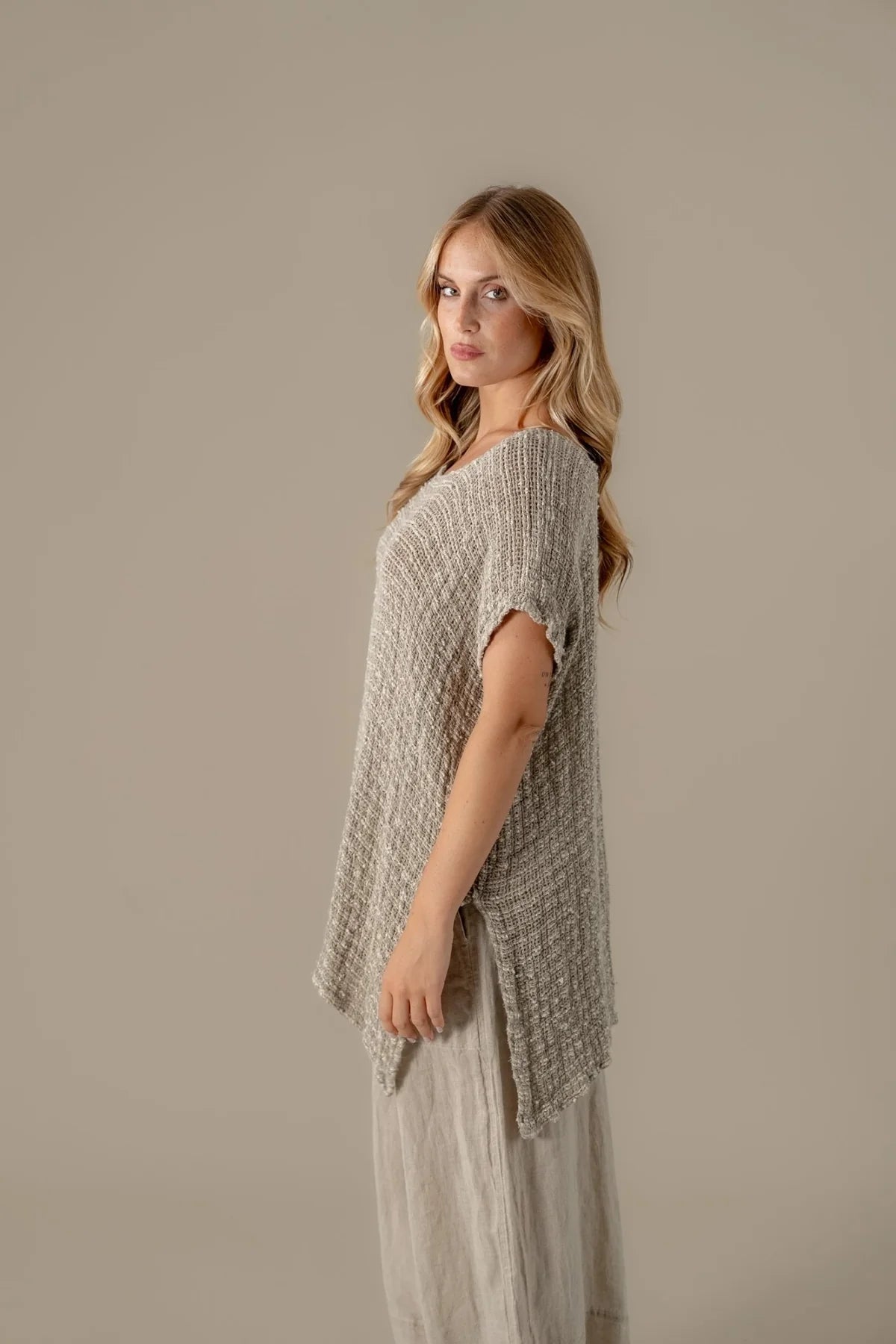The Maglia Icaro is a longer lined relaxed piece with short sleeves, round neckline and charming side splits.