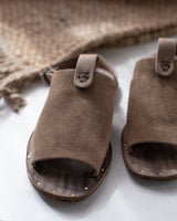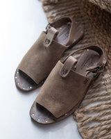In a soft suede leather, the wide peep-toe style sandal has a tab design detail & heel strap for comfort and security.