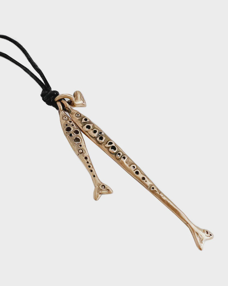 The 'Iovers', Innamorati Pendant, is made from handcast bronze on a waxed cotton cord.