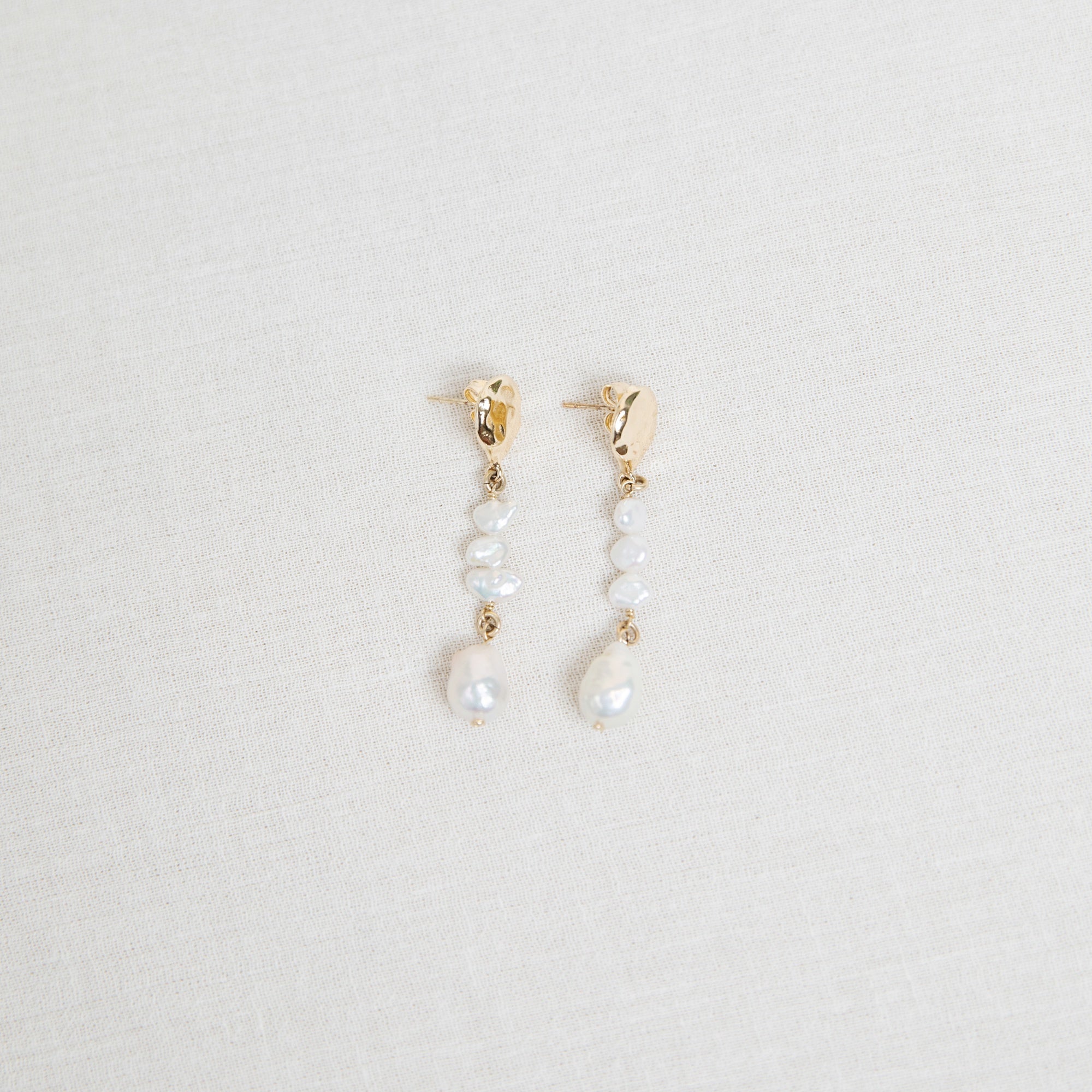 These pieces are very special to Lauren as she made this collection of pearl jewellery to complement the most beautiful + raw pearl necklace that Lauren's Mother wore on her wedding day, a piece she lent Lauren to wear at hers. Just before the wedding she handed Lauren a little box and asked if she would like to wear it at her wedding... it was so dainty and beautiful.