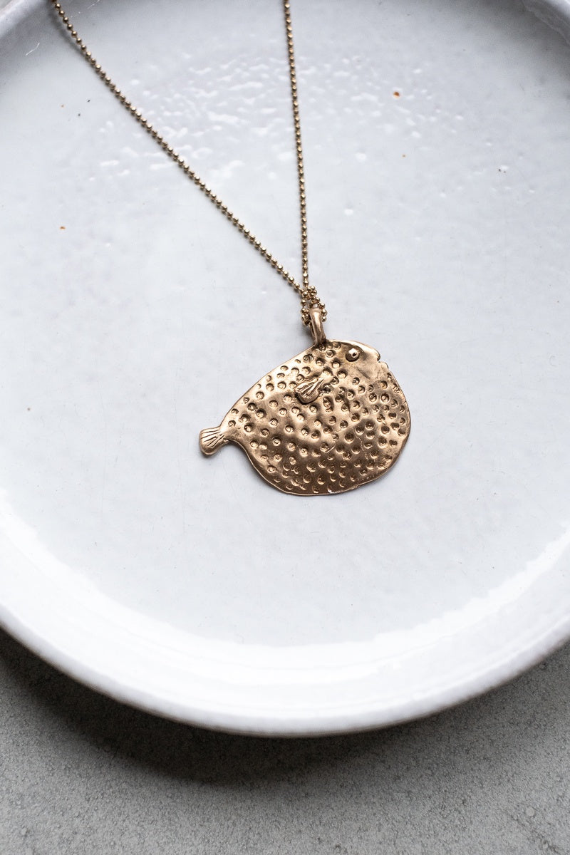 The 'plump fish' - Paffuto Pendant, is made from handcast bronze on a waxed cotton cord.