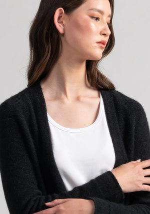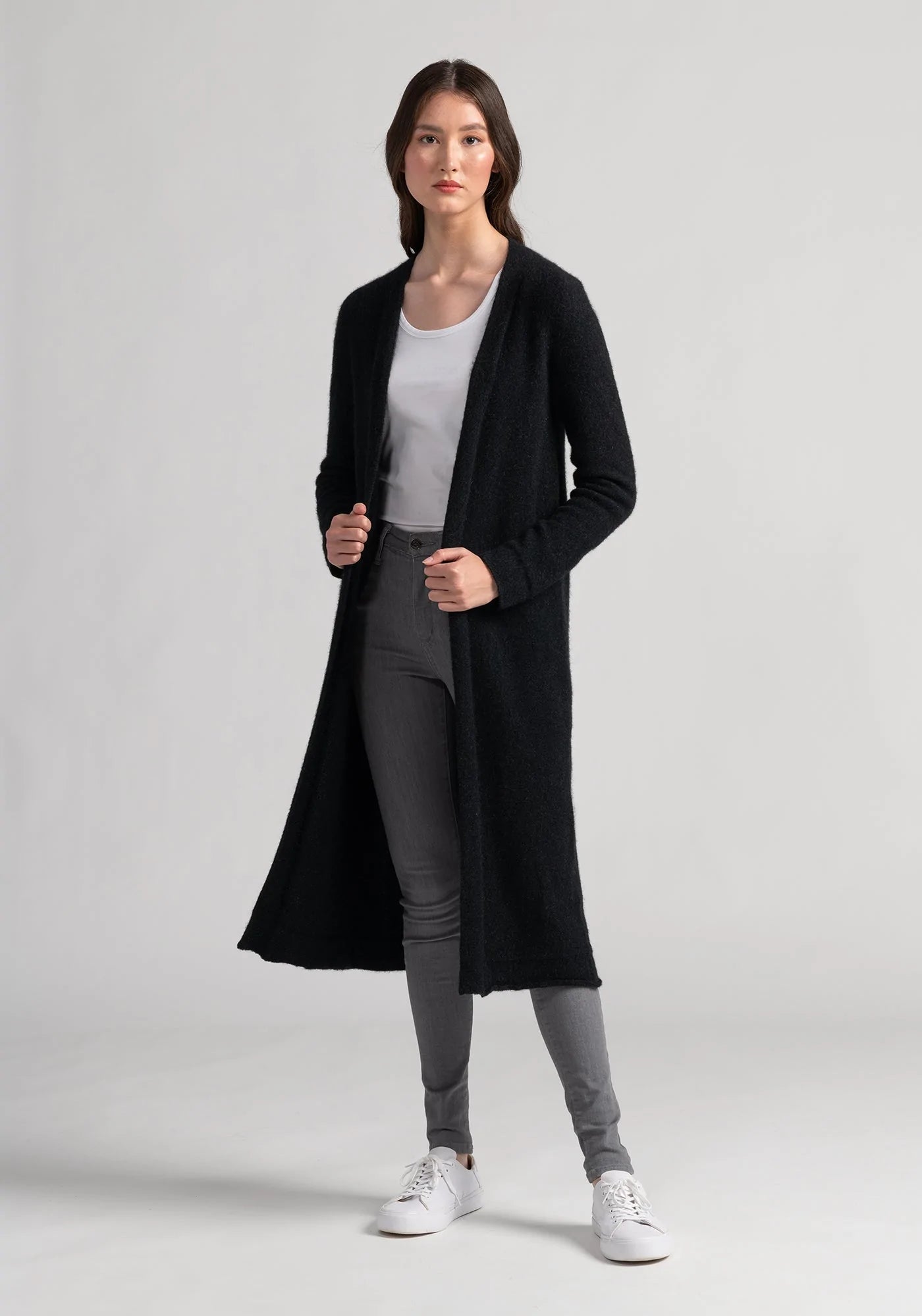 We’ve had a lot of requests for a long Ecopossum™ cardi and here it is! Made from an exclusive blend of Merino, possum and silk, this women’s longline cardigan features a reverse purl stitch through the body and plain stitch on the band and cuffs. Pill resistant and itch free, its simple styling means you can dress it up or down and wear it as a coat or a cardigan. Either way it’s going to keep you fabulously warm.