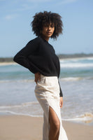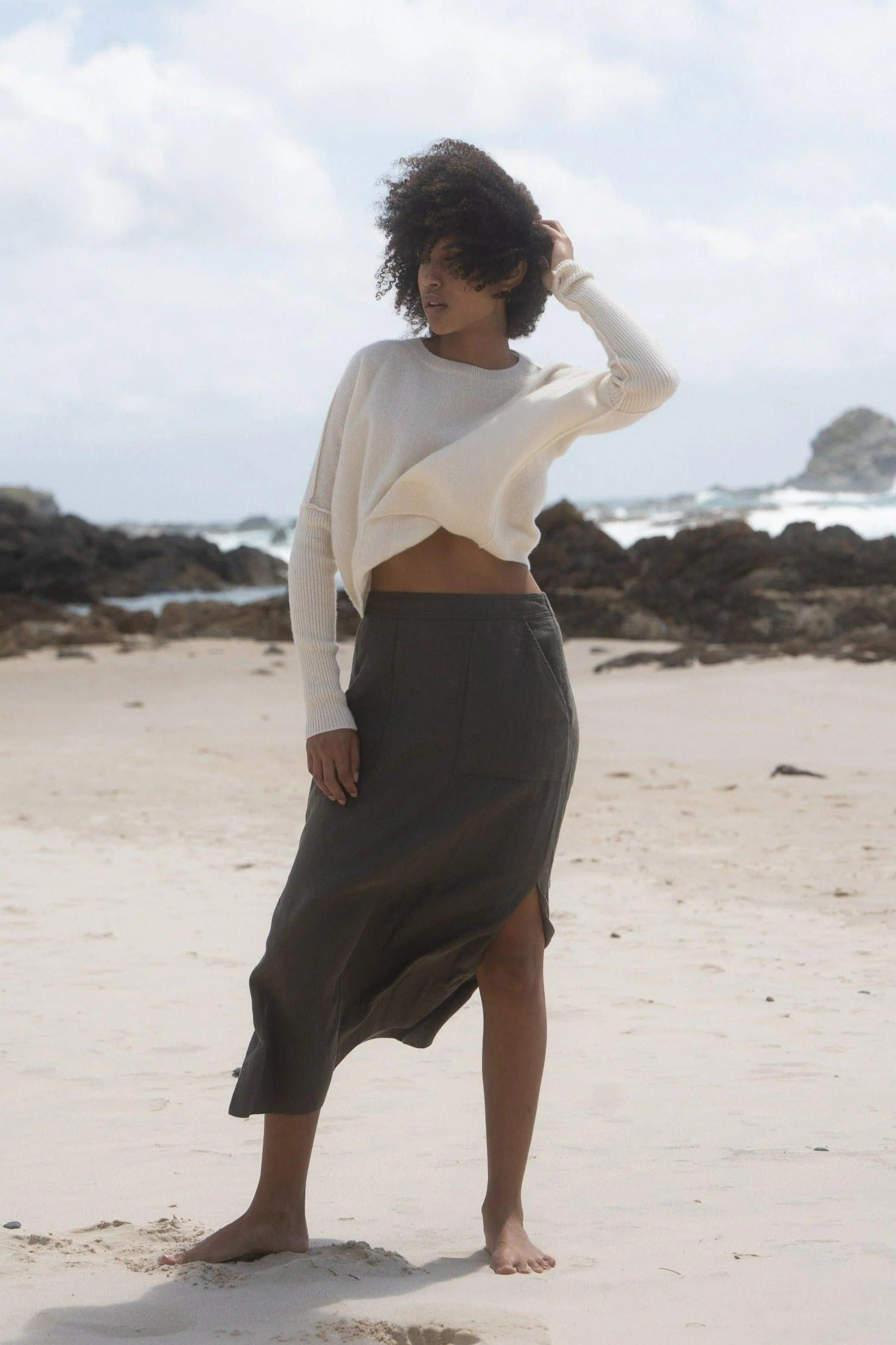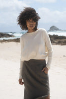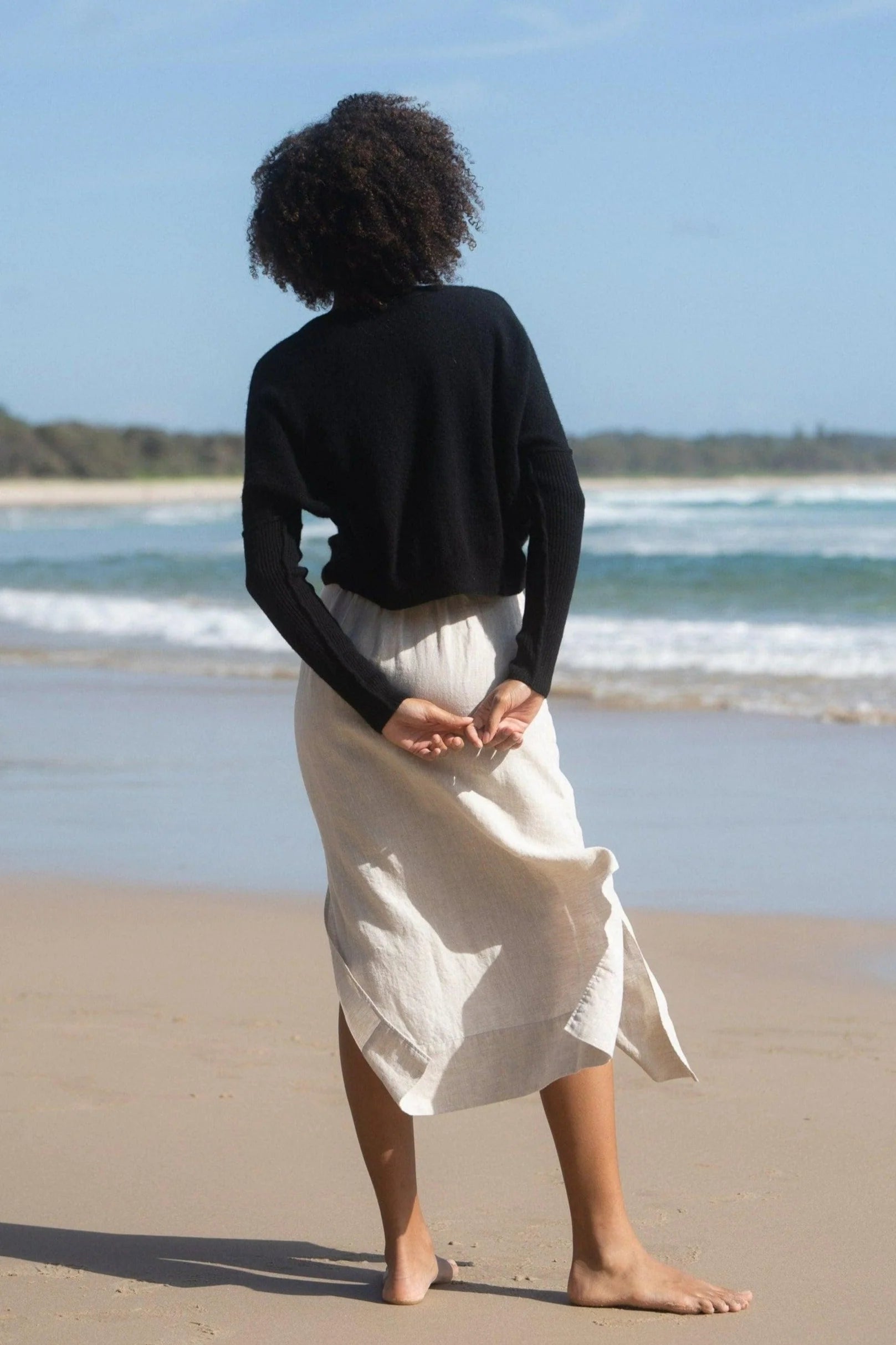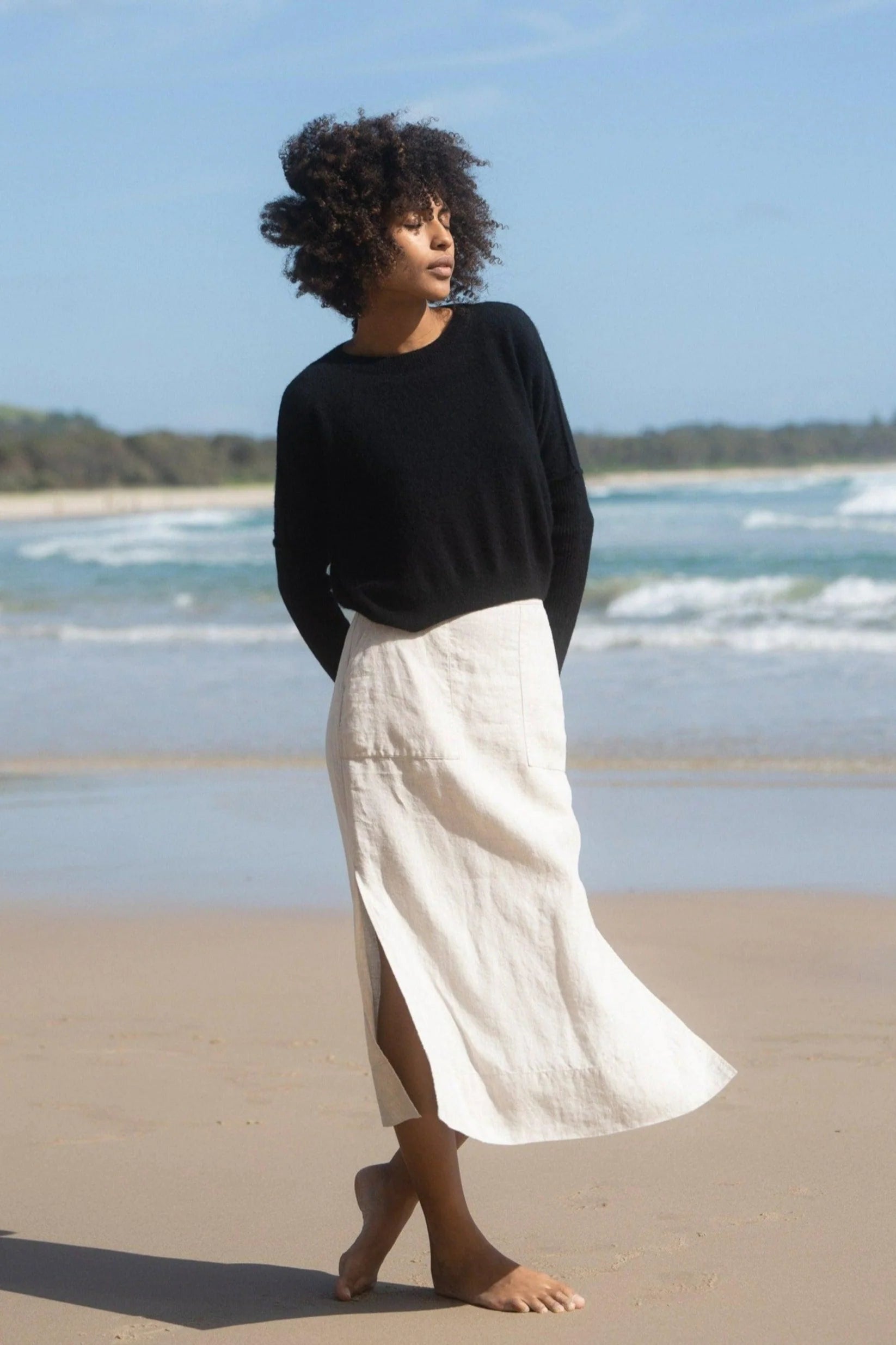 This Miri Cashmere Knit offers the perfect blend of coziness and warmth! With a luxuriously soft 95% Cashmere composition and 5% wool (including 60% recycled cashmere), you'll feel like you're wrapped in a hug! Don't let the lightweight material fool you, you'll be toasty and comfy all day. And, the relaxed fit makes it a great layering piece for your dresses, skirts and pants. Snuggle in luxury with the Miri Cashmere Knit!