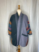 A versatile mid-thigh length 100% Merino Lambswool 'throw-on' coat/jacket with practical deep pockets.