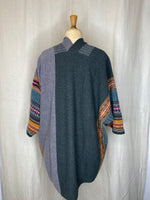 A One Size Fits Most garment - Turn upside down for extra warmth around the shoulder or to wear elegantly with a dress. This garment can be worn like a blanket, and is ideal for those temperature changing moments; a wonderful live-in garment for all occasions.