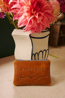 A small digitally printed leather front and contrasting single colour back, with zip fastening and organic cotton lining.