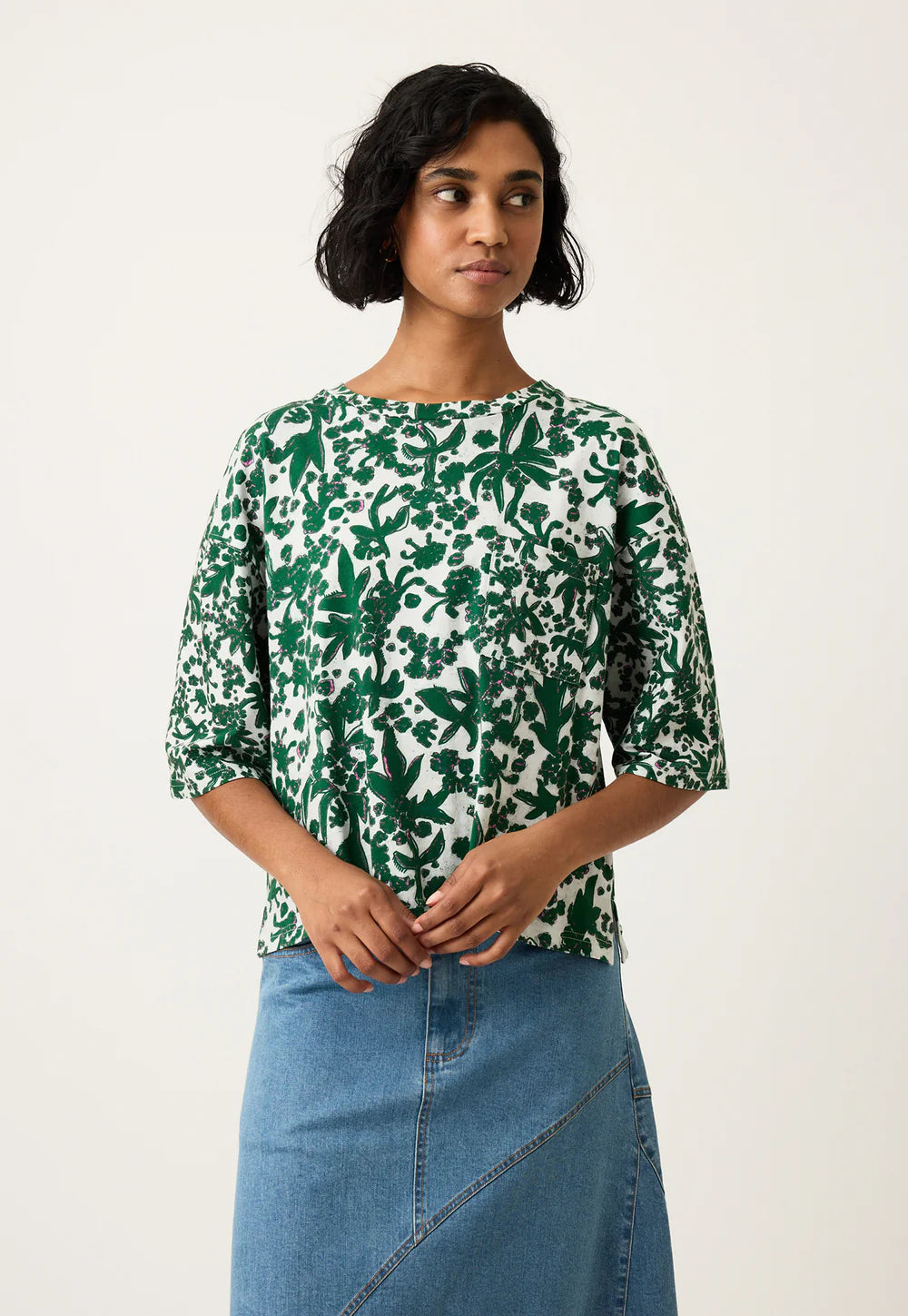 A relaxed boxy fit t-shirt featuring a back yoke, darted sleeve detail and a patch pocket on the front left of bodice.