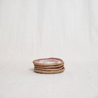 Perfect as a side plate for a slice of cake, or perhaps to display your beautiful jewels. or a candle on. Glazed in a deep red and soft glossy white speckle. This beautiful glaze colouration comes from an iron reaction that happens in the kiln when firing, therefore no two pieces will ever be exactly the same… But that’s the beauty of them.