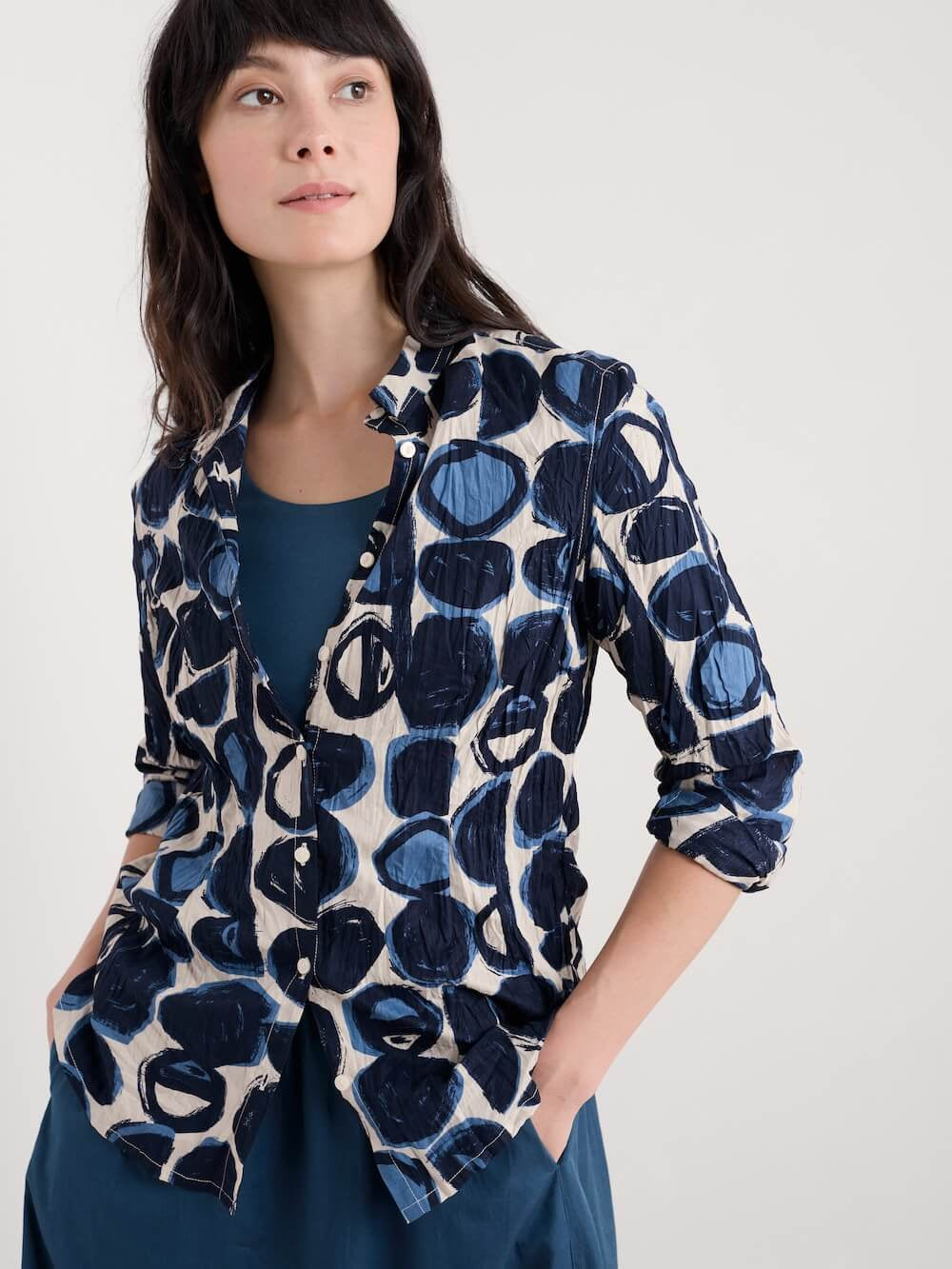 The Larissa Shirt is a year-round favourite. Made from the softest organic cotton with a casual crinkled appearance, the beauty of this shirt is that it doesn’t need ironing – just wash and twist to keep the crinkle. This semi-fitted style is easy-to-style and comfortable, with long sleeves and button loops so you can roll up the cuffs to change your look. Each season, it showcases some of Seasalt's most-loved prints, created by their talented textile designers.