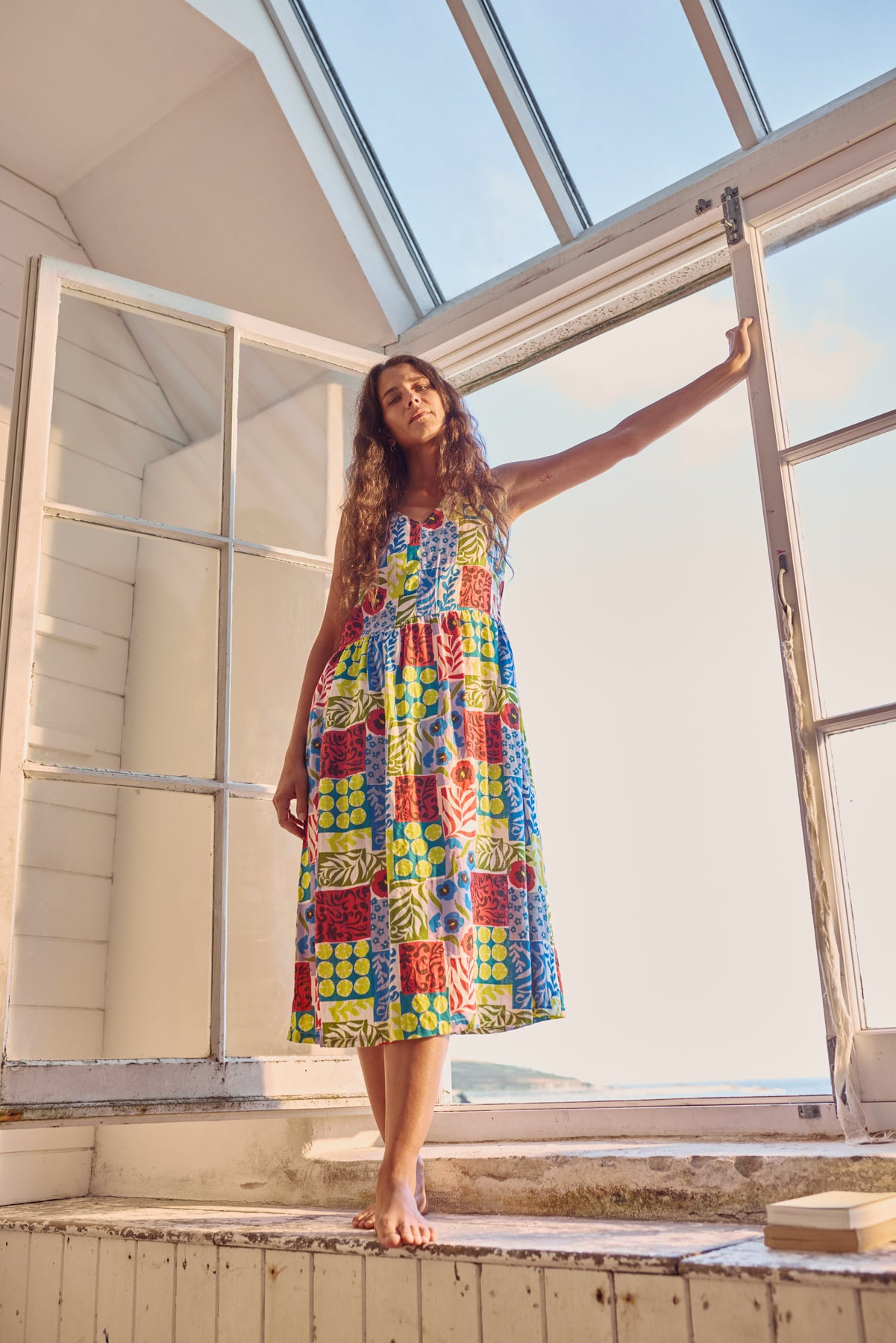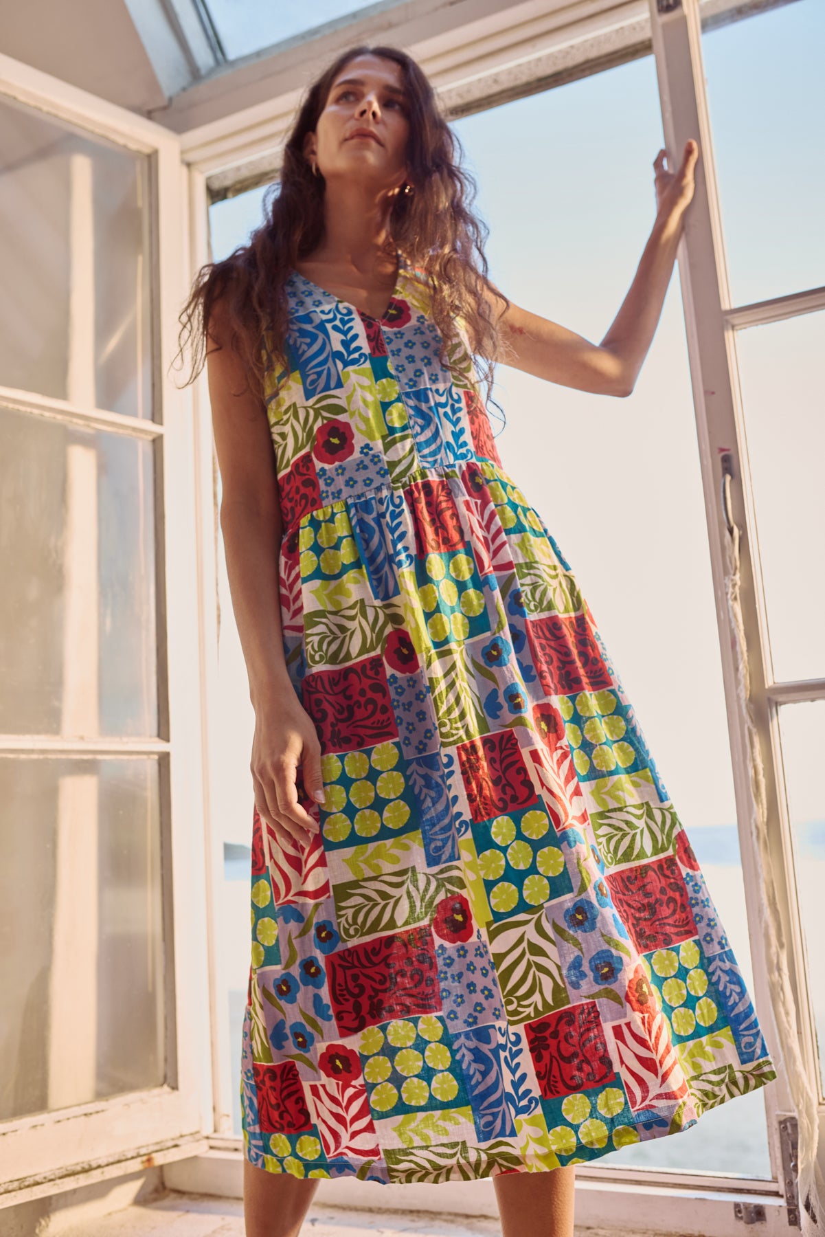 A V-neck dress you'll find so many ways to layer and love. Darts on the bodice create a semi-fitted, but not clinging, shape, while evenly spaced gathers at the waist give a lovely, subtle volume. And we love a dress with pockets...