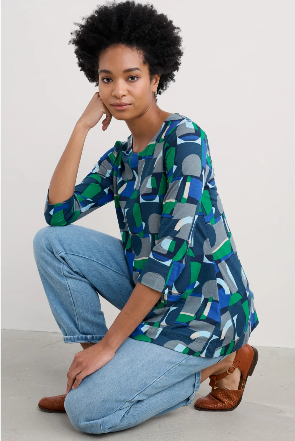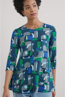 A top in a gorgeous, handcrafted print. It's made from a soft-against-the-skin, sustainable blend of organic cotton and TENCEL™ Modal for a silky drape and feel that complements the swing silhouette. Finished with a round neck, 3/4 length sleeves and handy little patch pockets. Perfect for everyday.
