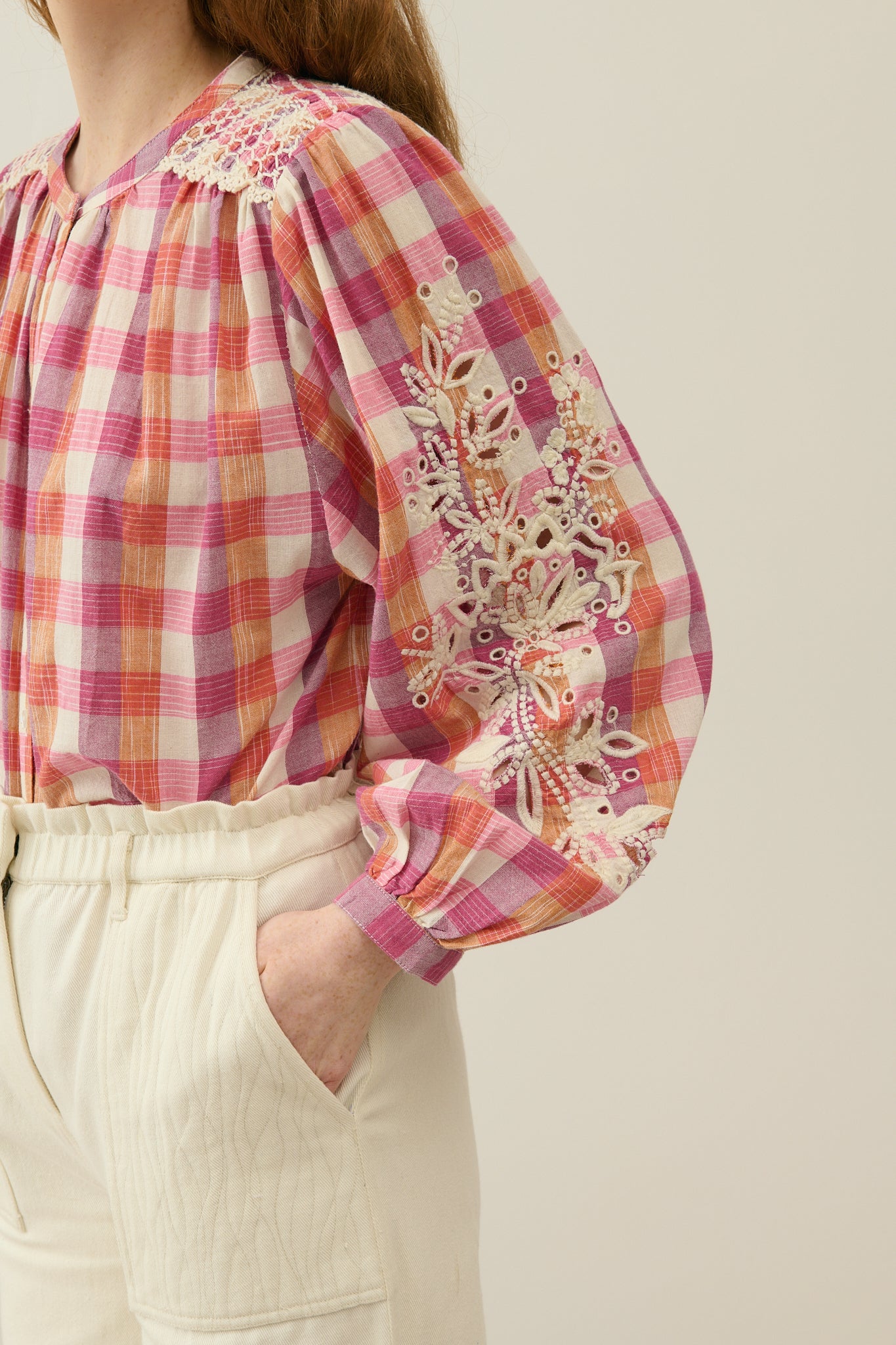 Jeanne Shirt - Cream Sunset Checks