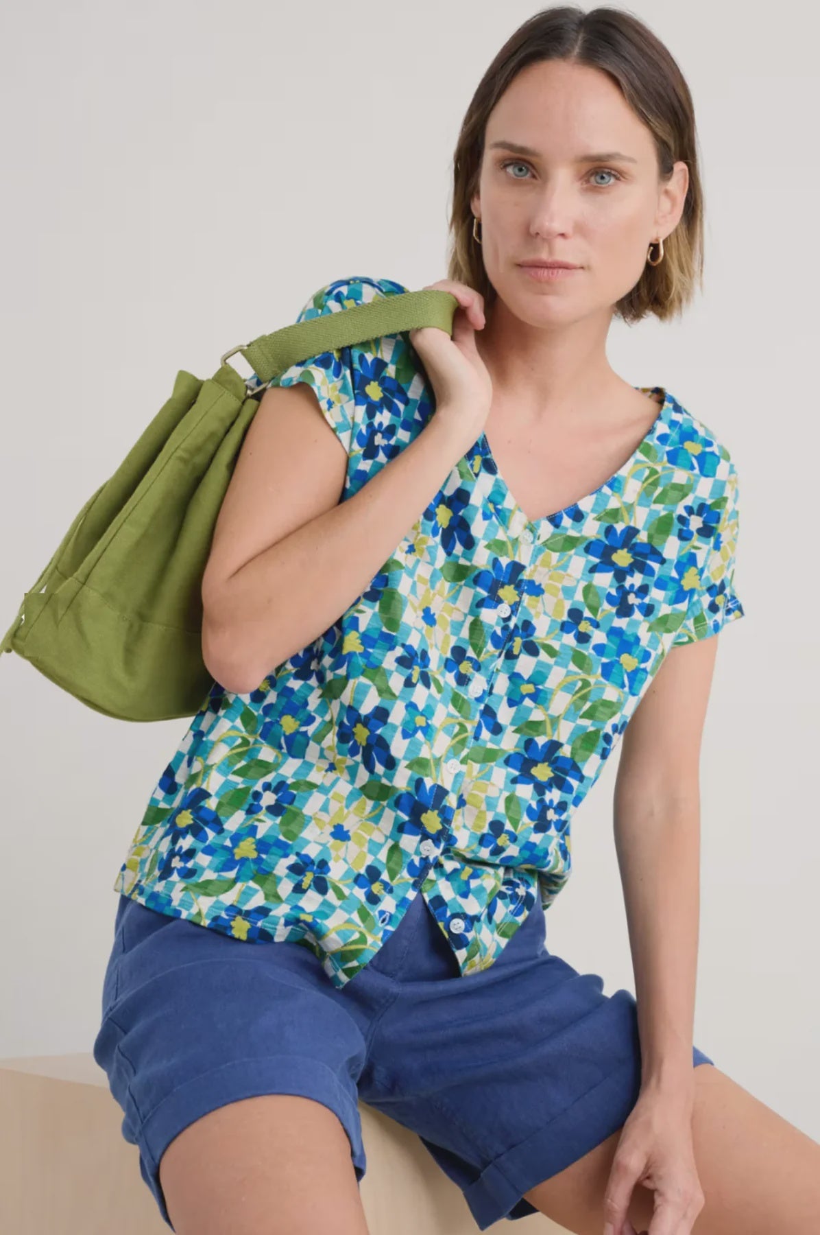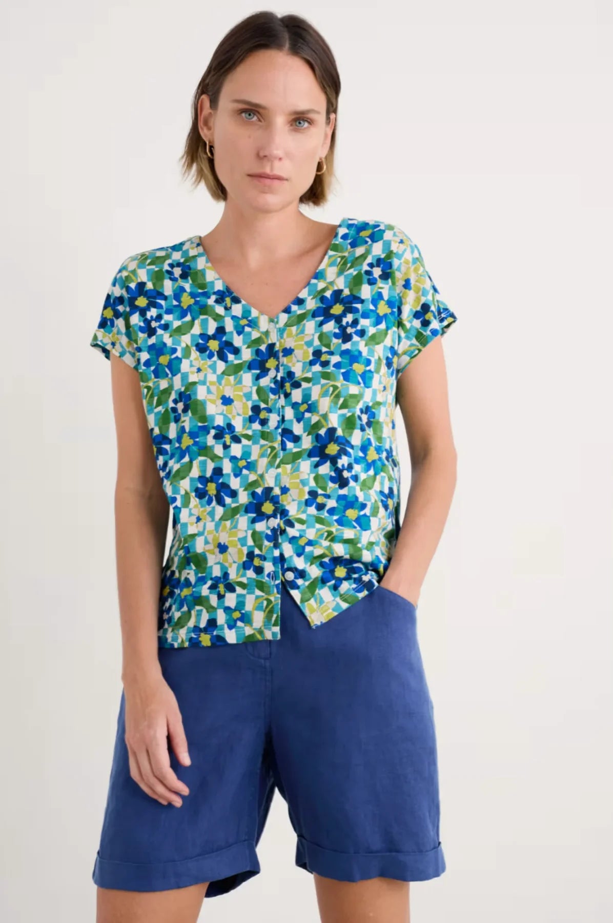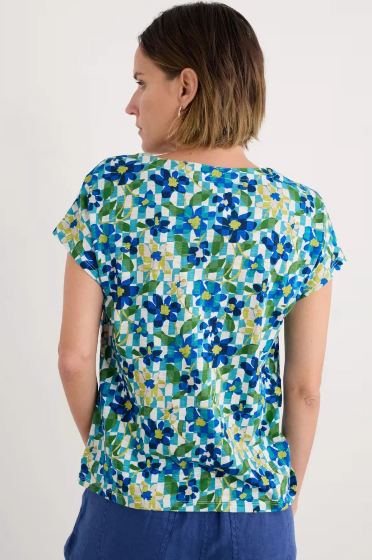 Studio Glass Short Sleeve Top - Picnic Floral Chalk