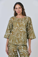 Solve your "nothing to wear" dilemmas with the Andrea Blouse, featuring an elegant round neckline and versatile three-quarter length sleeves with a subtle flare at the cuffs.