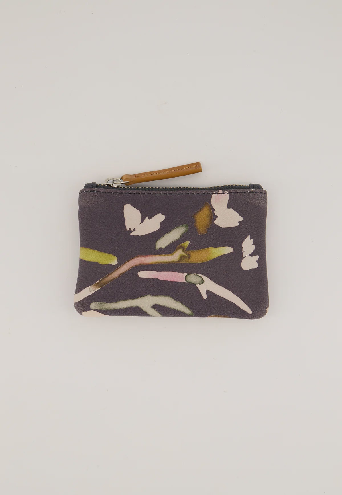 A small digitally printed leather front and contrasting single colour back, with zip fastening and organic cotton lining.