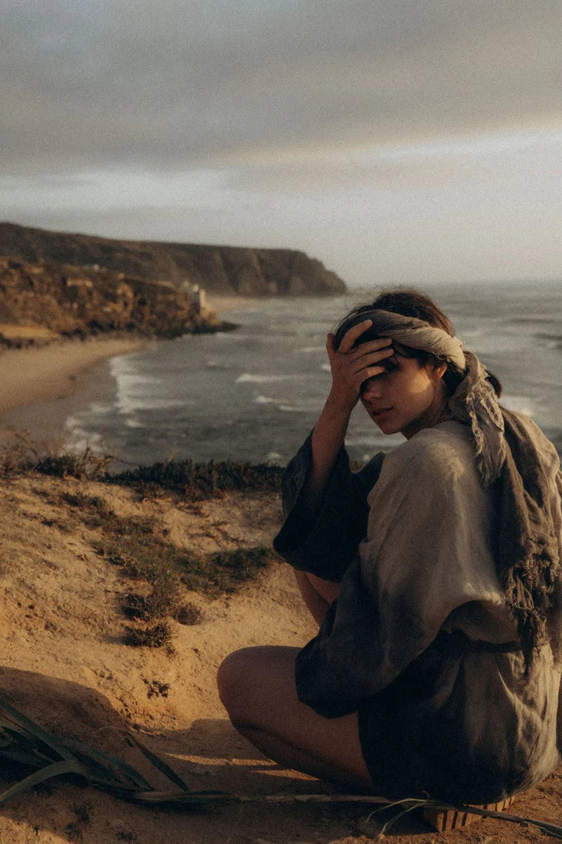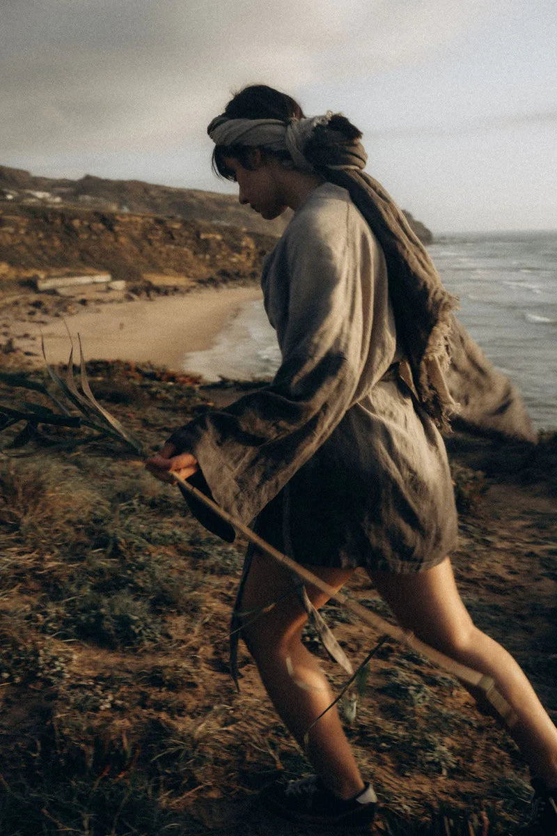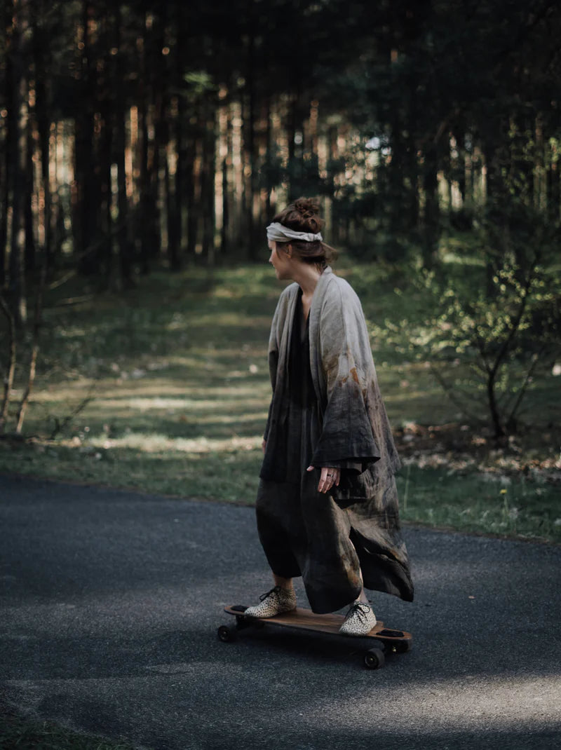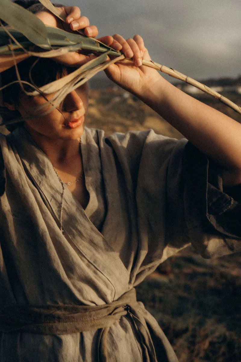 The Danuta Kimono is plant dyed - in the option of cool, or warm tones.
