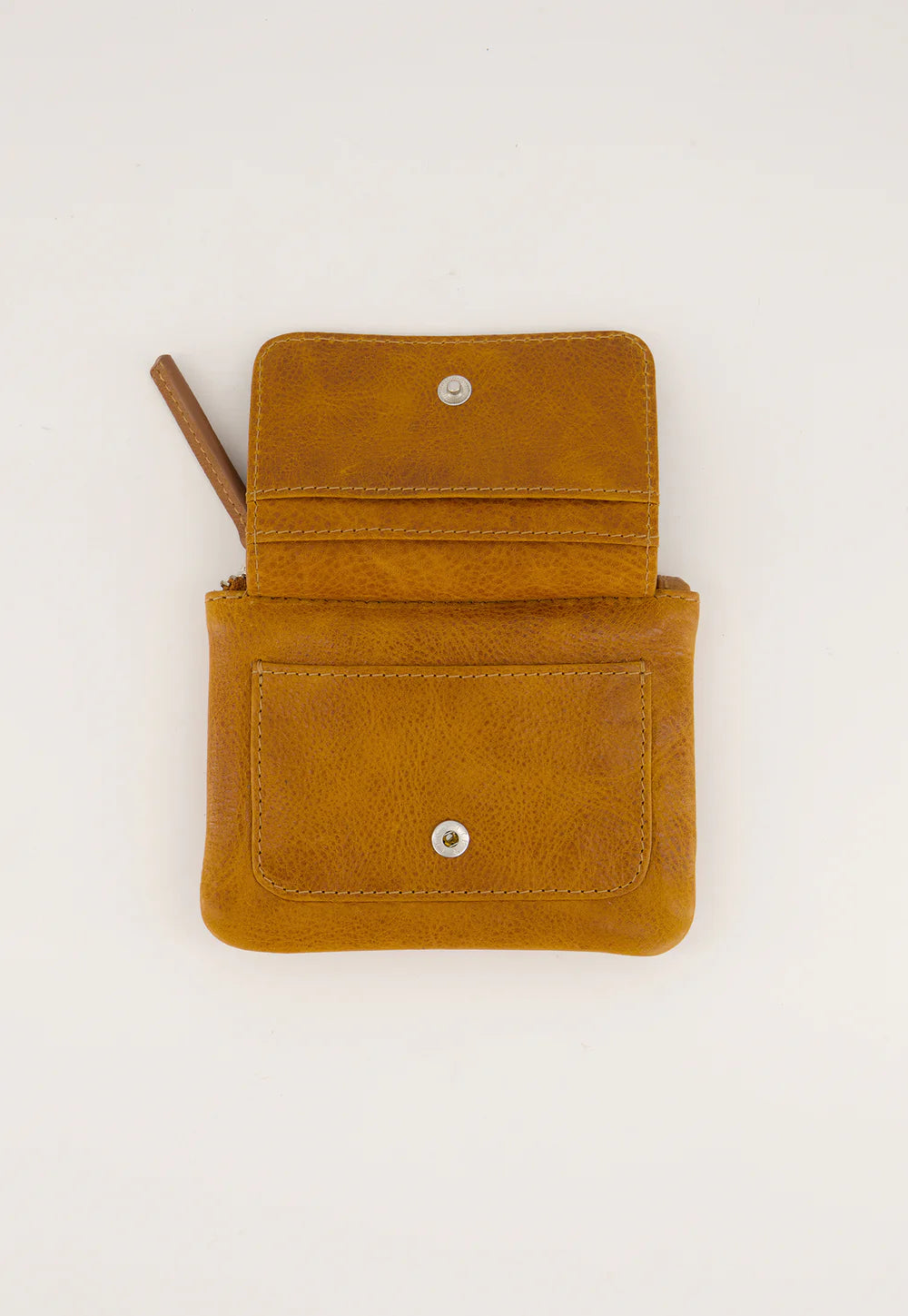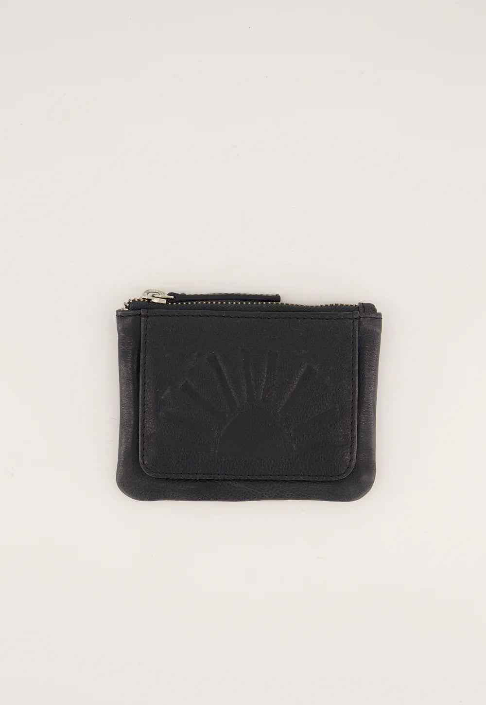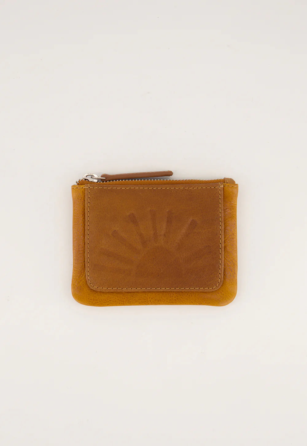 Small wallet shape with zip pocket and card flap, all small enough to fit in your pocket.