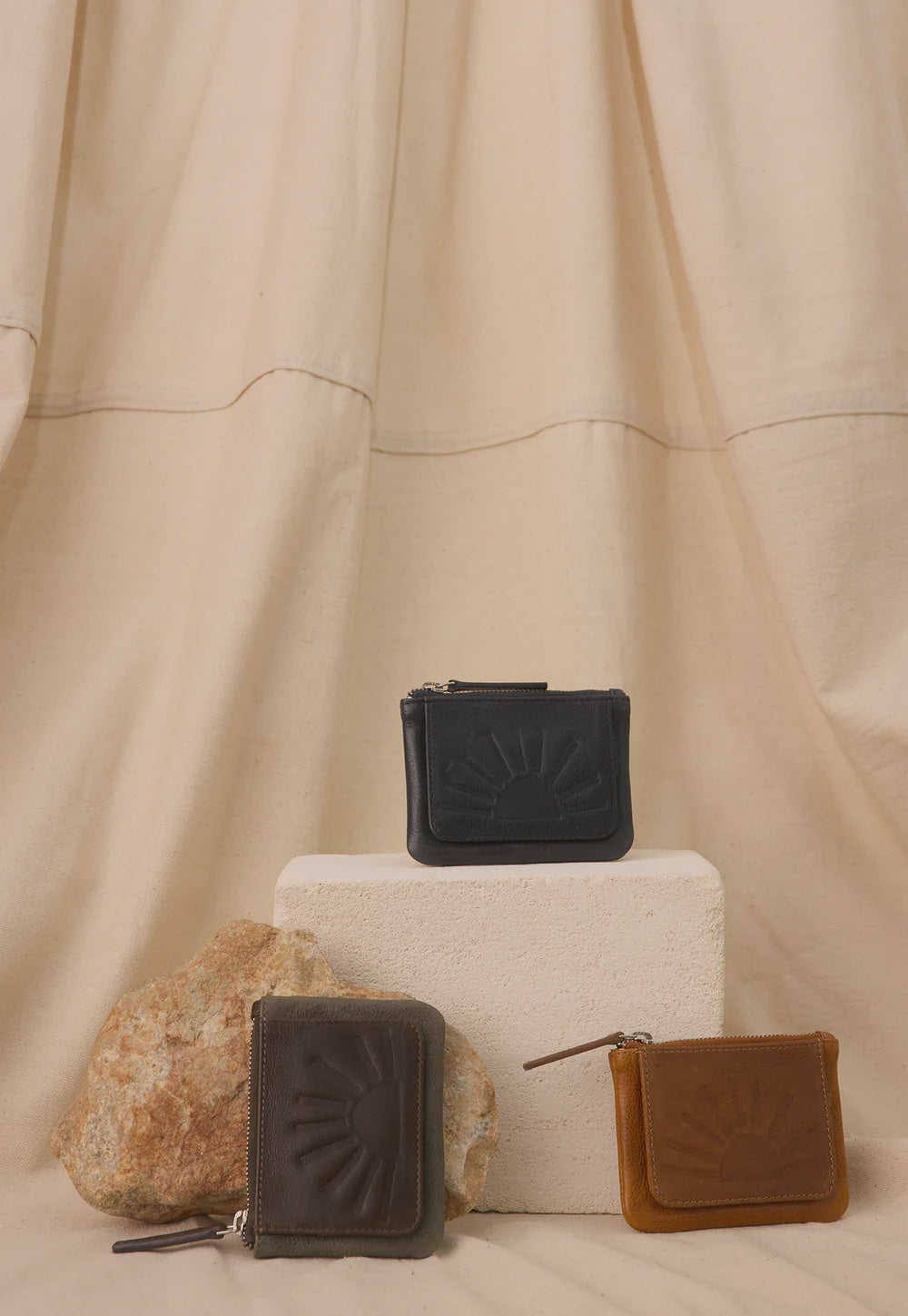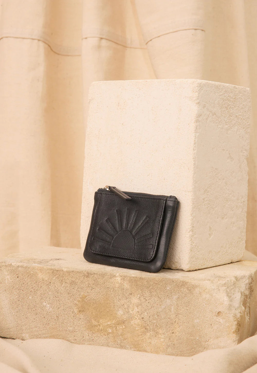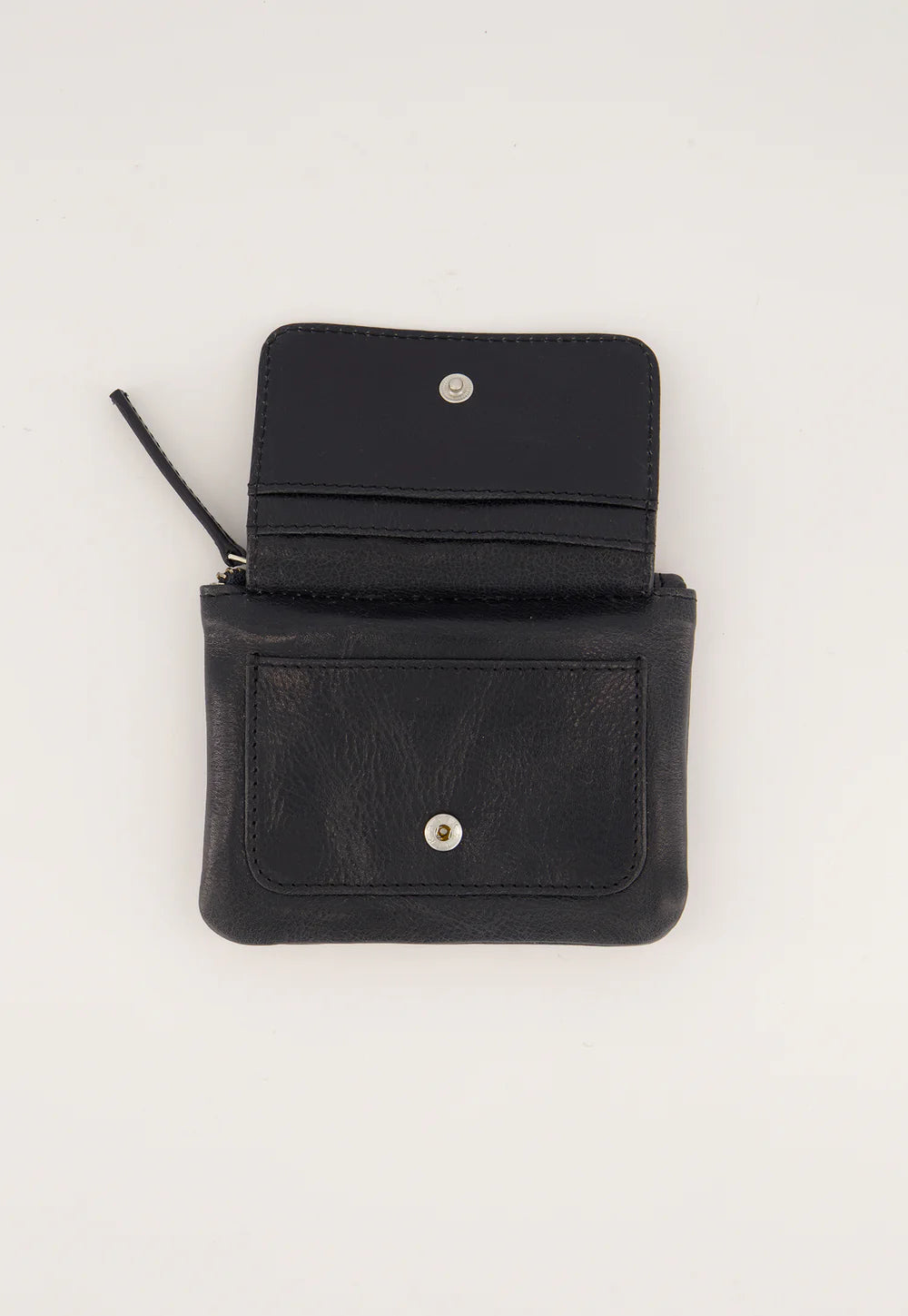 Small wallet shape with zip pocket and card flap, all small enough to fit in your pocket.