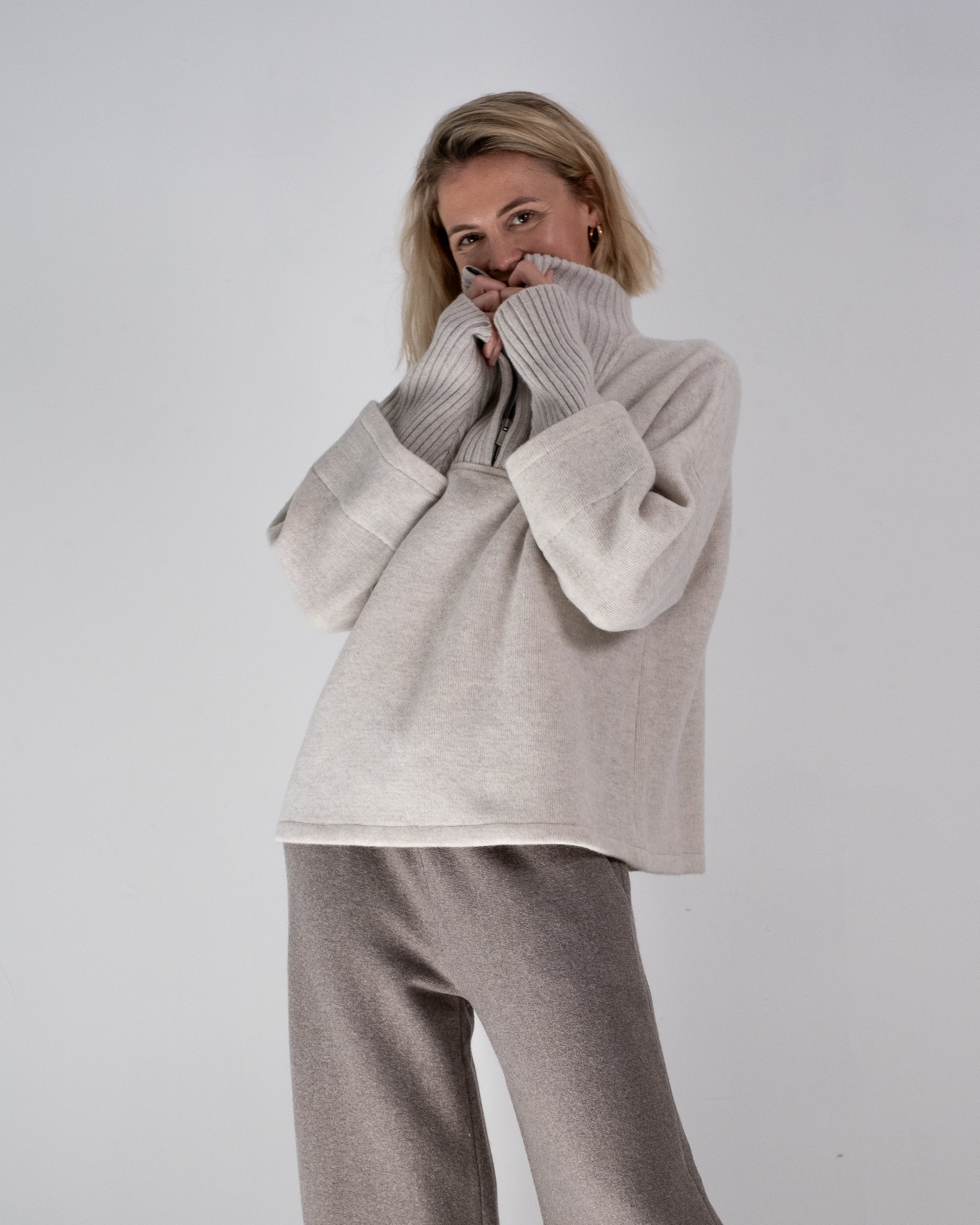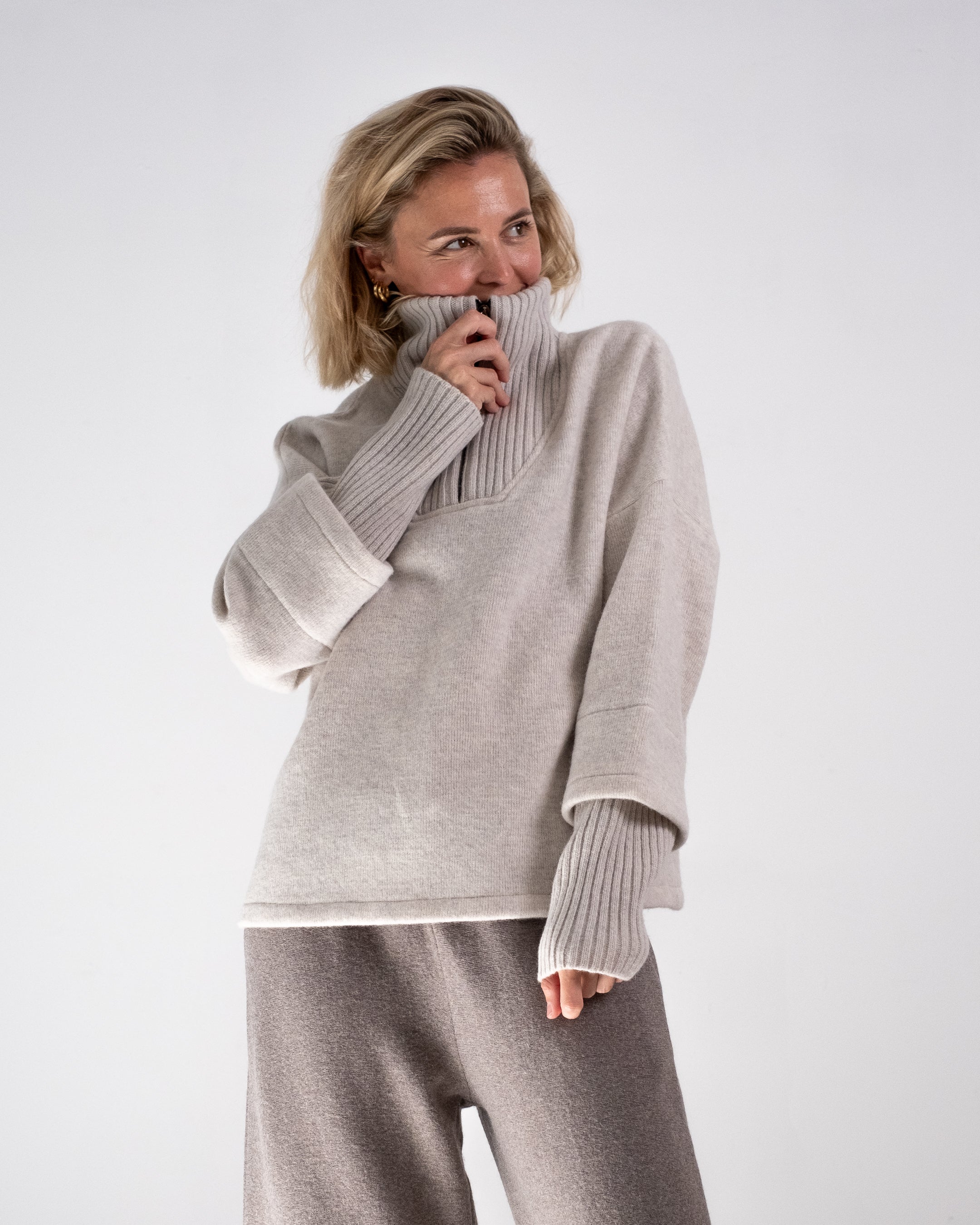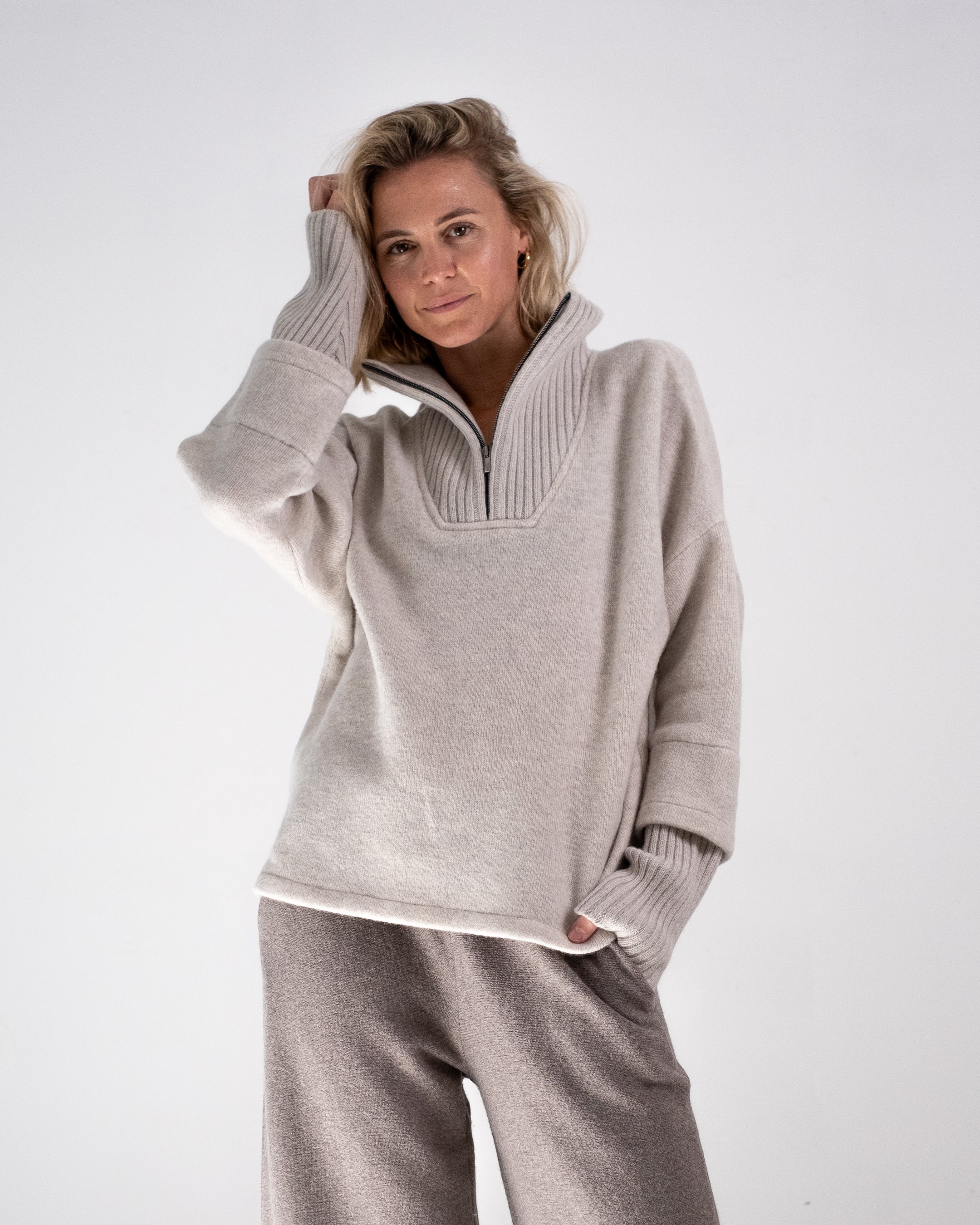 The comfortable NAEMA sweater is made from a lambswool-cotton blend and is therefore the ideal companion for cooler days. With the lambswool knitted cuffs and the Troyer collar with zip, NAEMA also looks casual and modern and can be wonderfully combined with a wide variety of styles. The sweater is knitted and milled in the Tyrolean Alps in Wörgl!