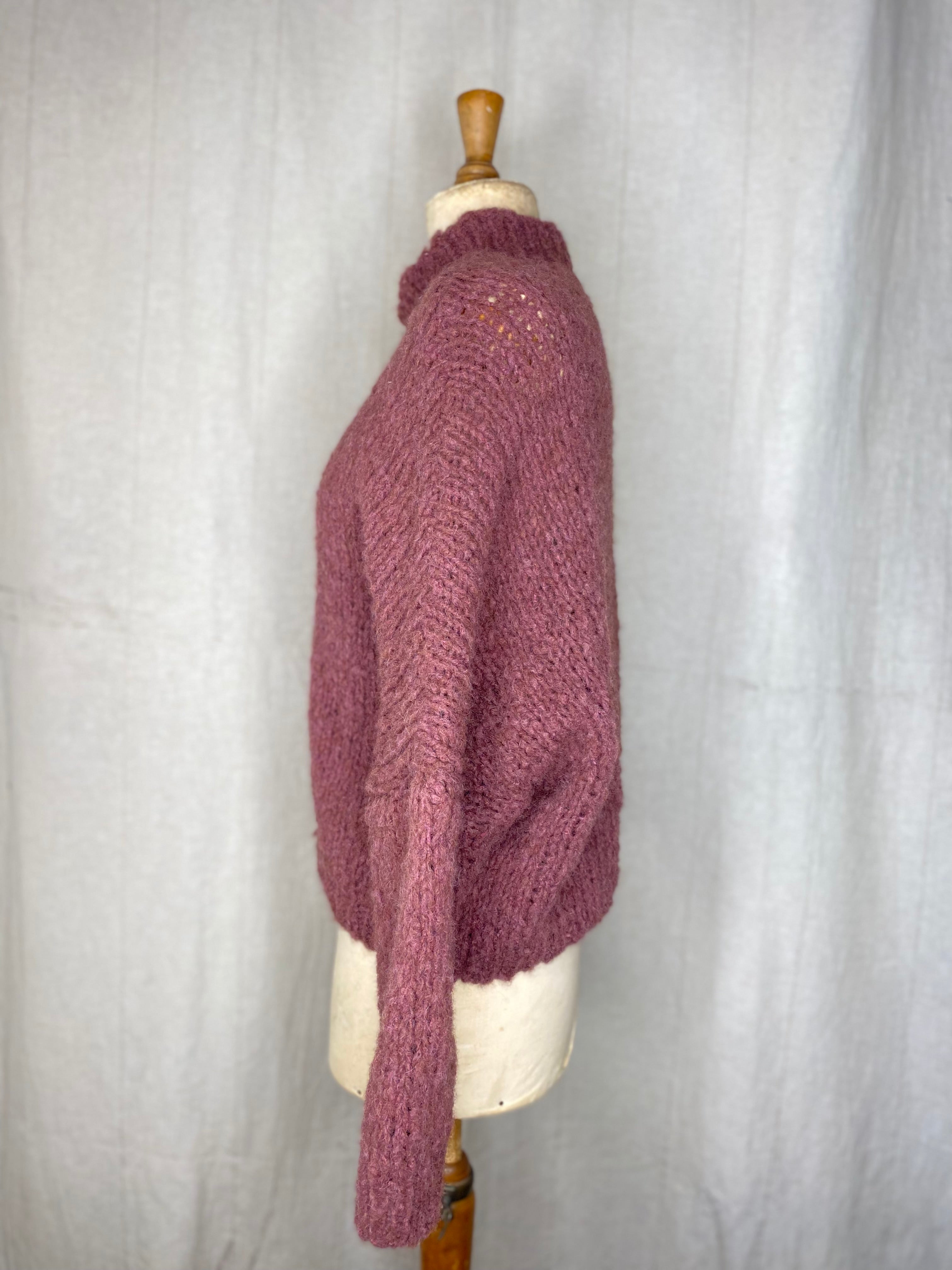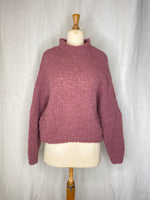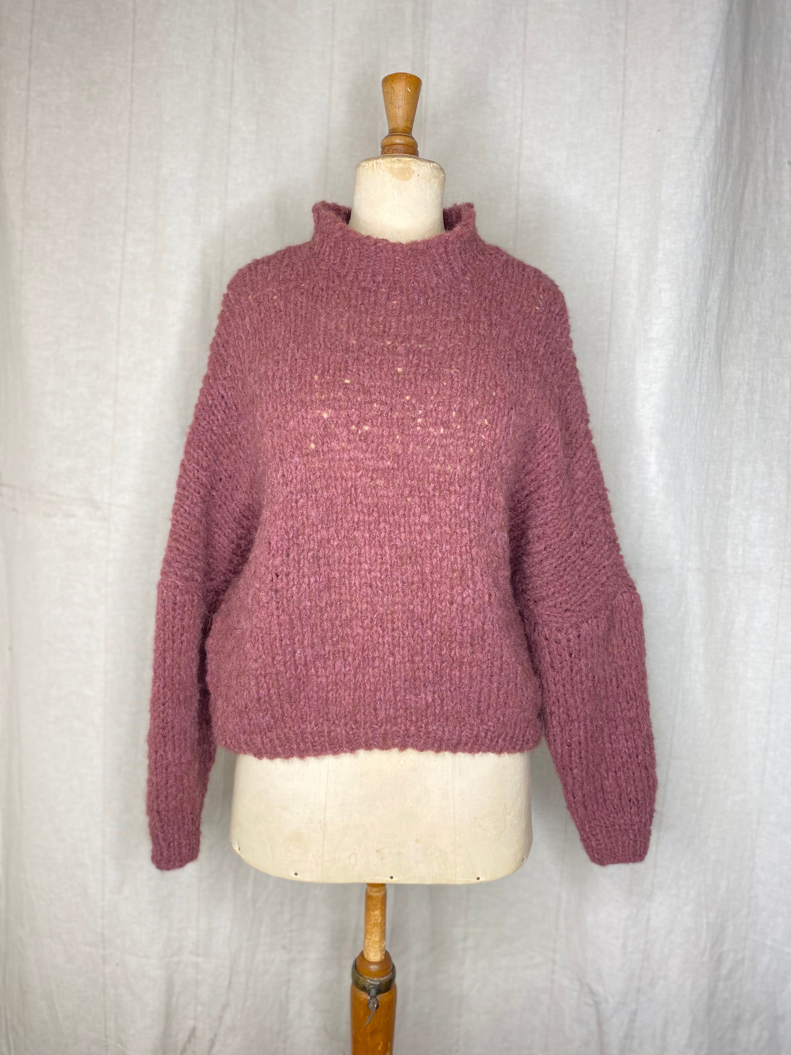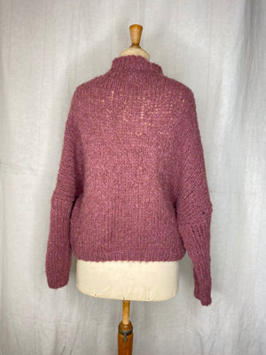 Alpaca Batwing Crew Neck Hand Knit Sweater - Faded Raspberry