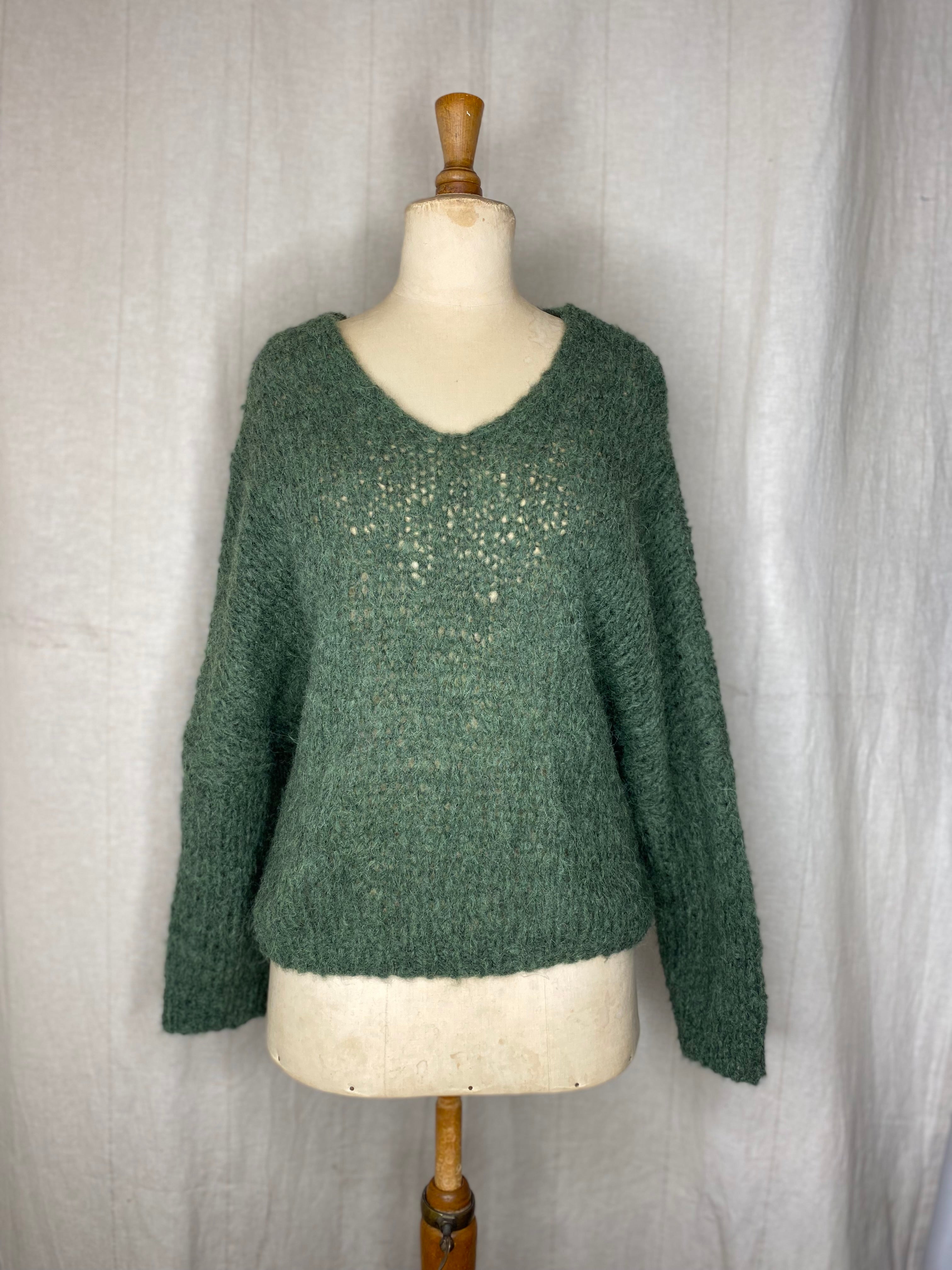 Alpaca Batwing V Neck Hand Knit Jumper - Moss