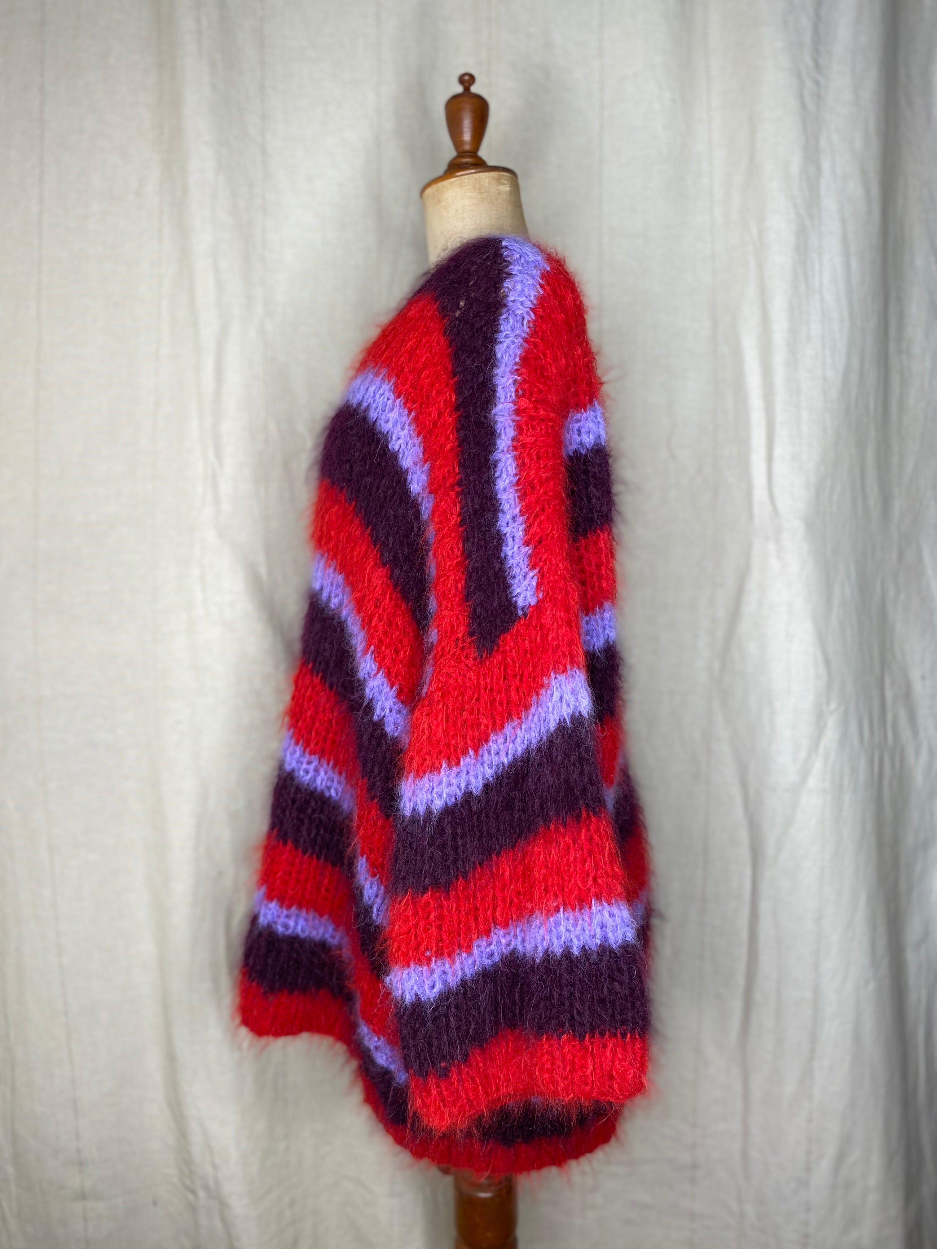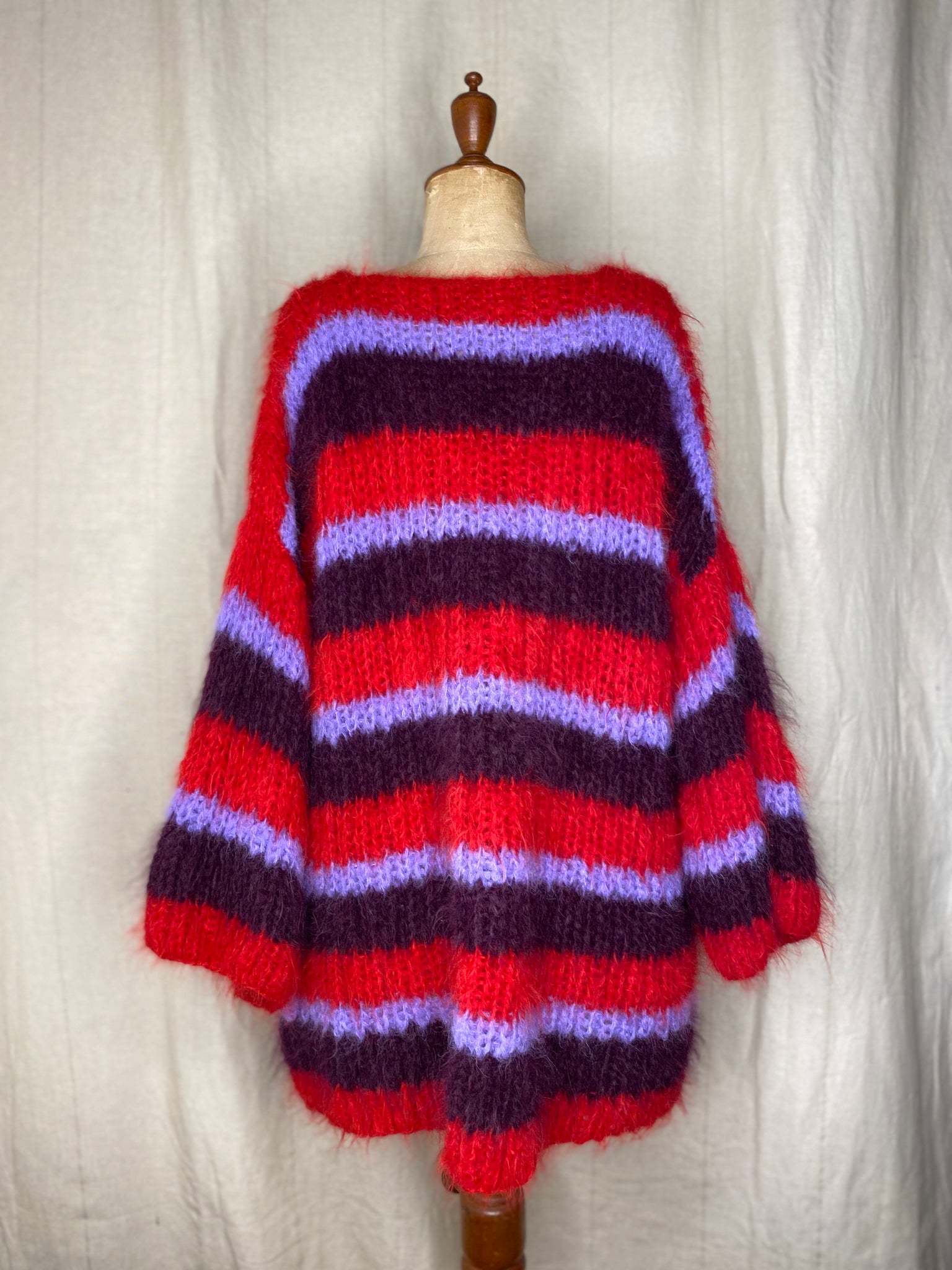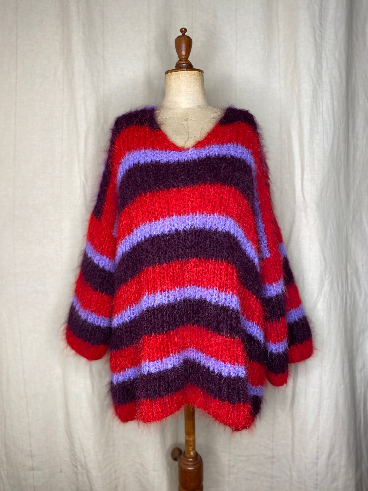 Alpaca Brioche Handknit Jumper - Violet Stripe