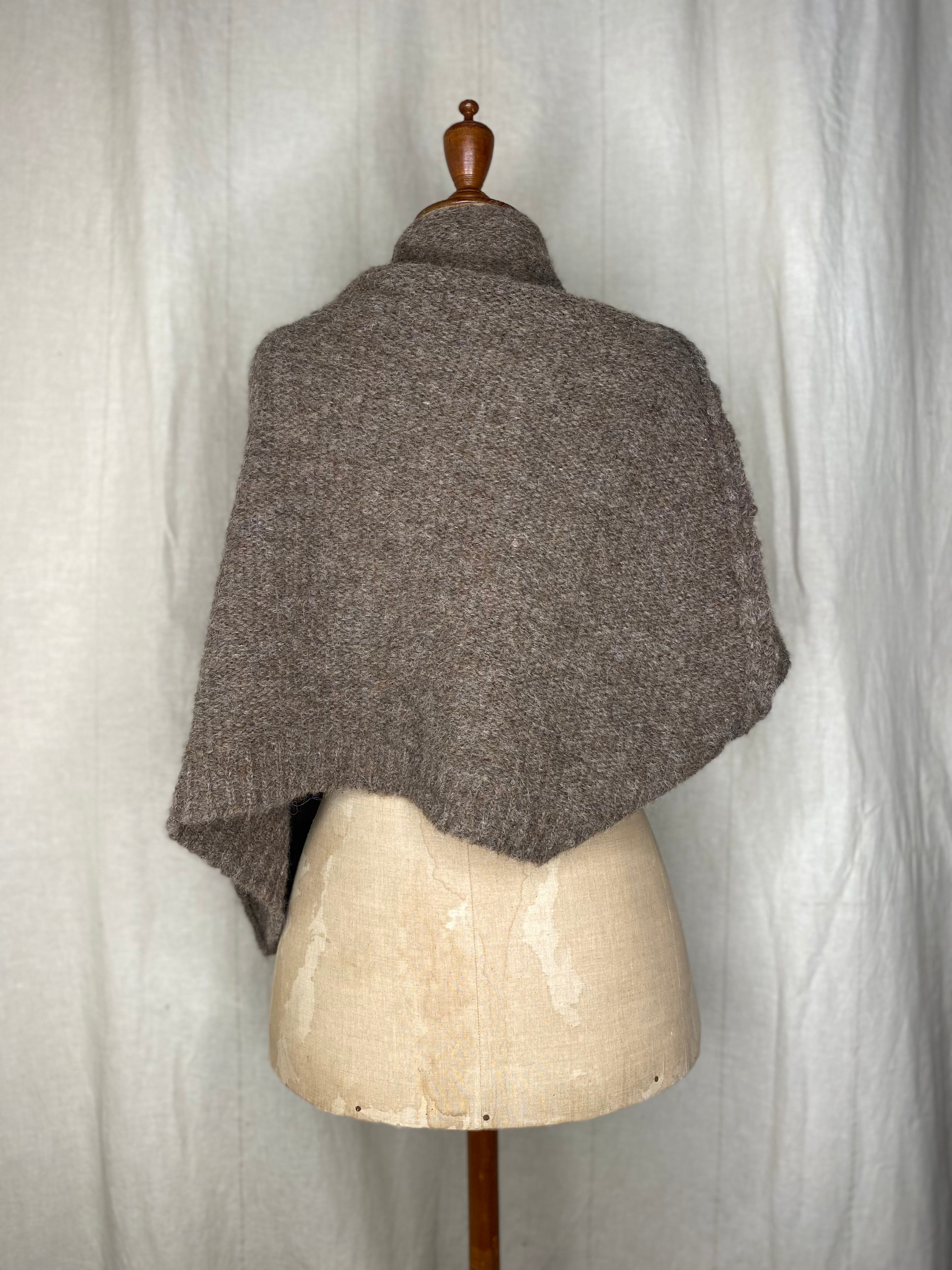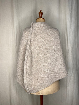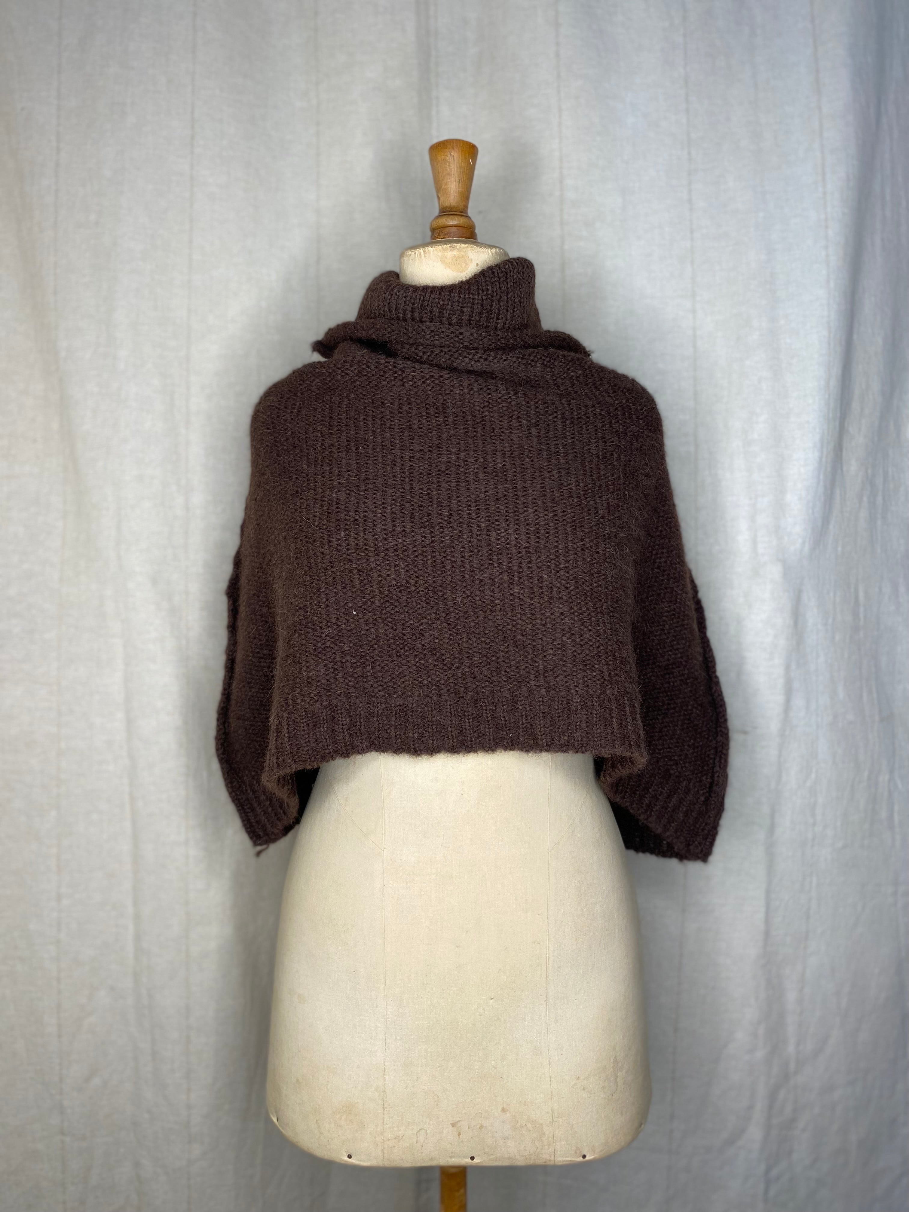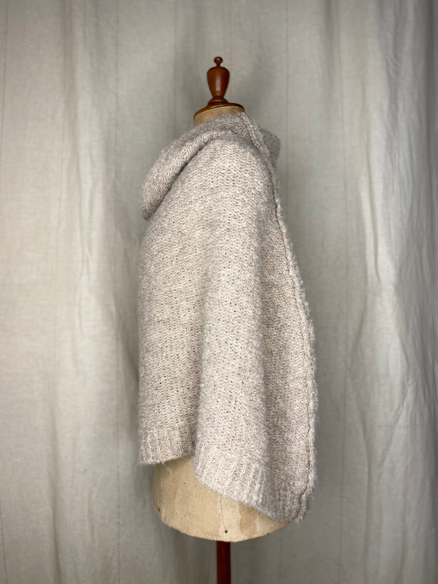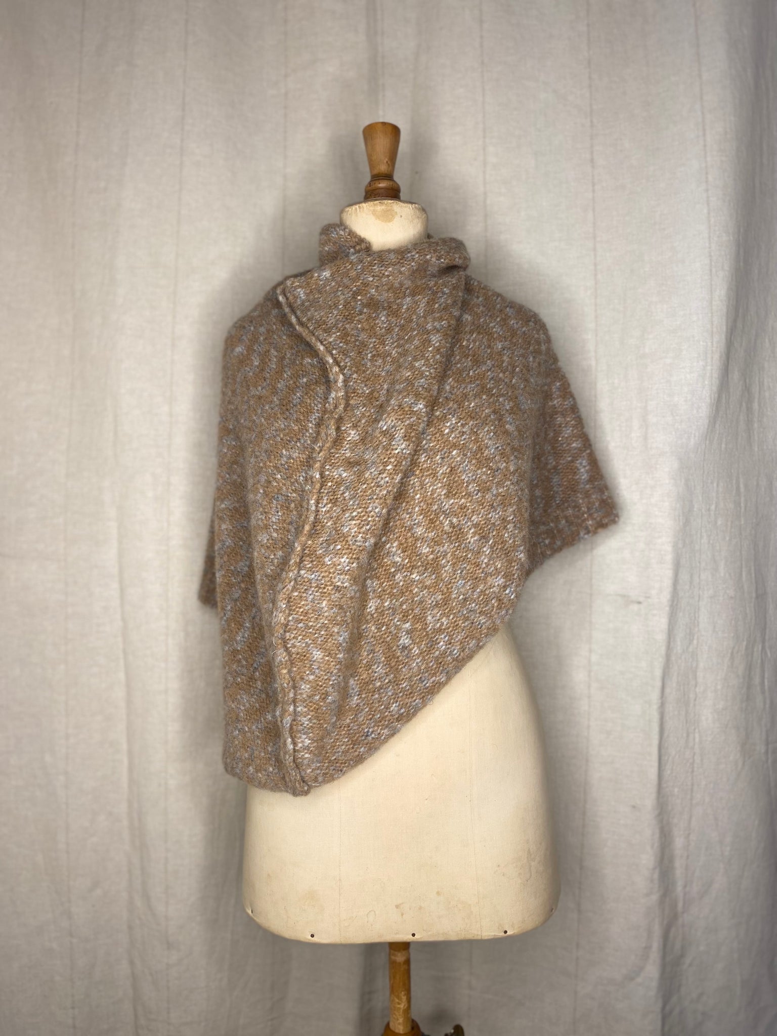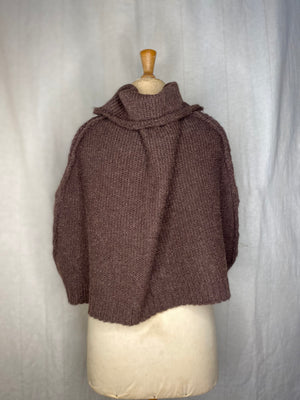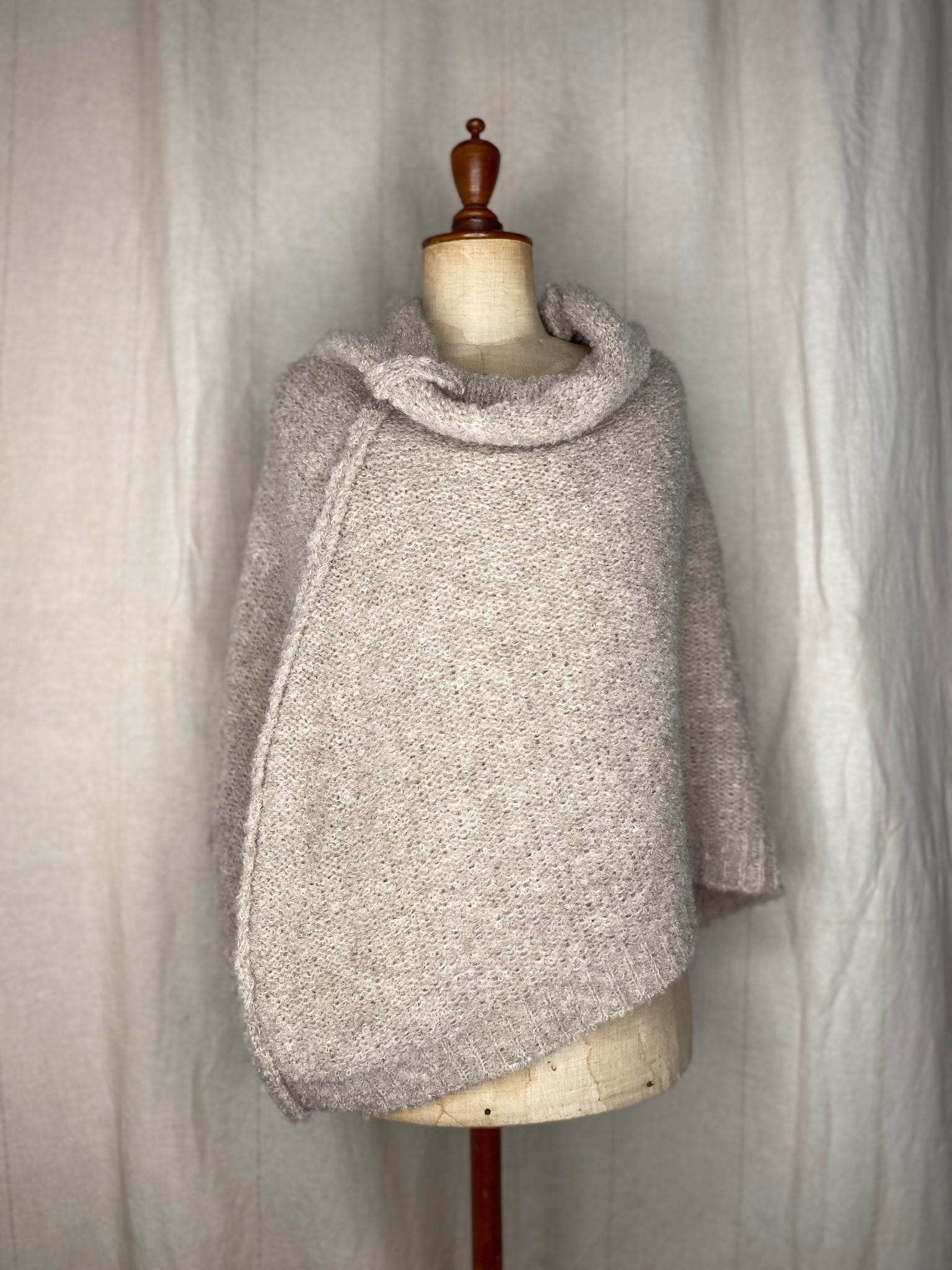 the Amano alpaca capelet has exposed seams and a loose funnel neck