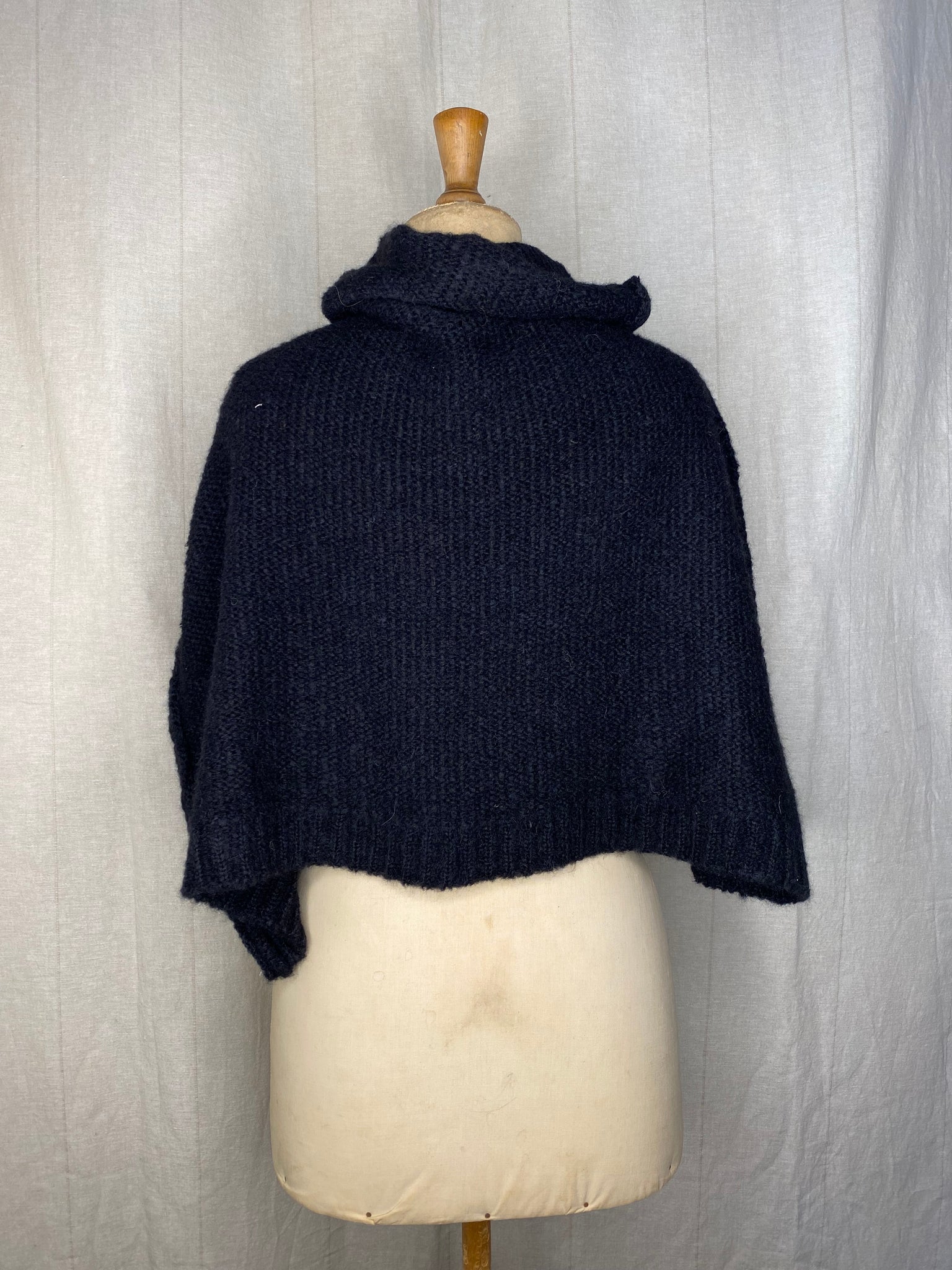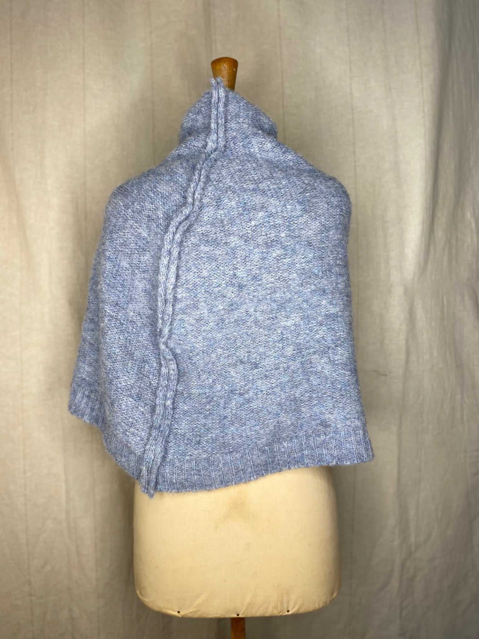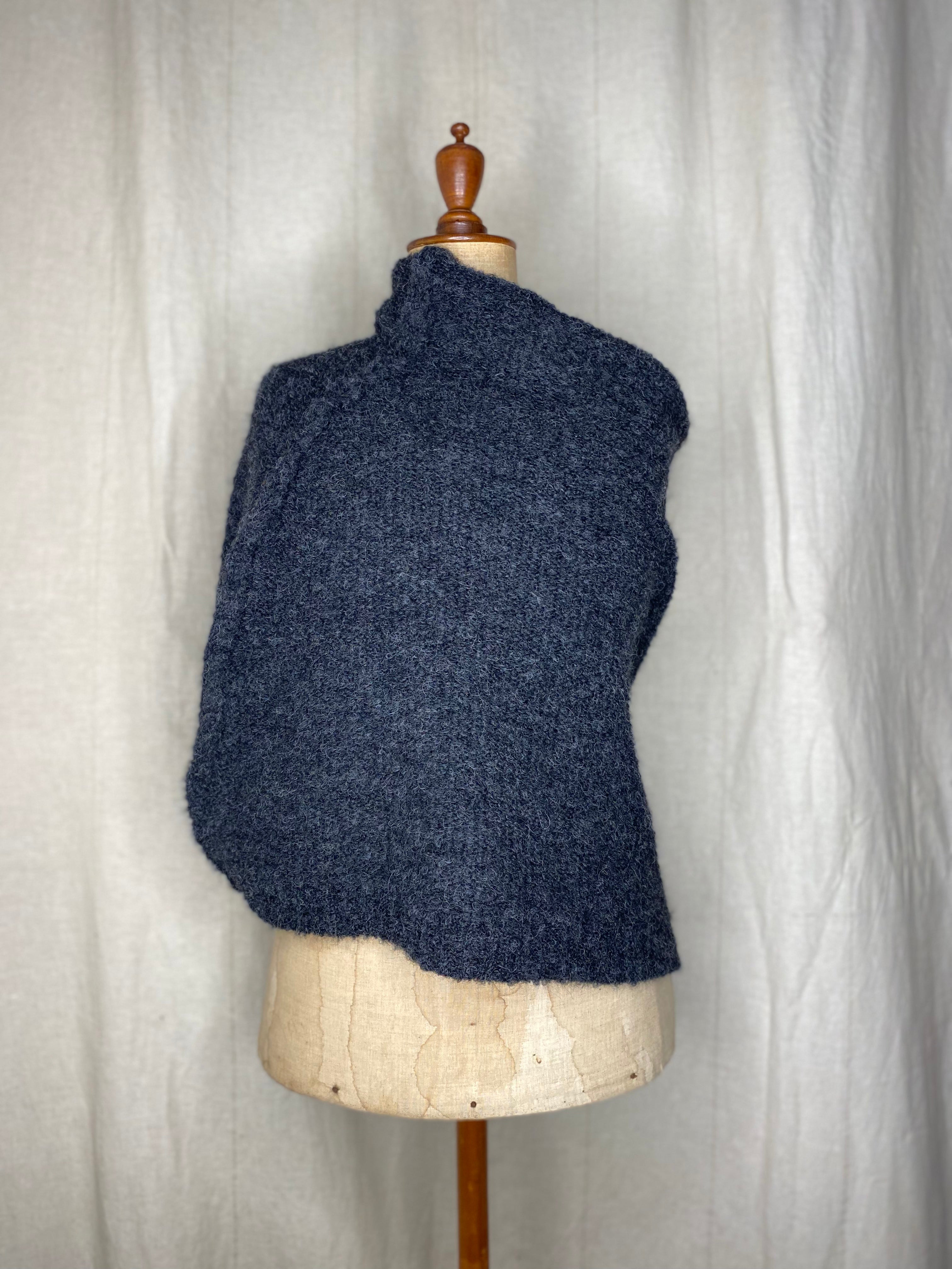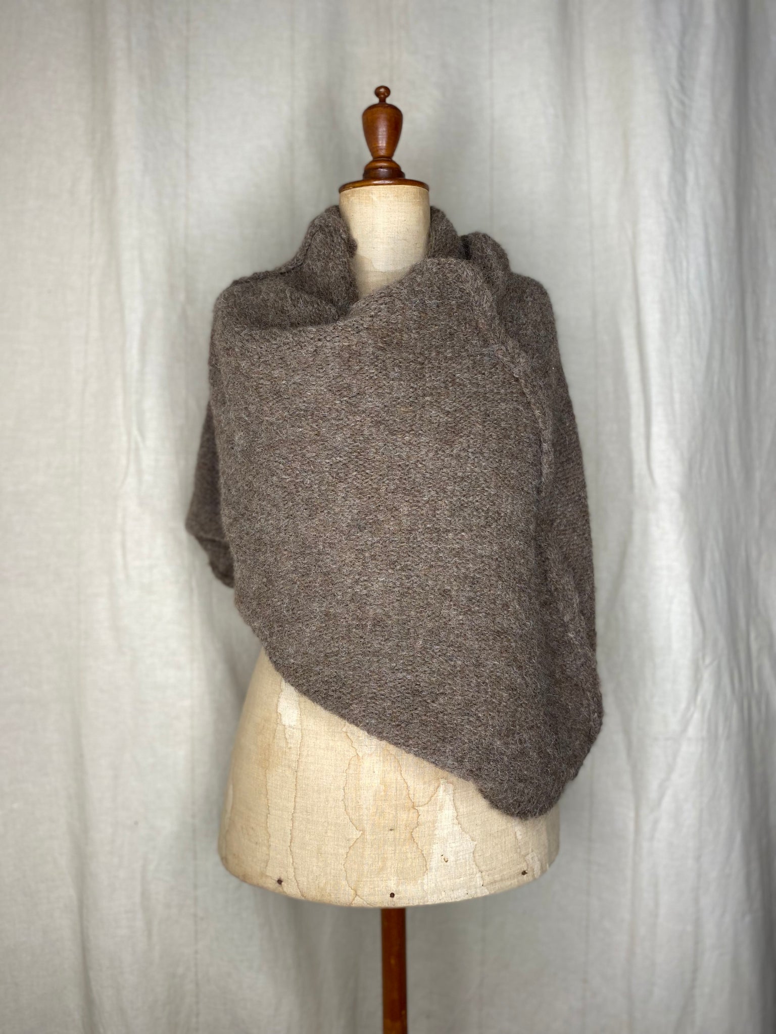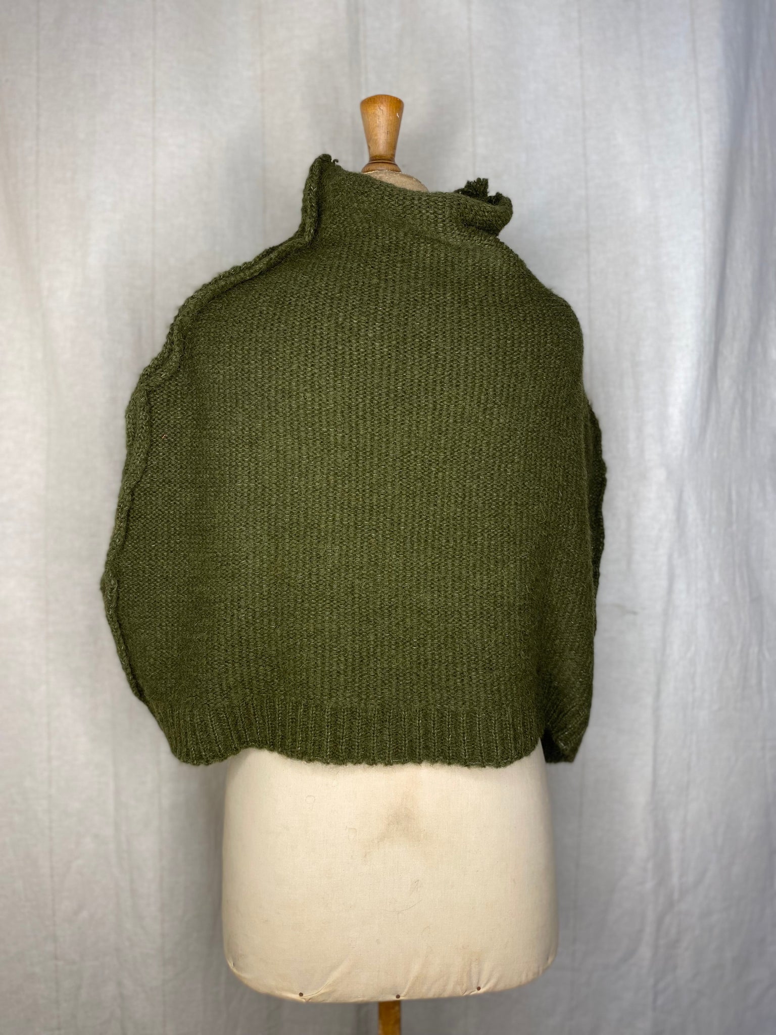 the Amano alpaca capelet has exposed seams and a loose funnel neck