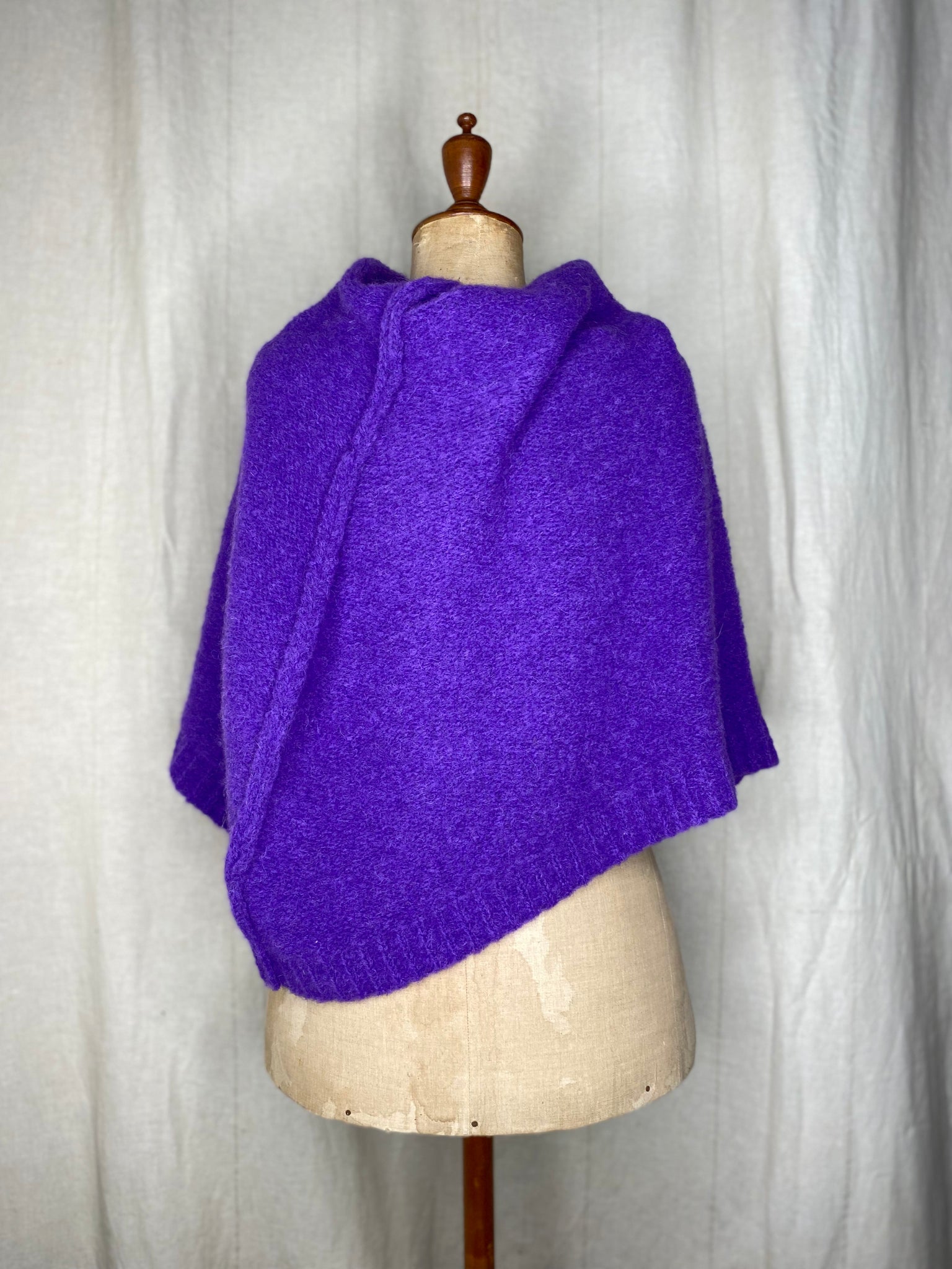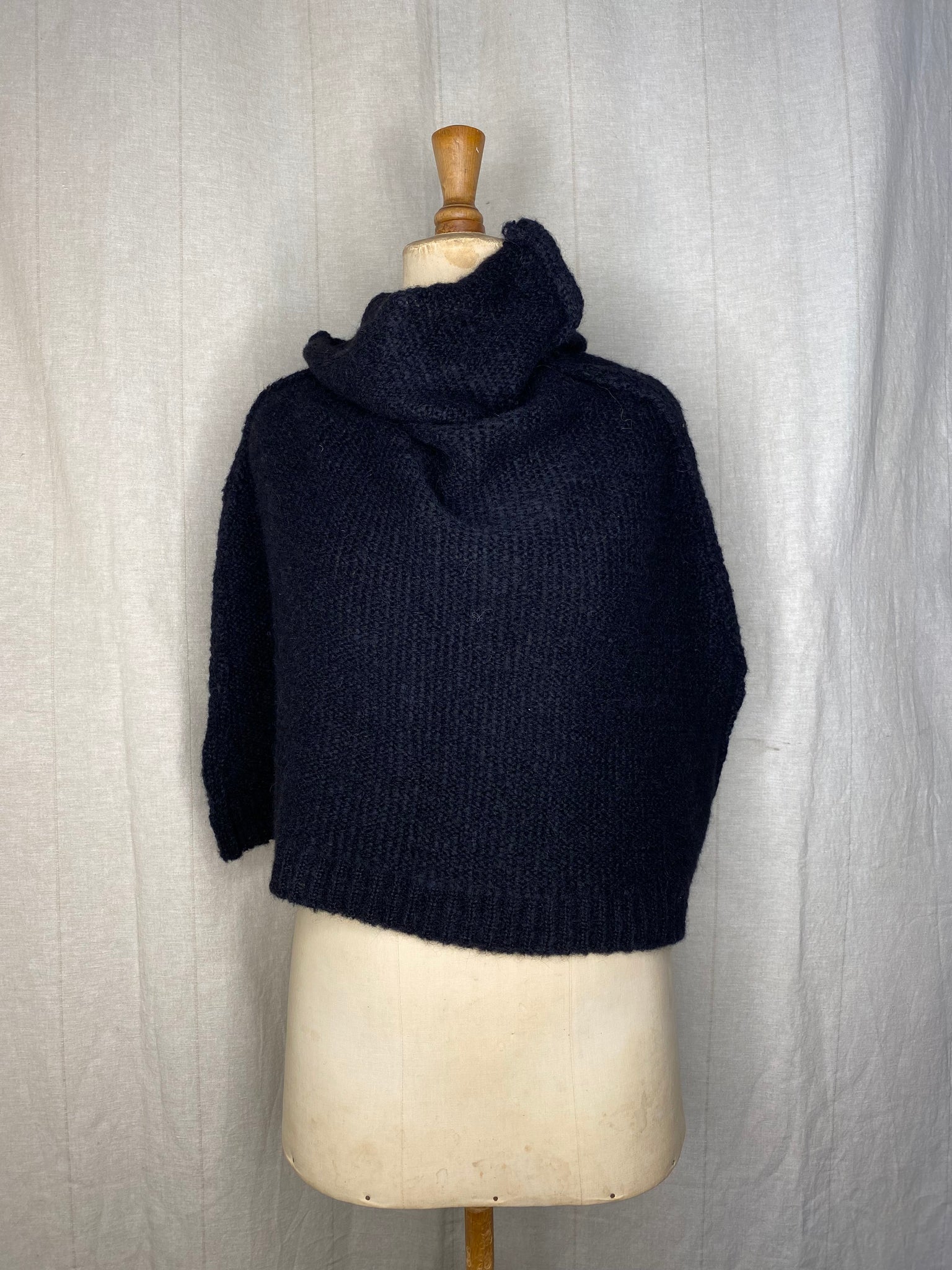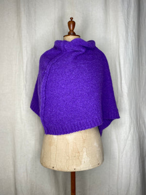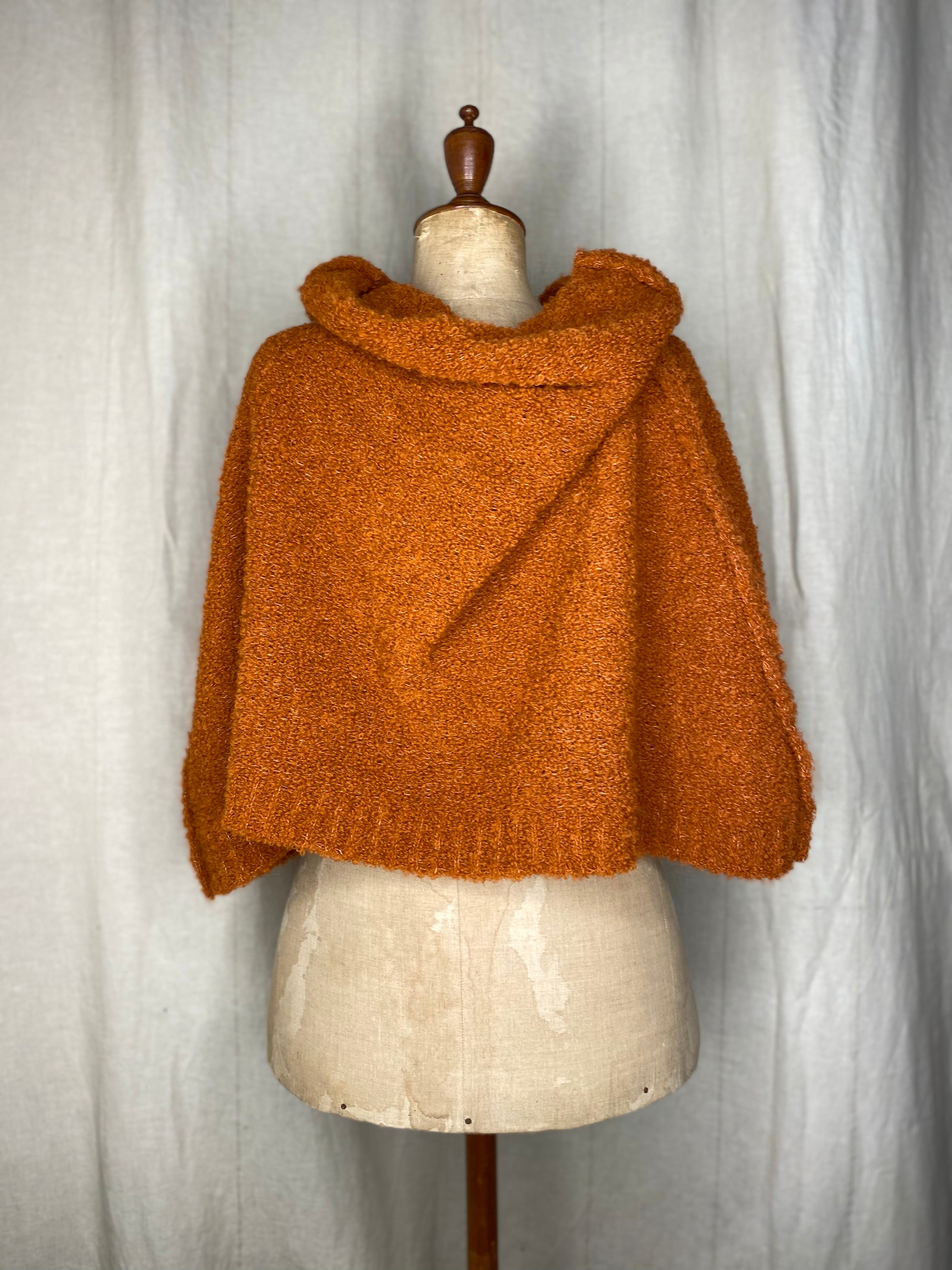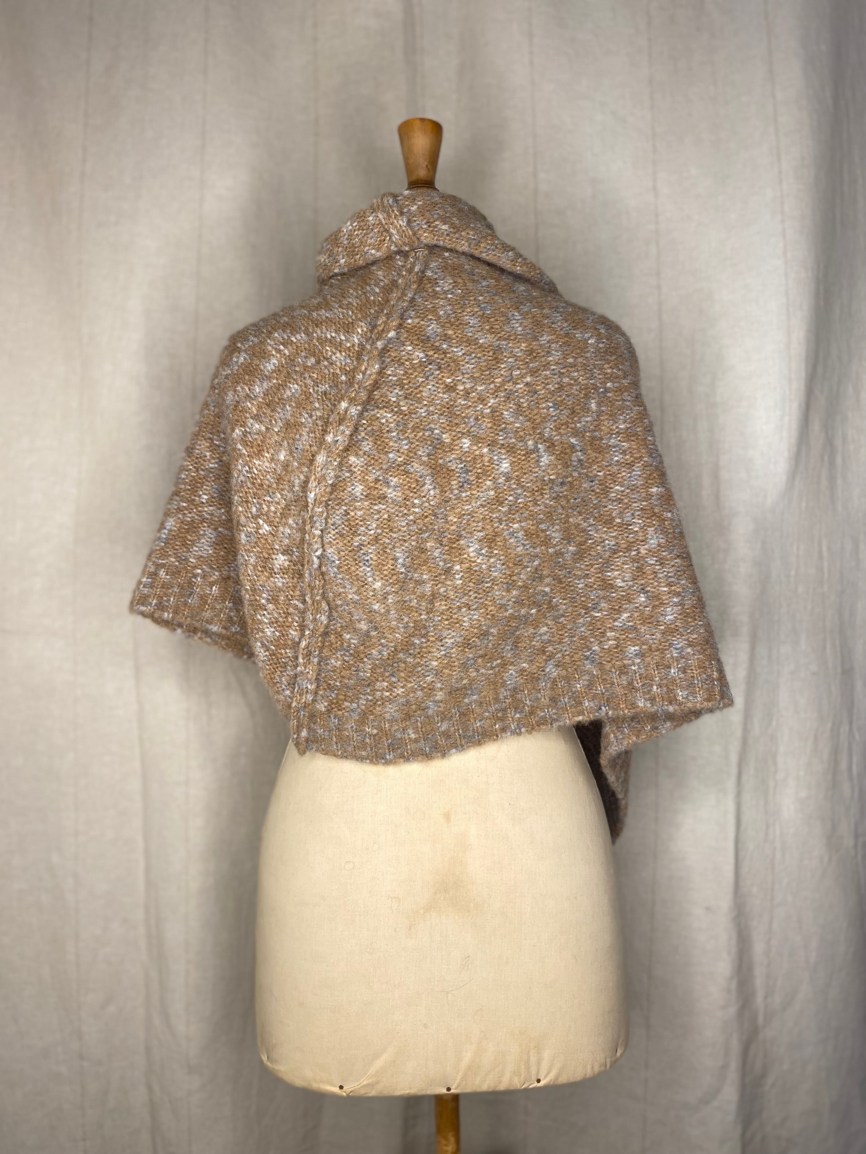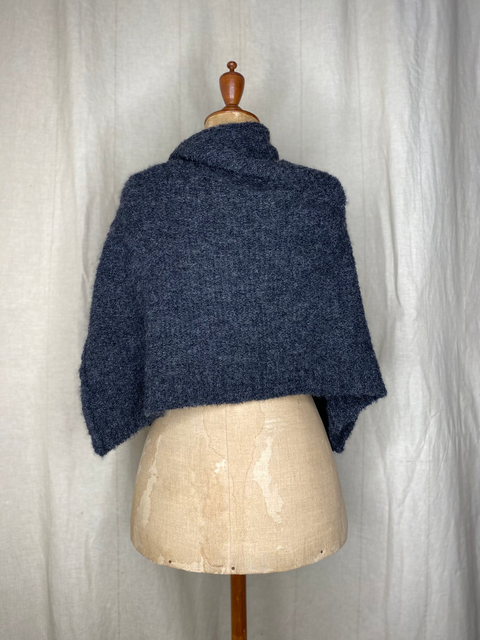 the Amano alpaca capelet has exposed seams and a loose funnel neck