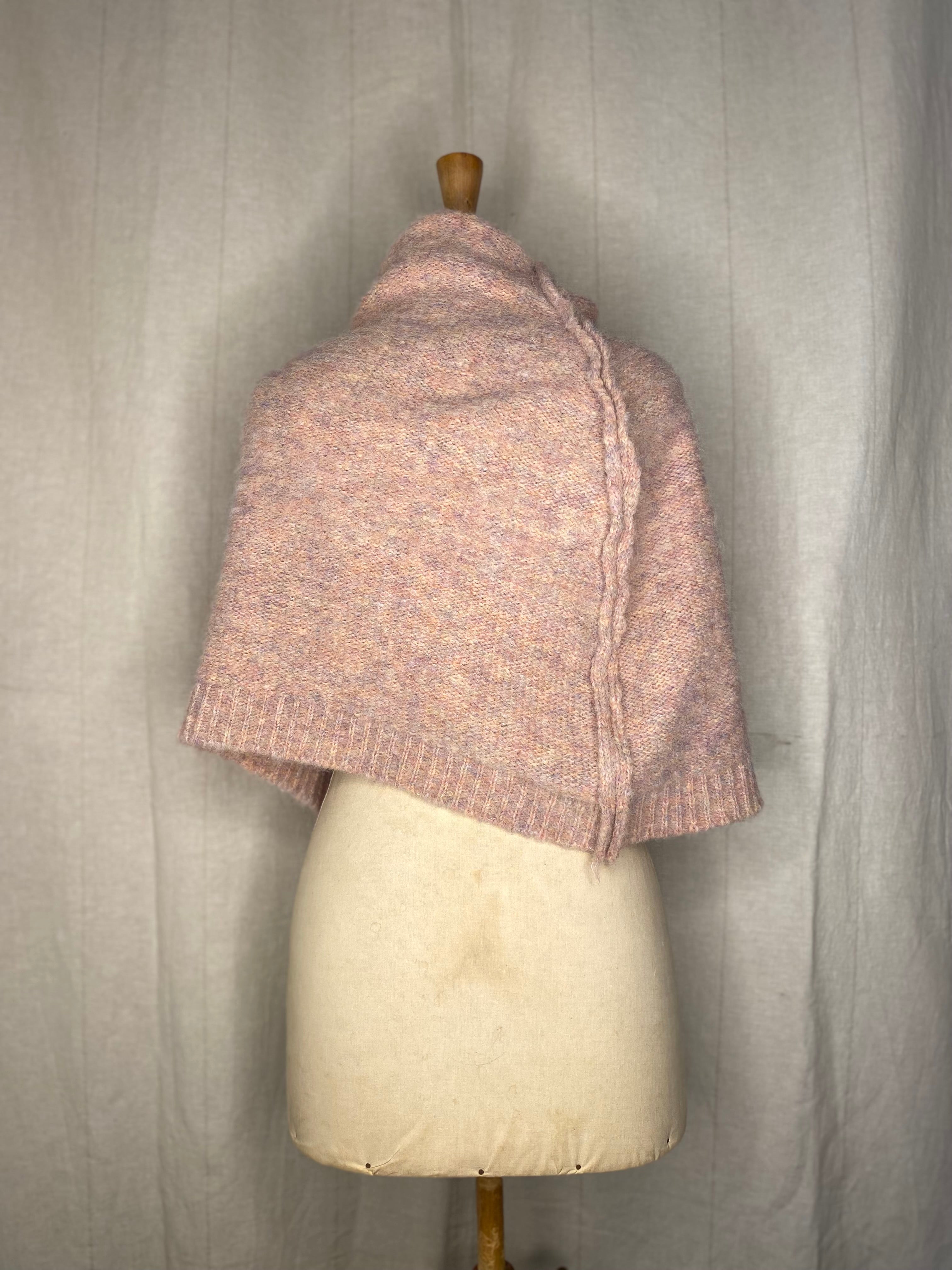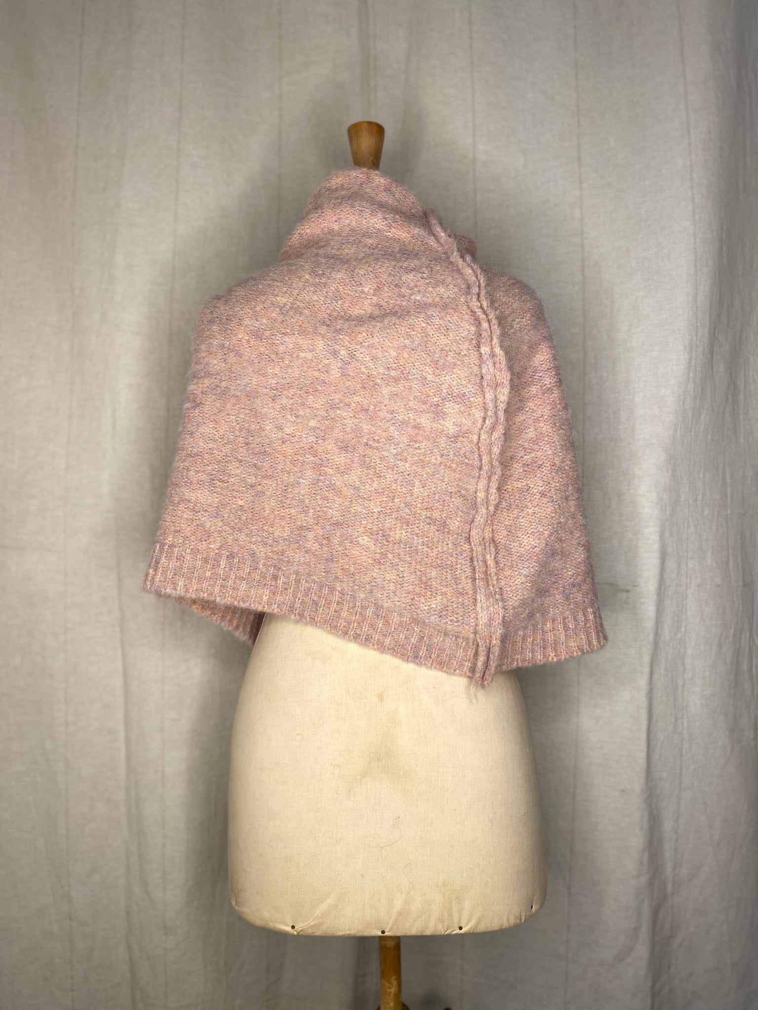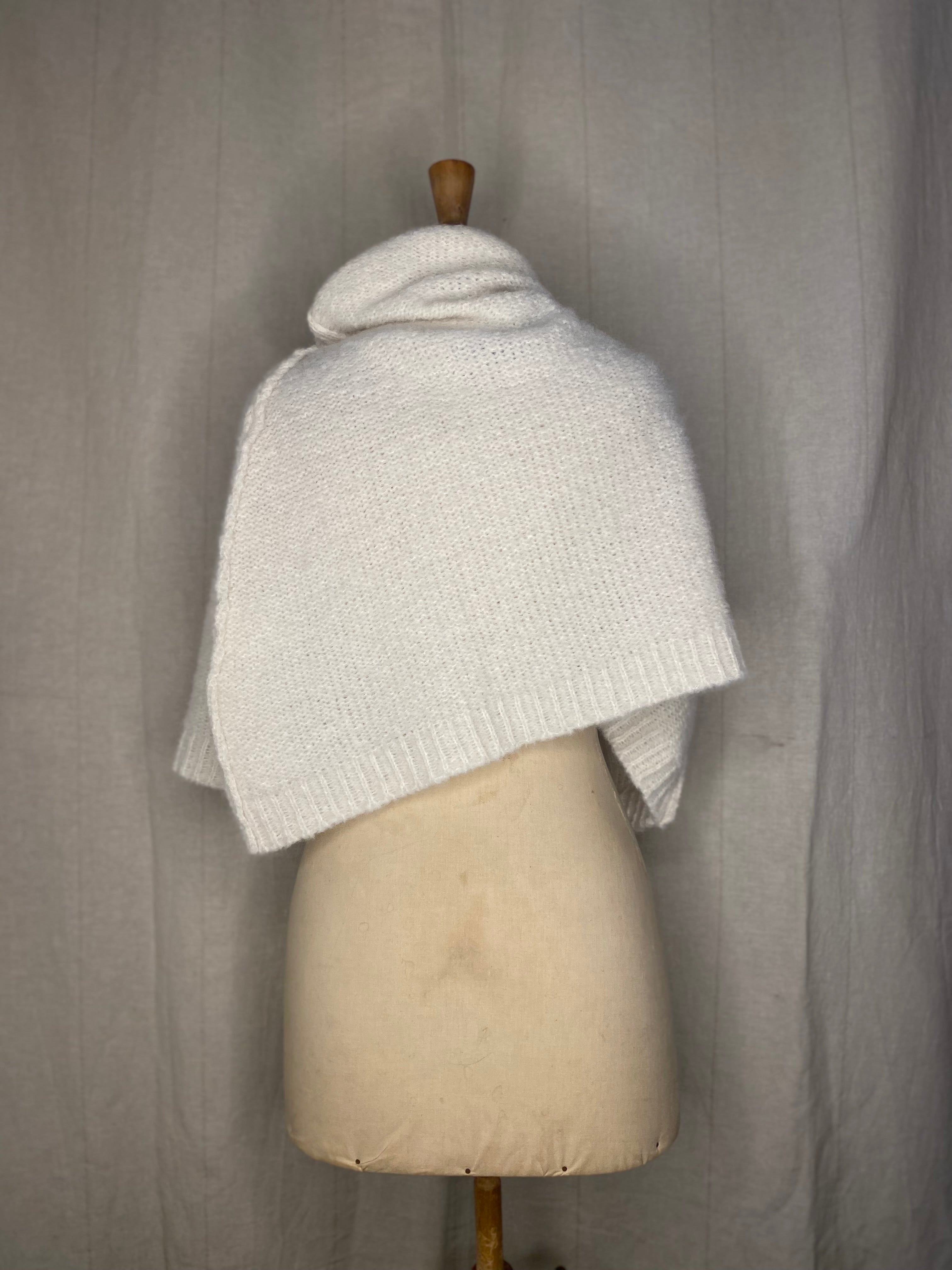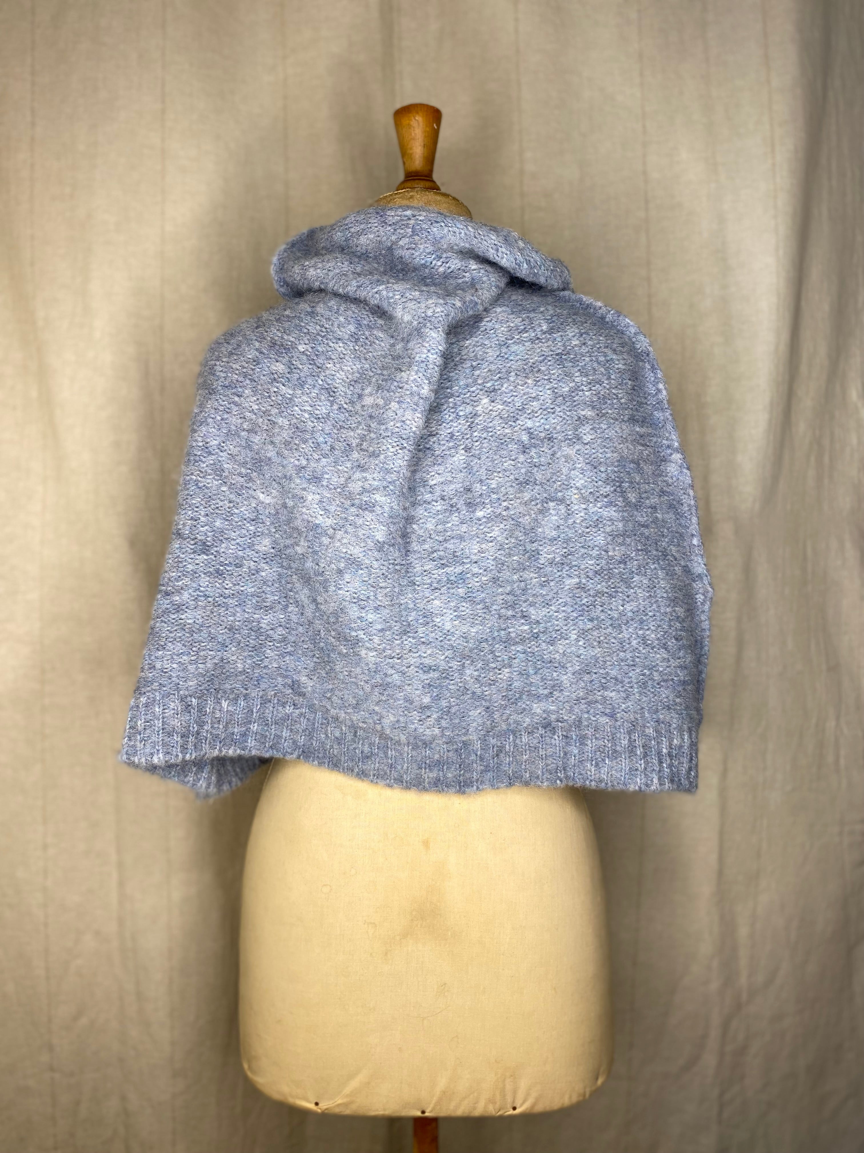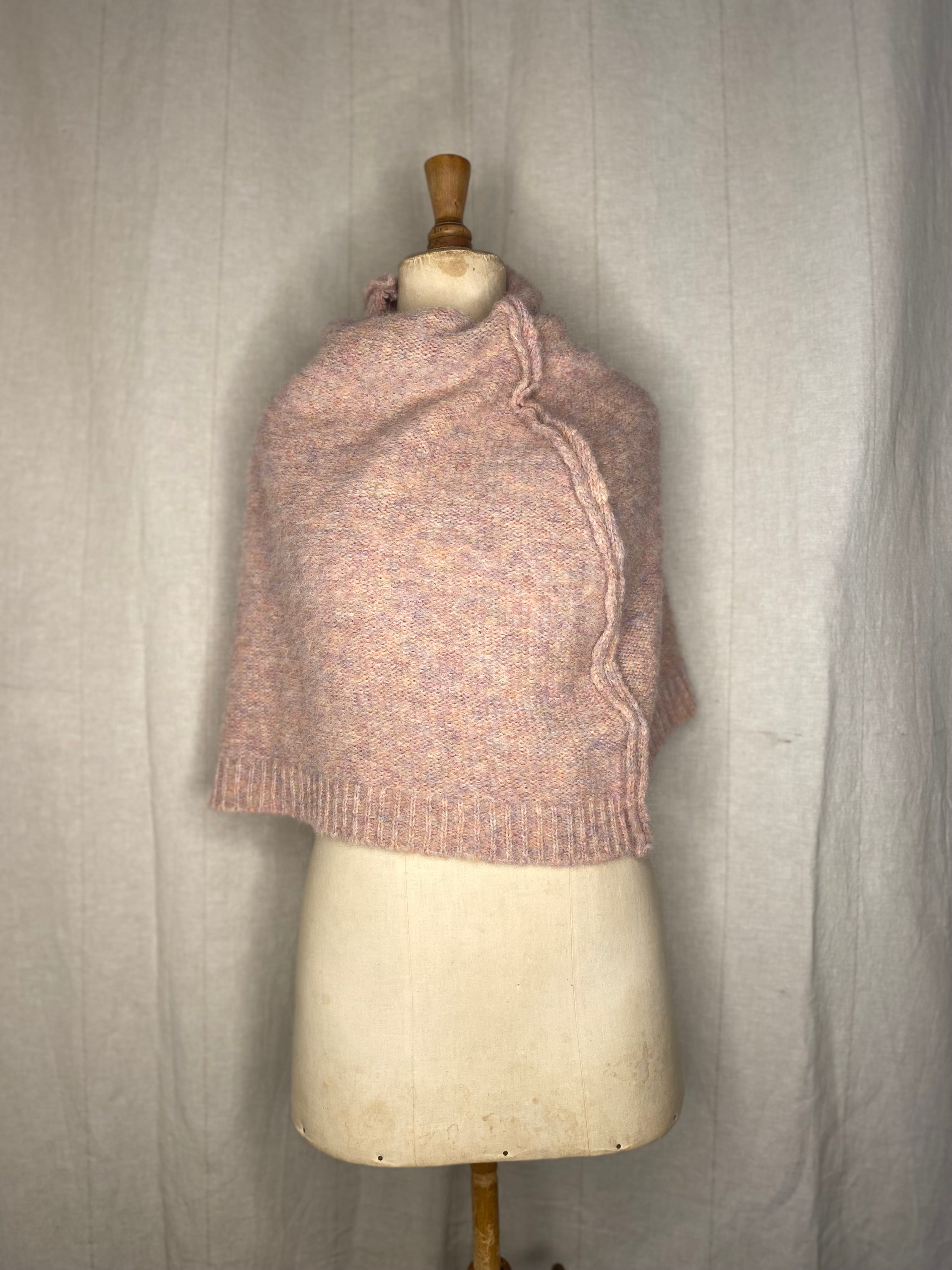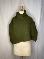 the Amano alpaca capelet has exposed seams and a loose funnel neck
