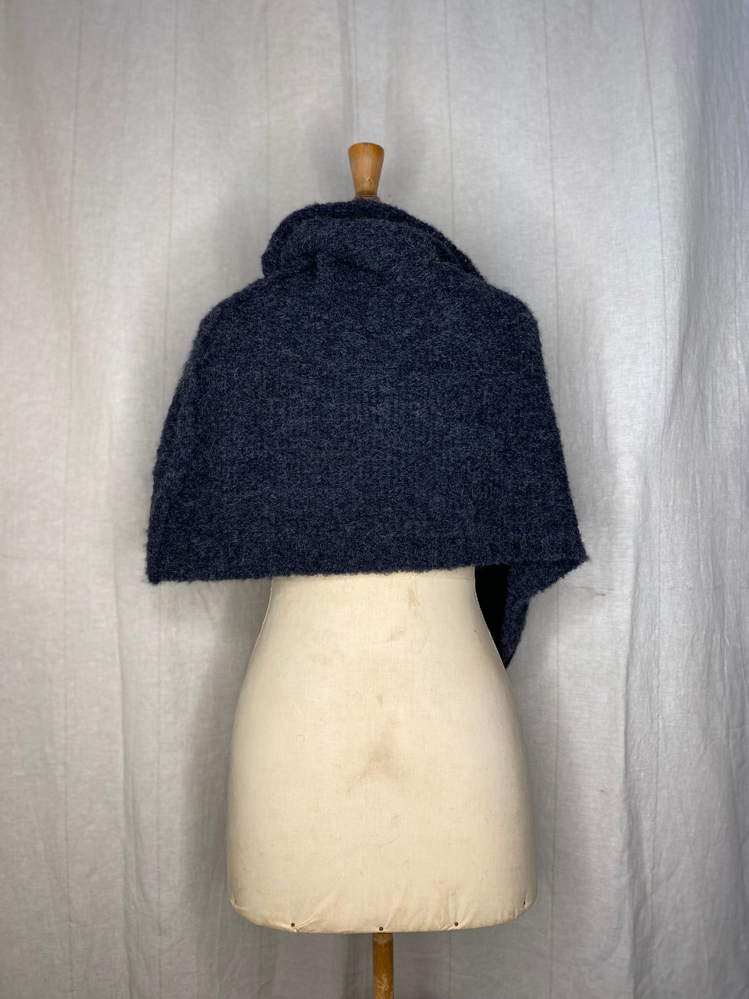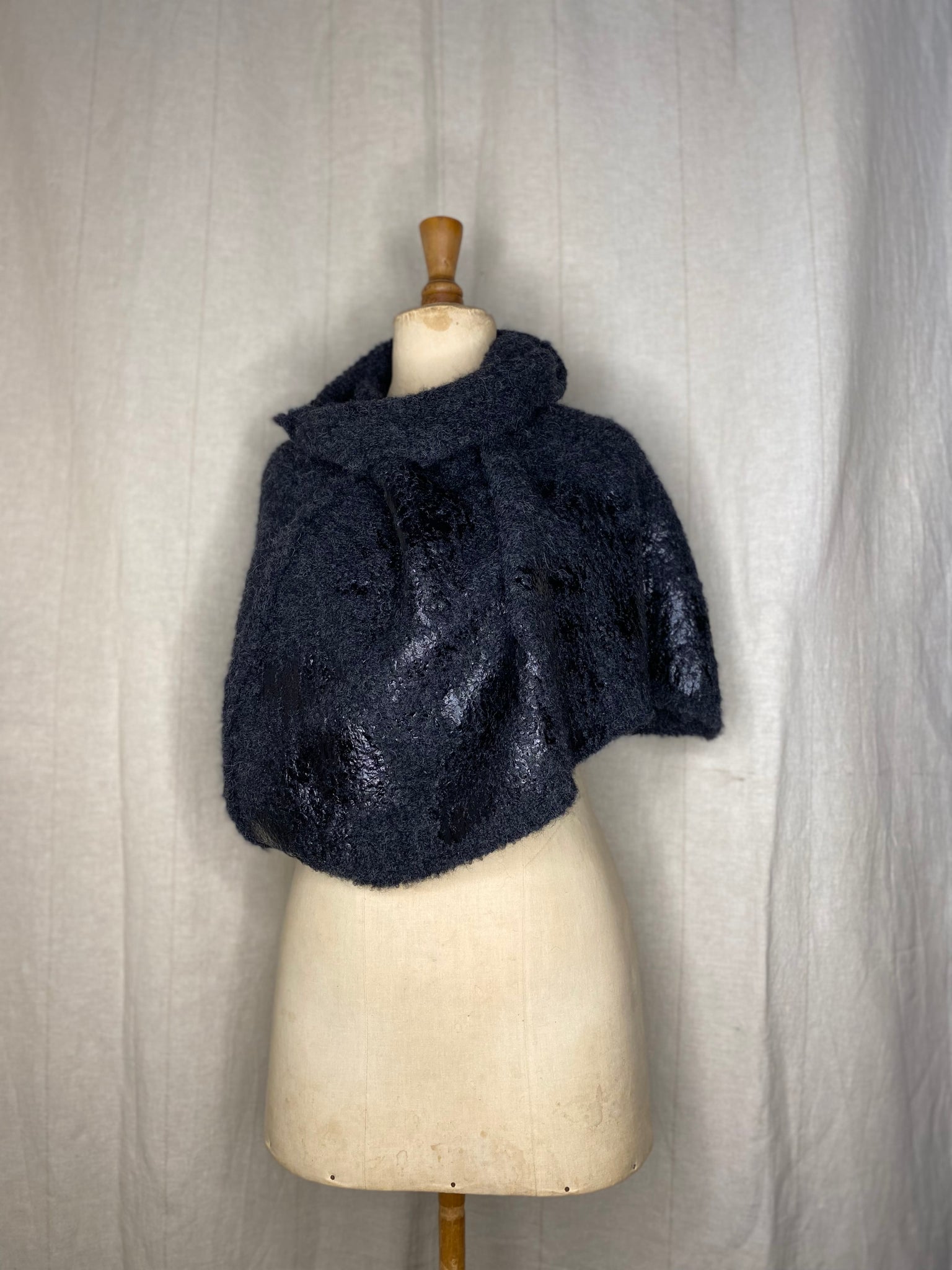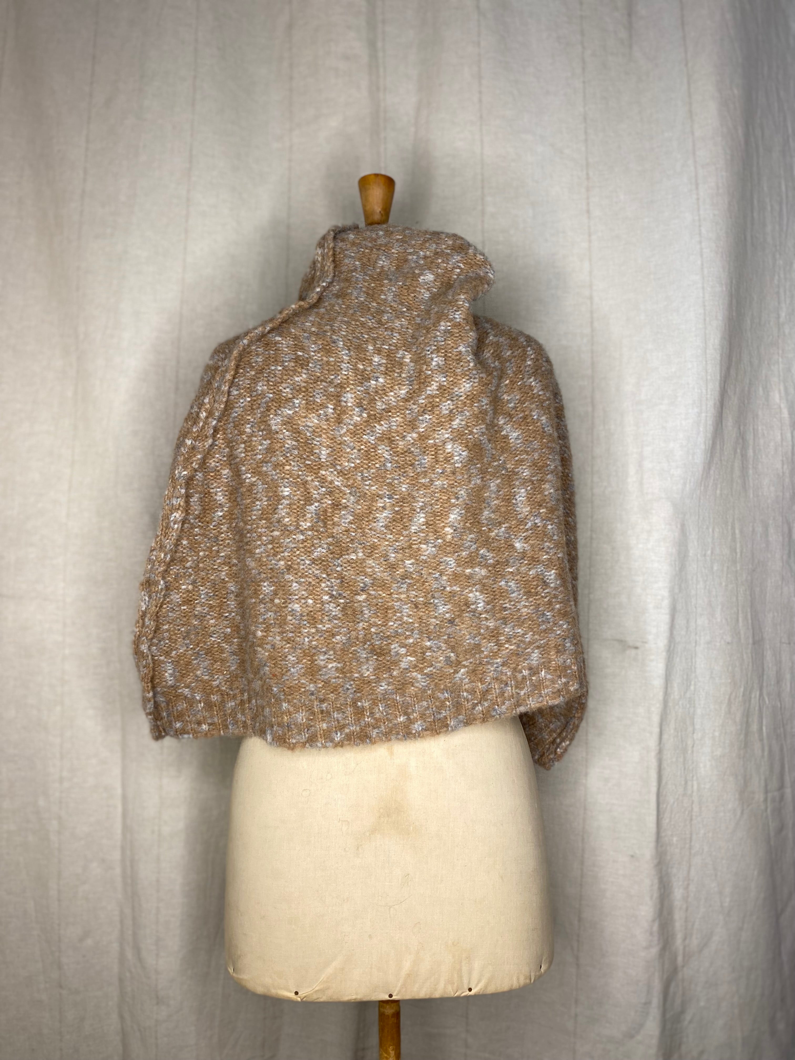 the Amano alpaca capelet has exposed seams and a loose funnel neck.
