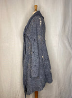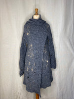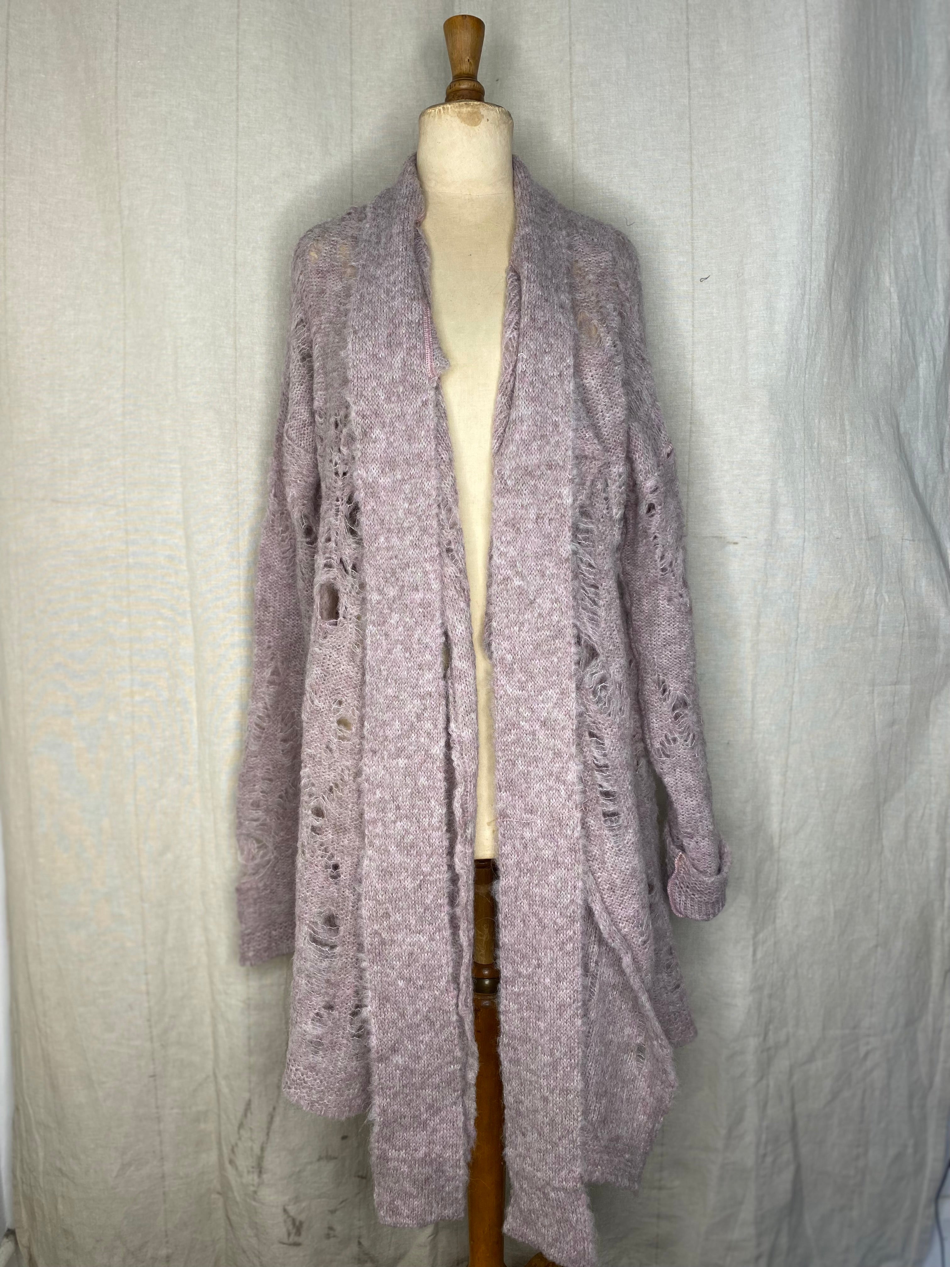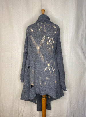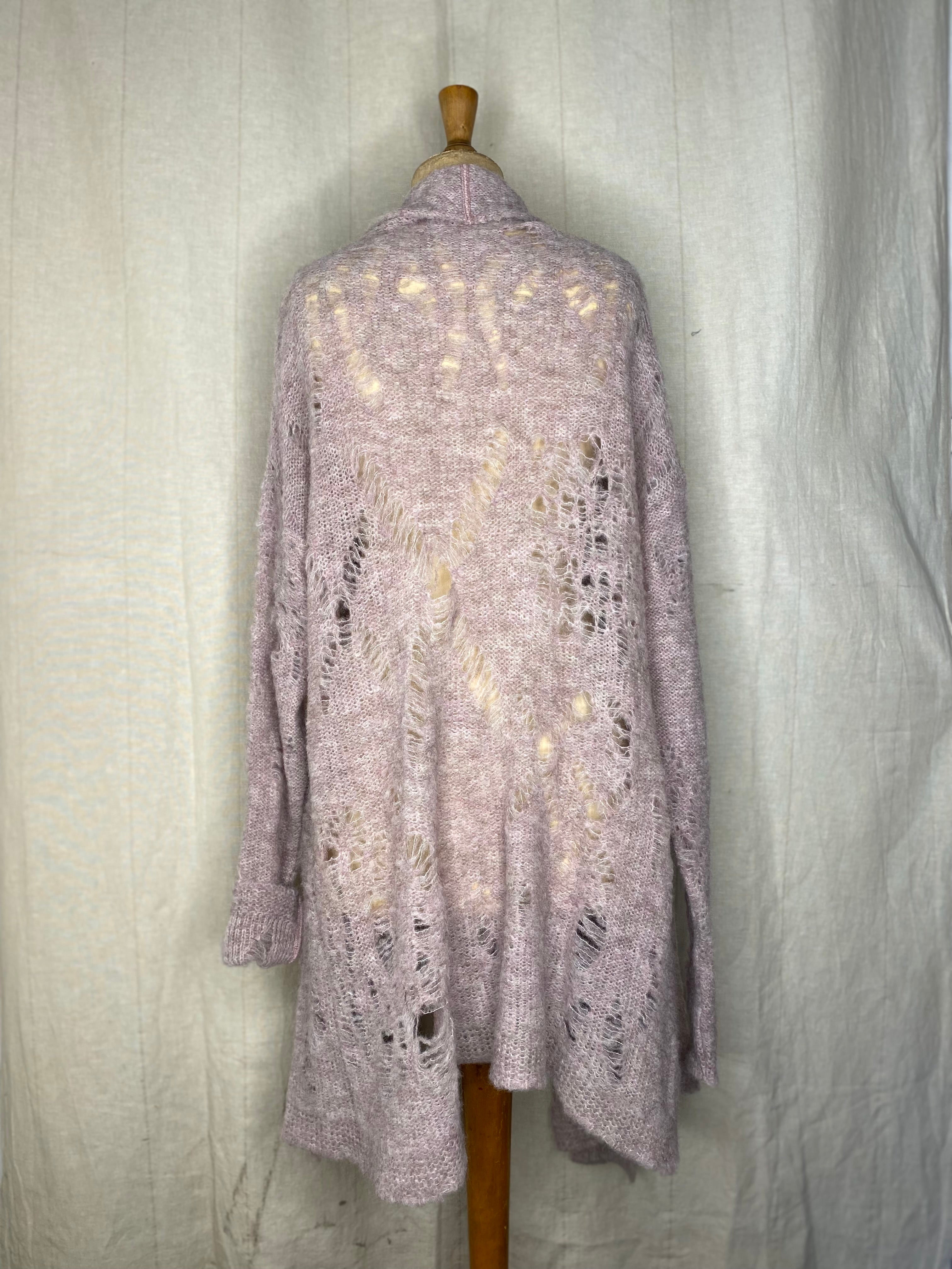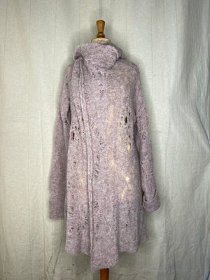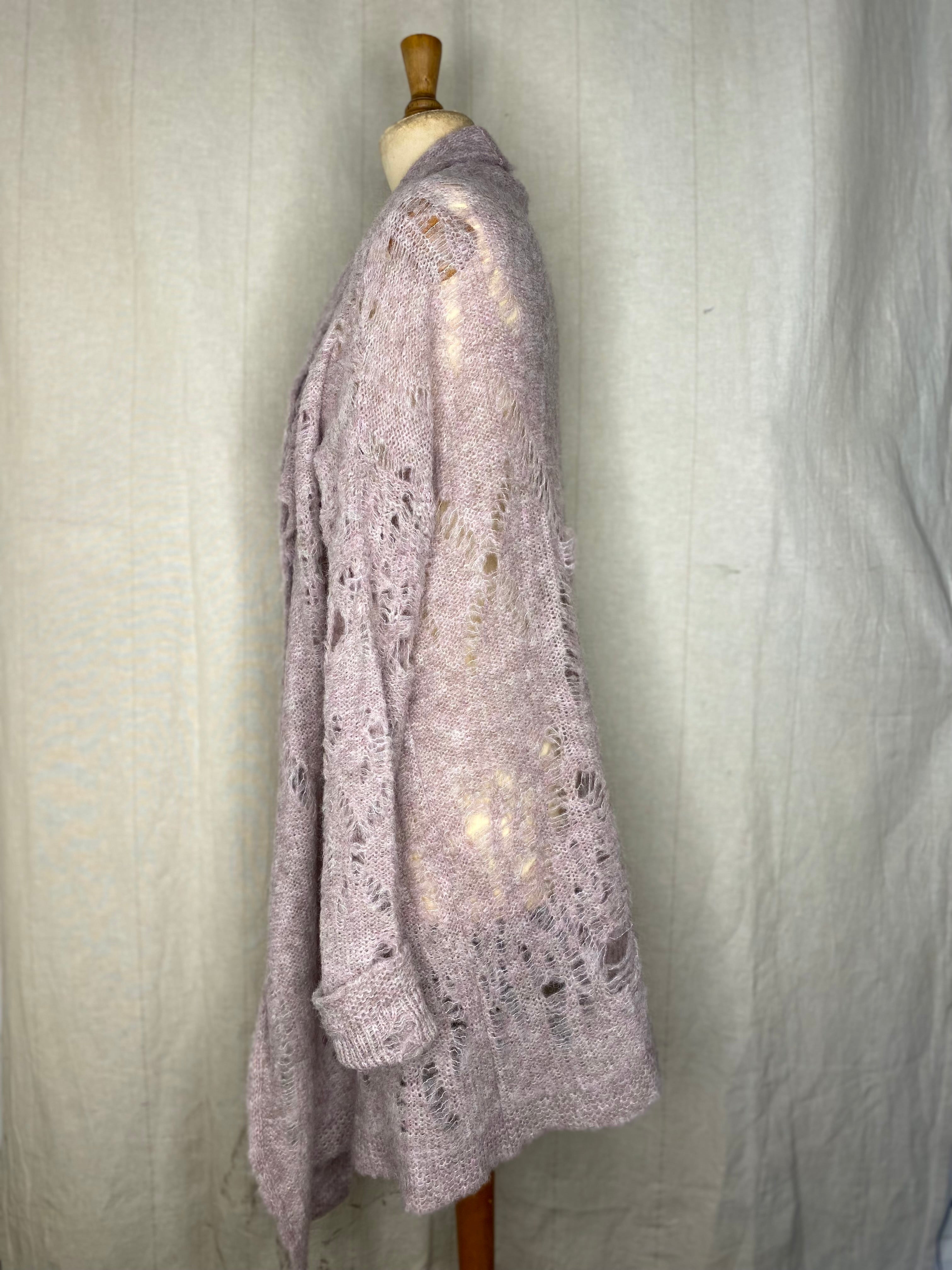 With an intricate open, lace knit structure and the most fabulous extended scarf piece - which can be worn loose or draped around the neck for a cosy neck.