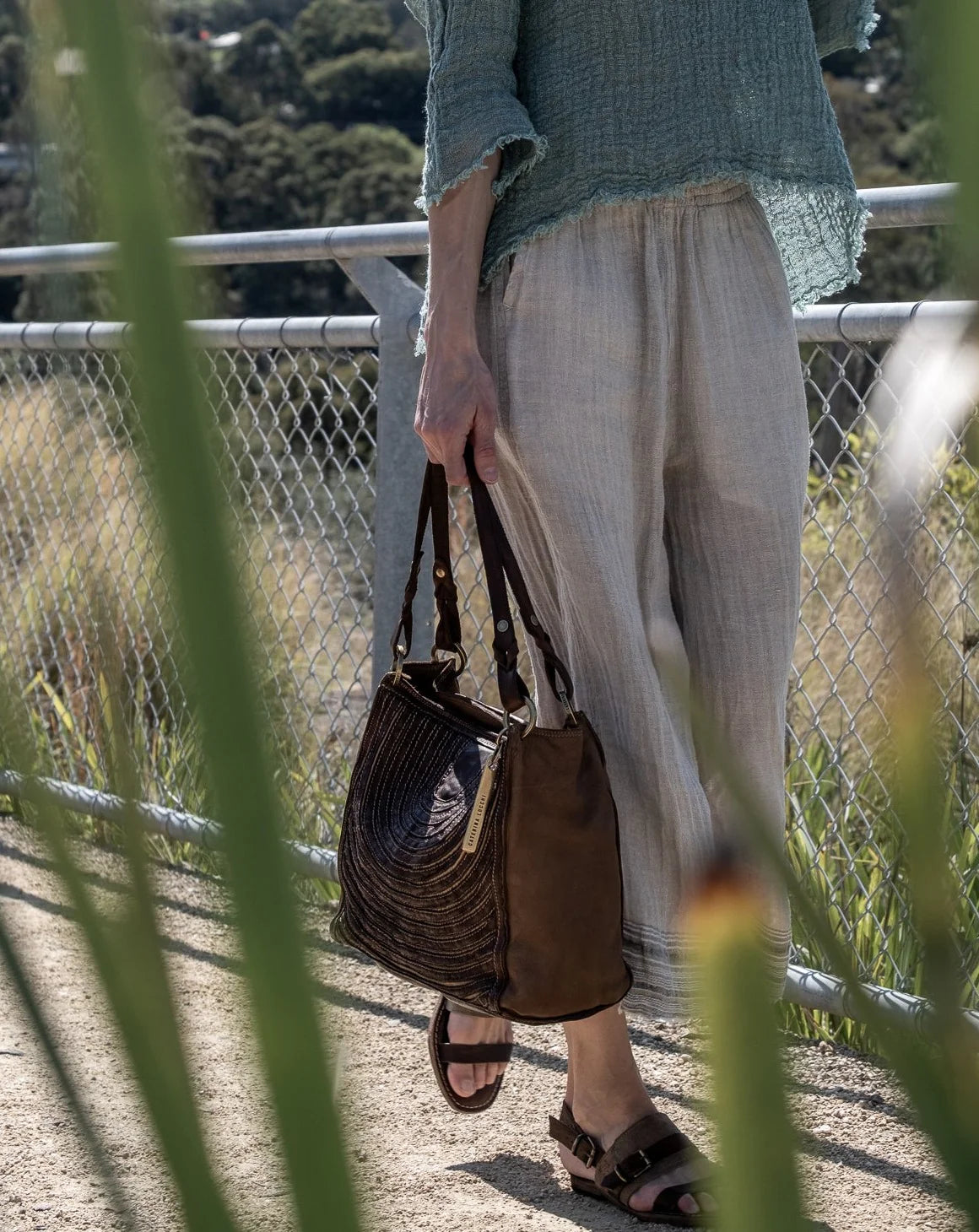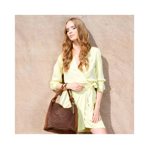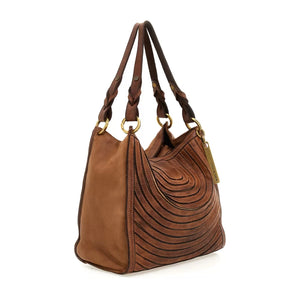 Caterina Lucchi's "Toronto" collection features bags made from fine cowhide and calf leather dyed in the head, characterized by an elegant design with curved line detailing. These accessories express a sophisticated and contemporary style, perfect for those seeking a balance between fashion and functionality.