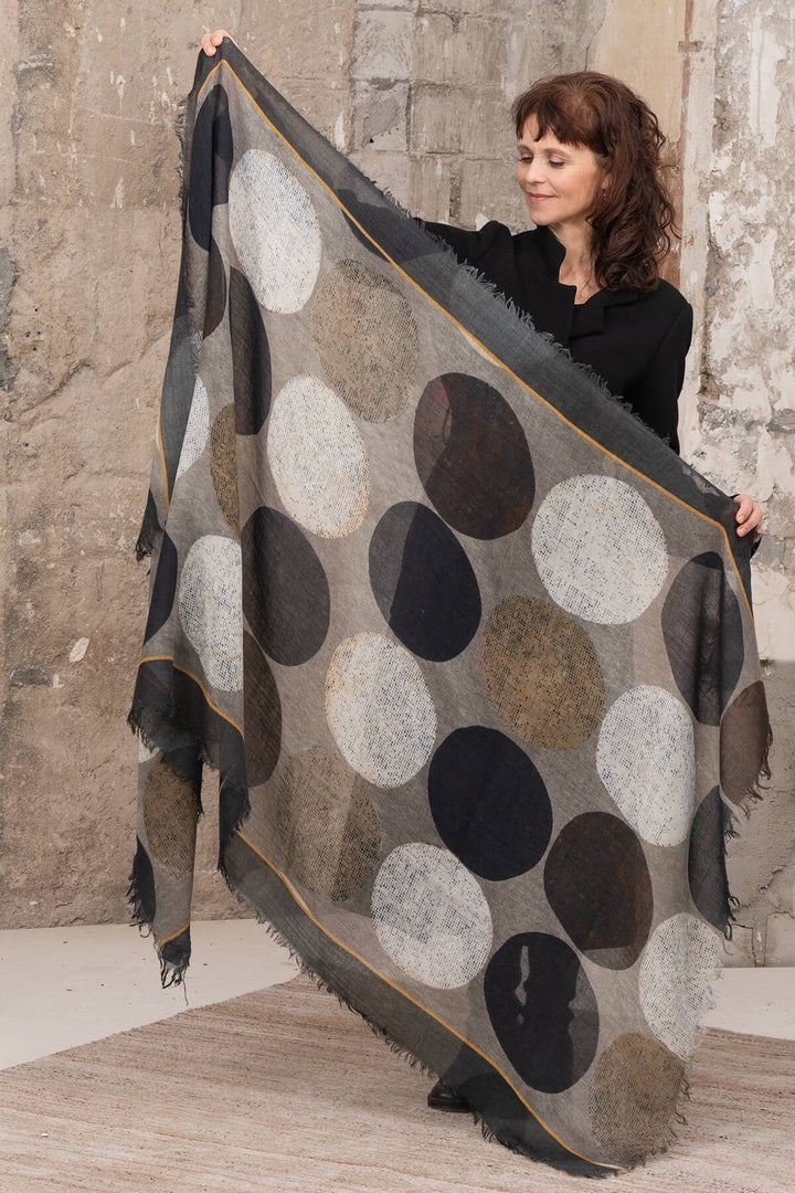 The Ayakara scarf #1 from Yoko Fashion is crafted with 100% Australian Merino wool, featuring an intricate pattern.