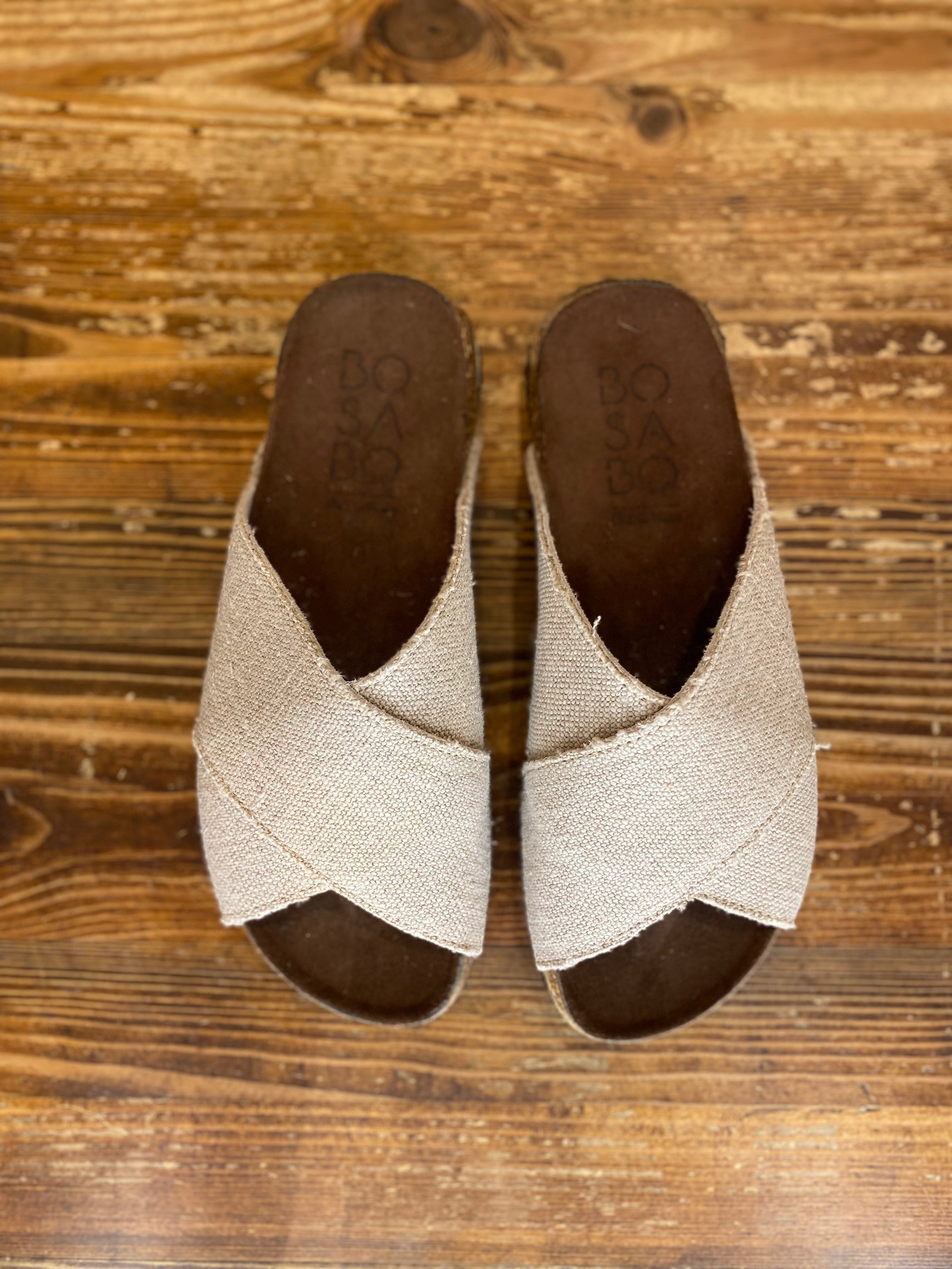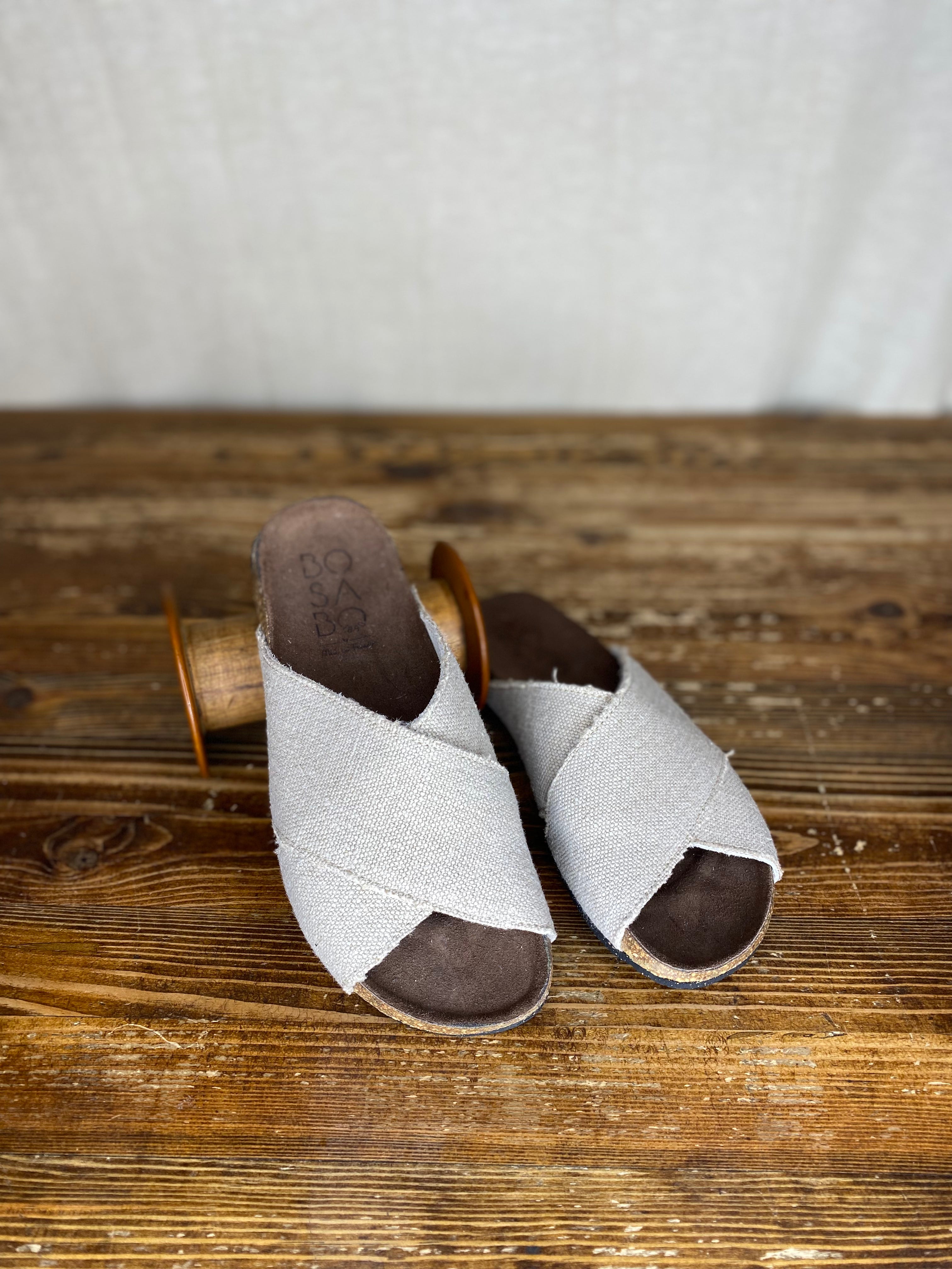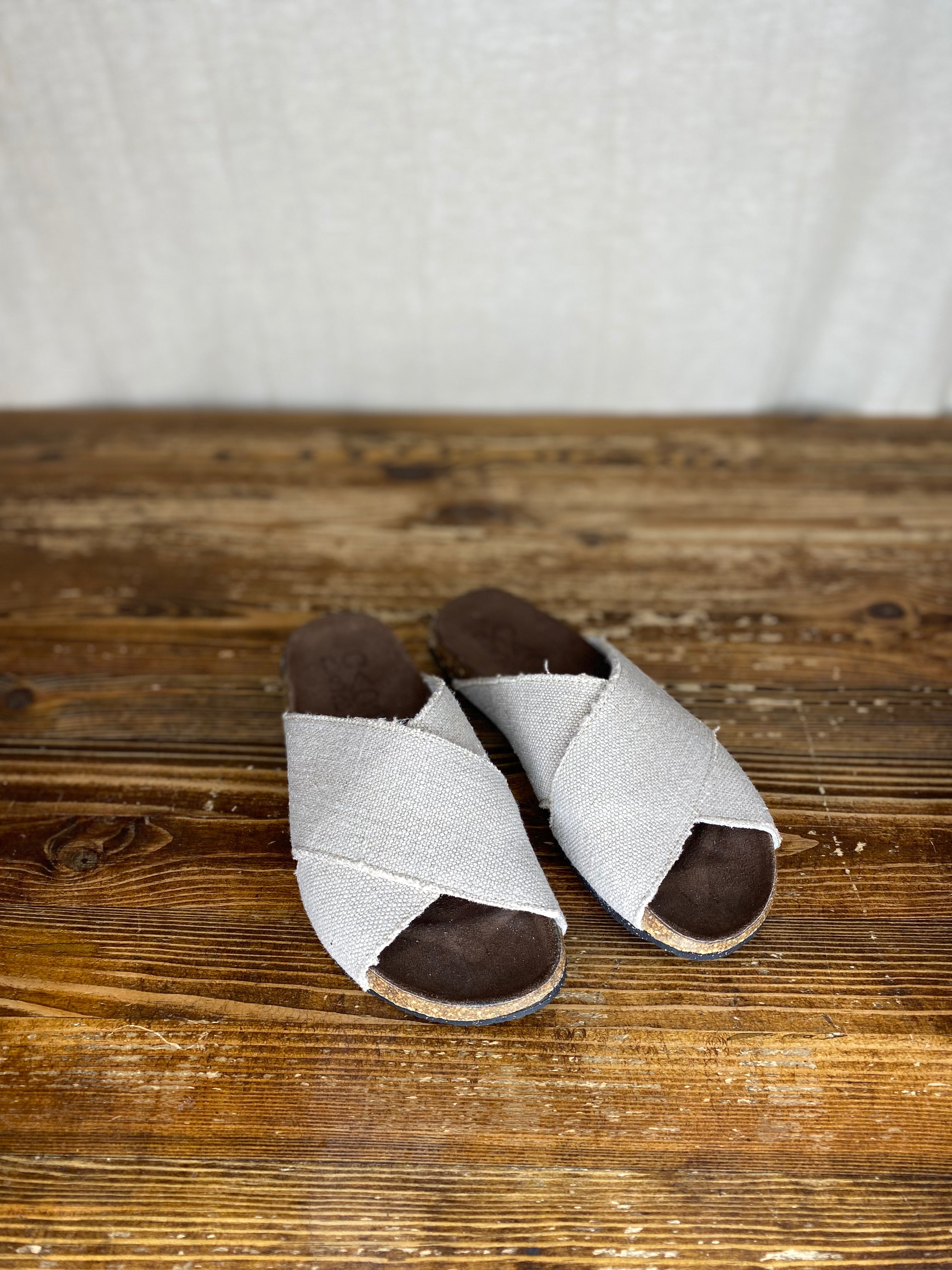 It has a classic cross over design, from natural linen AND these wonderful slides have been made to order, just for From Dust.